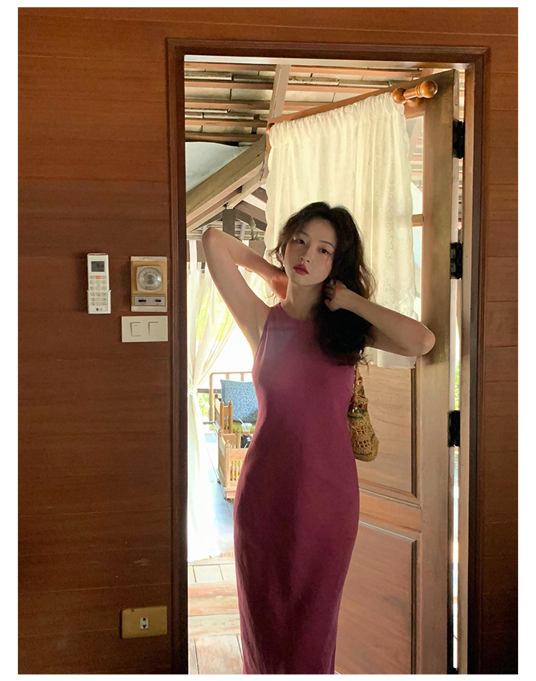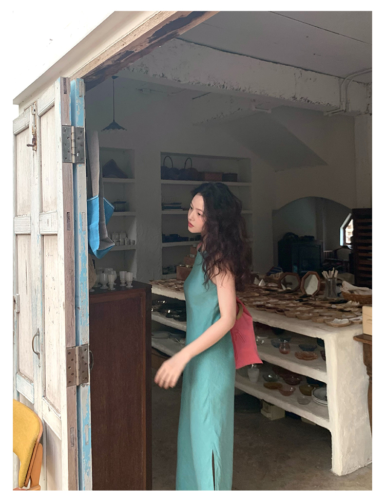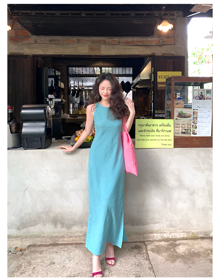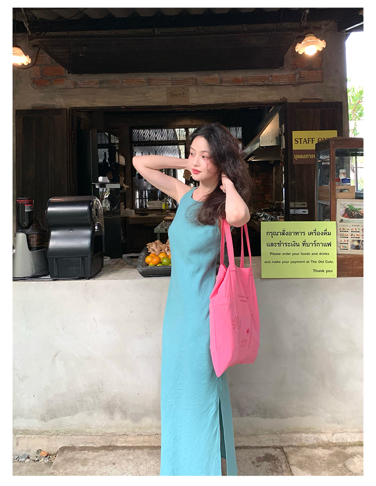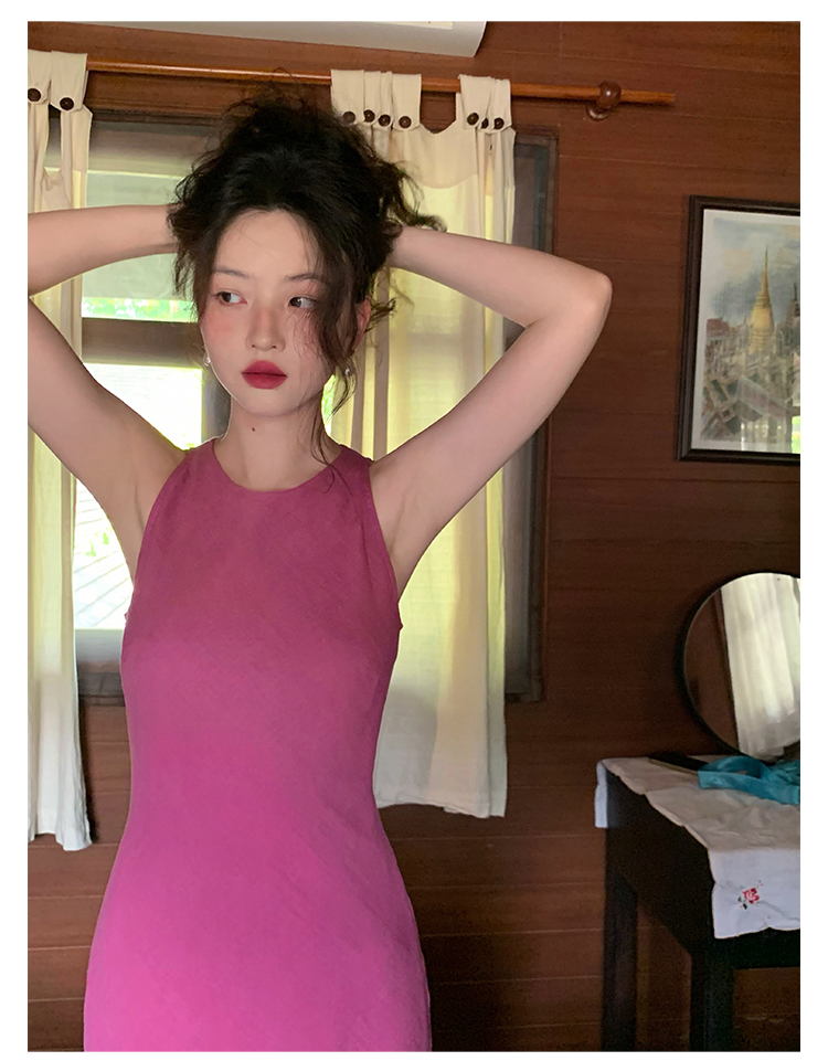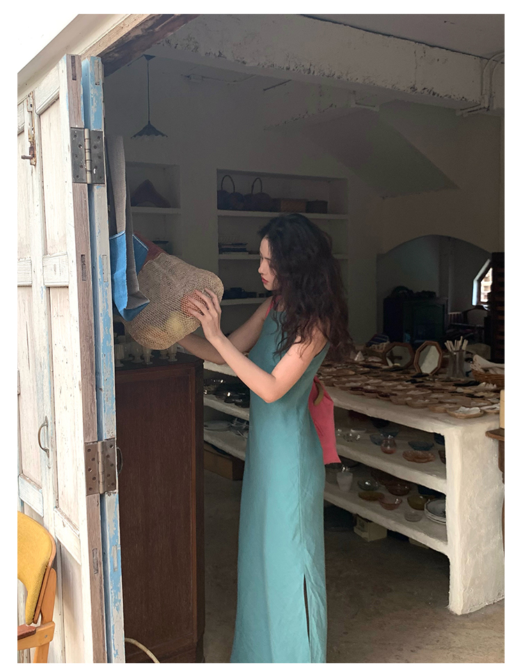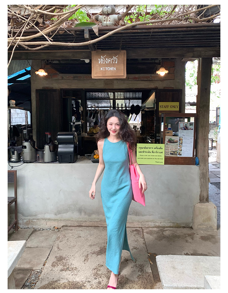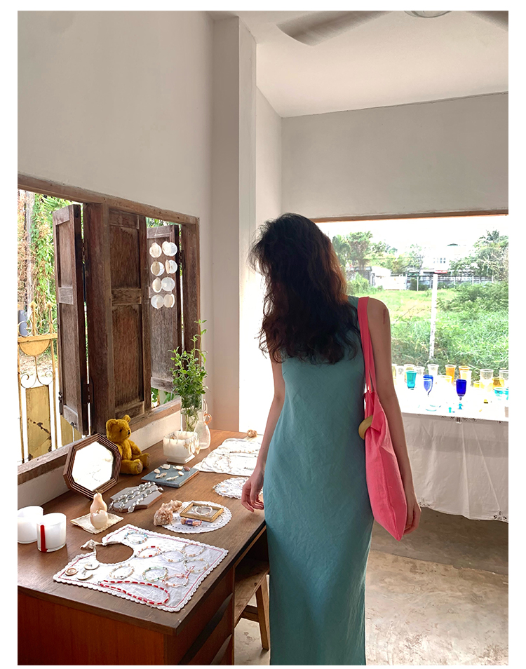 Abito senza maniche con spacco in Ramie Tencel