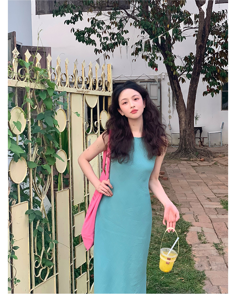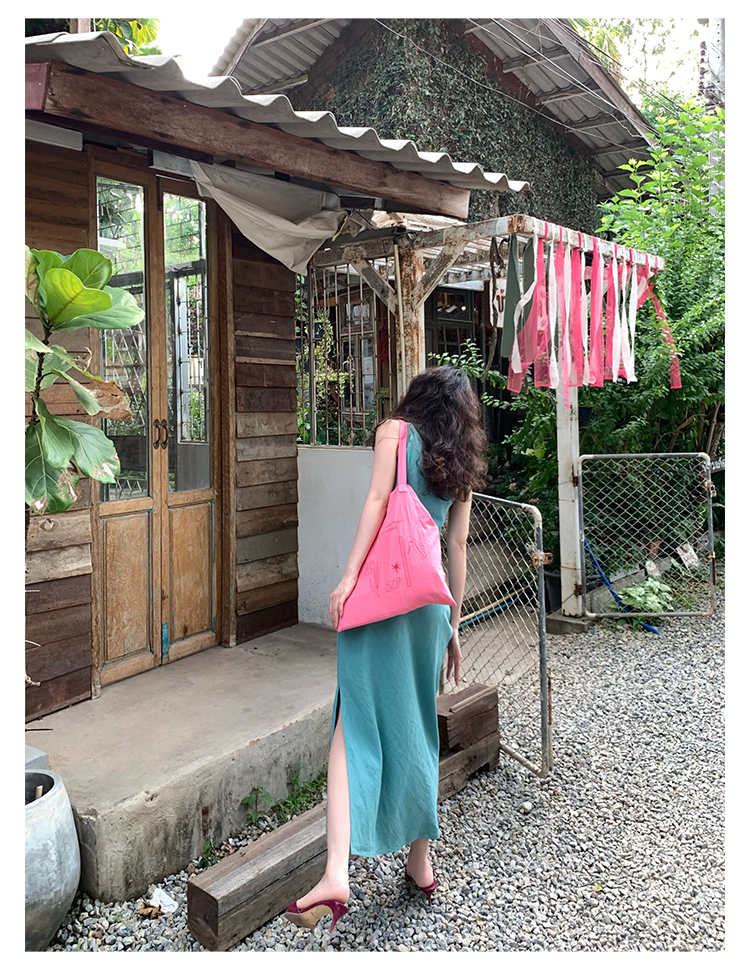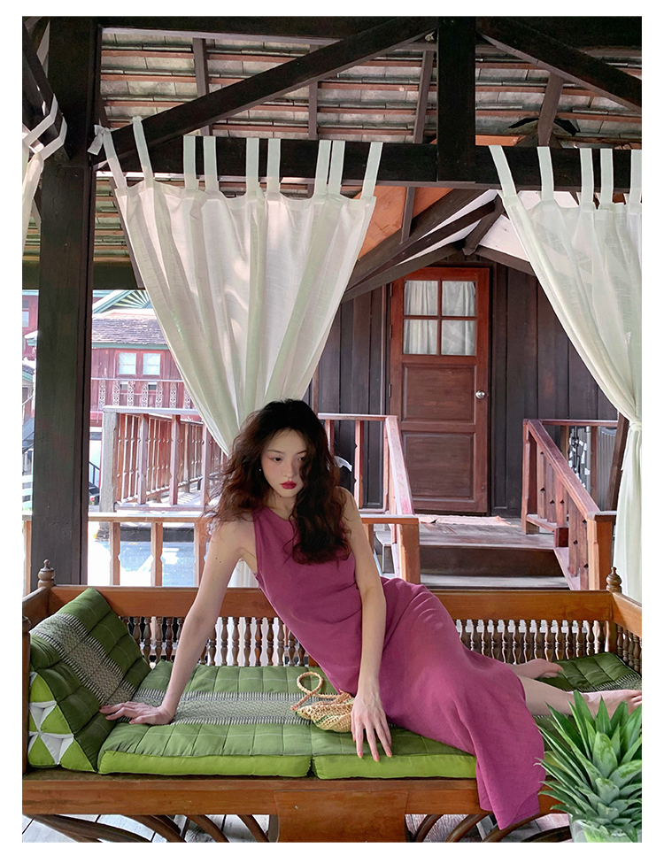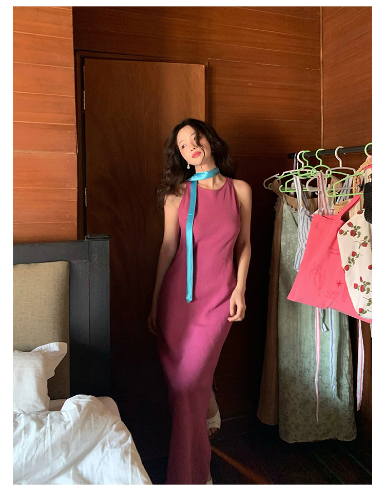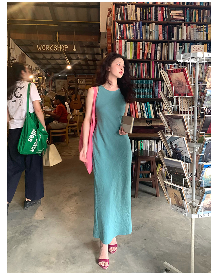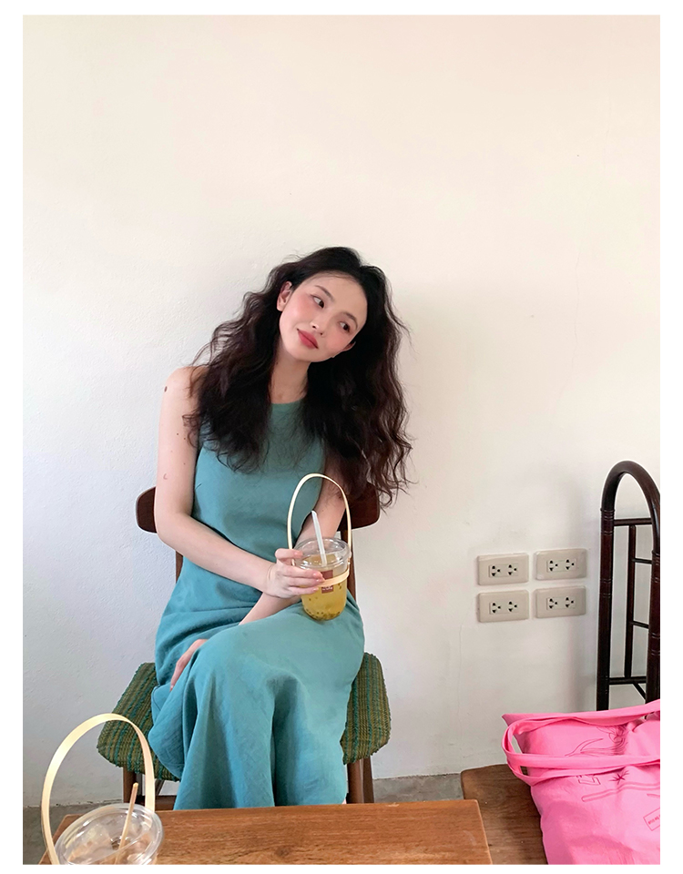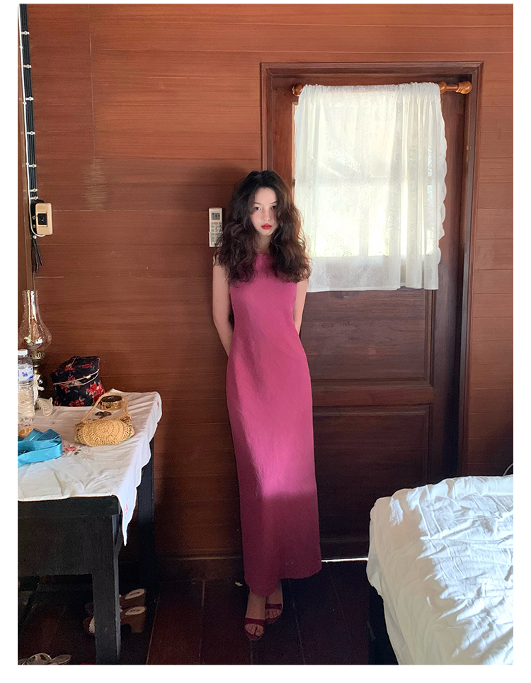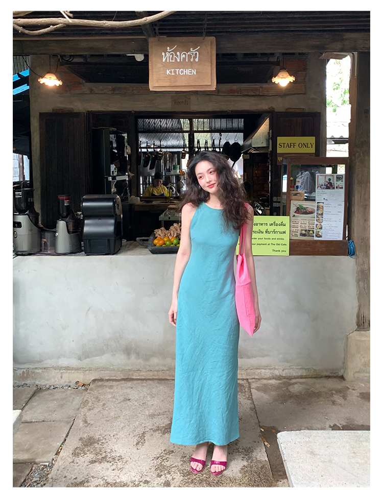Abito senza maniche con spacco in Ramie Tencel