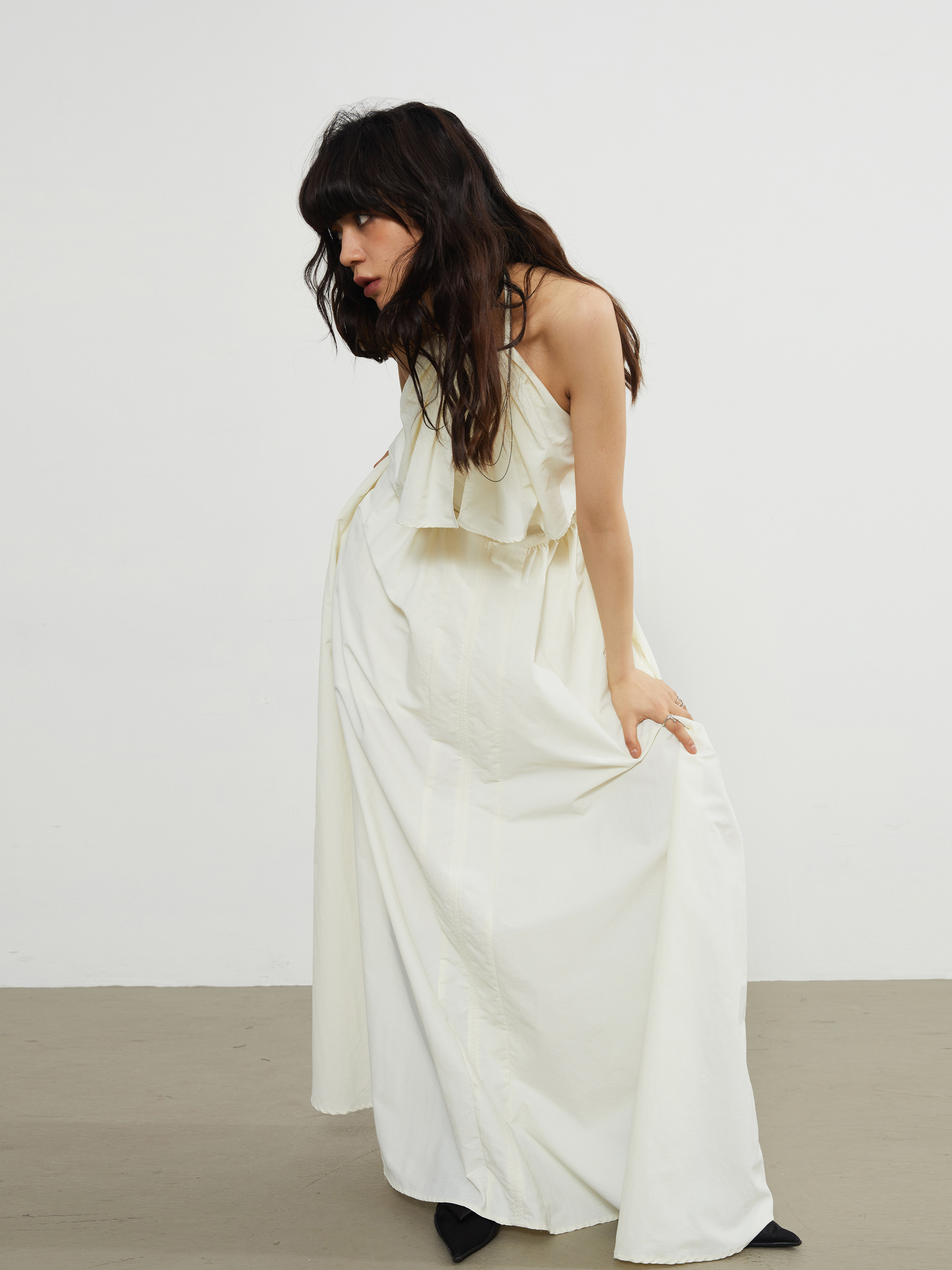 Gonna da fata con pittura a olio di camelia giallo chiaro