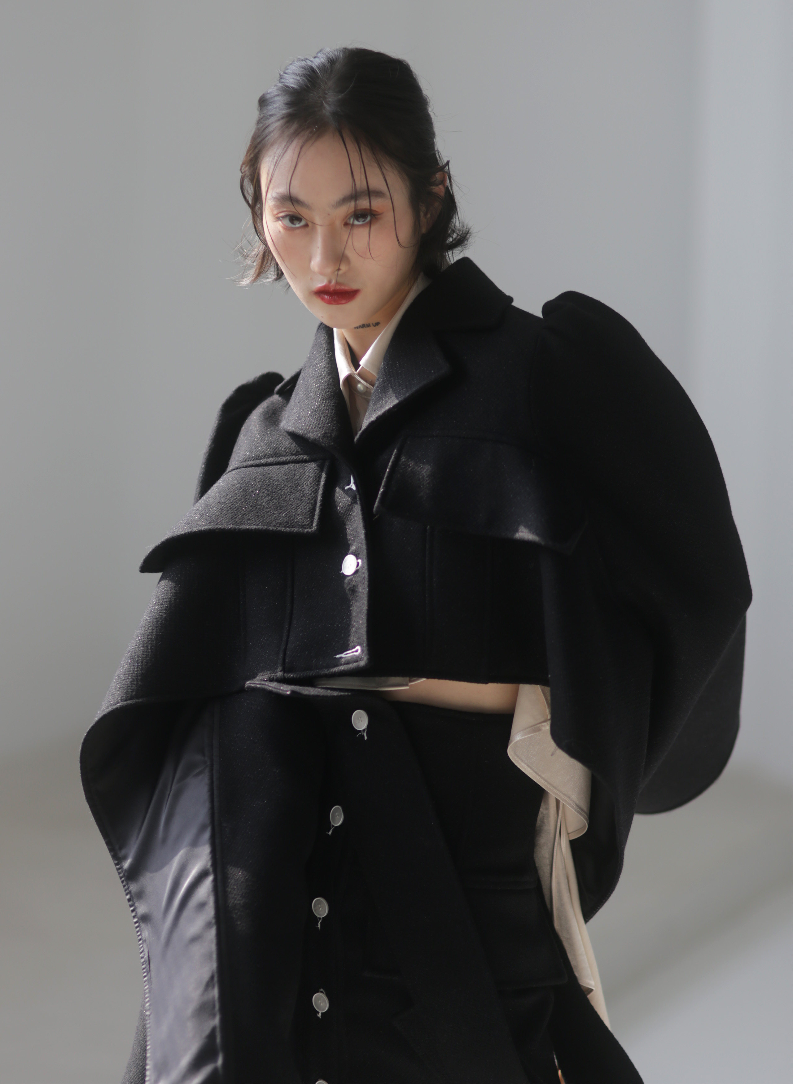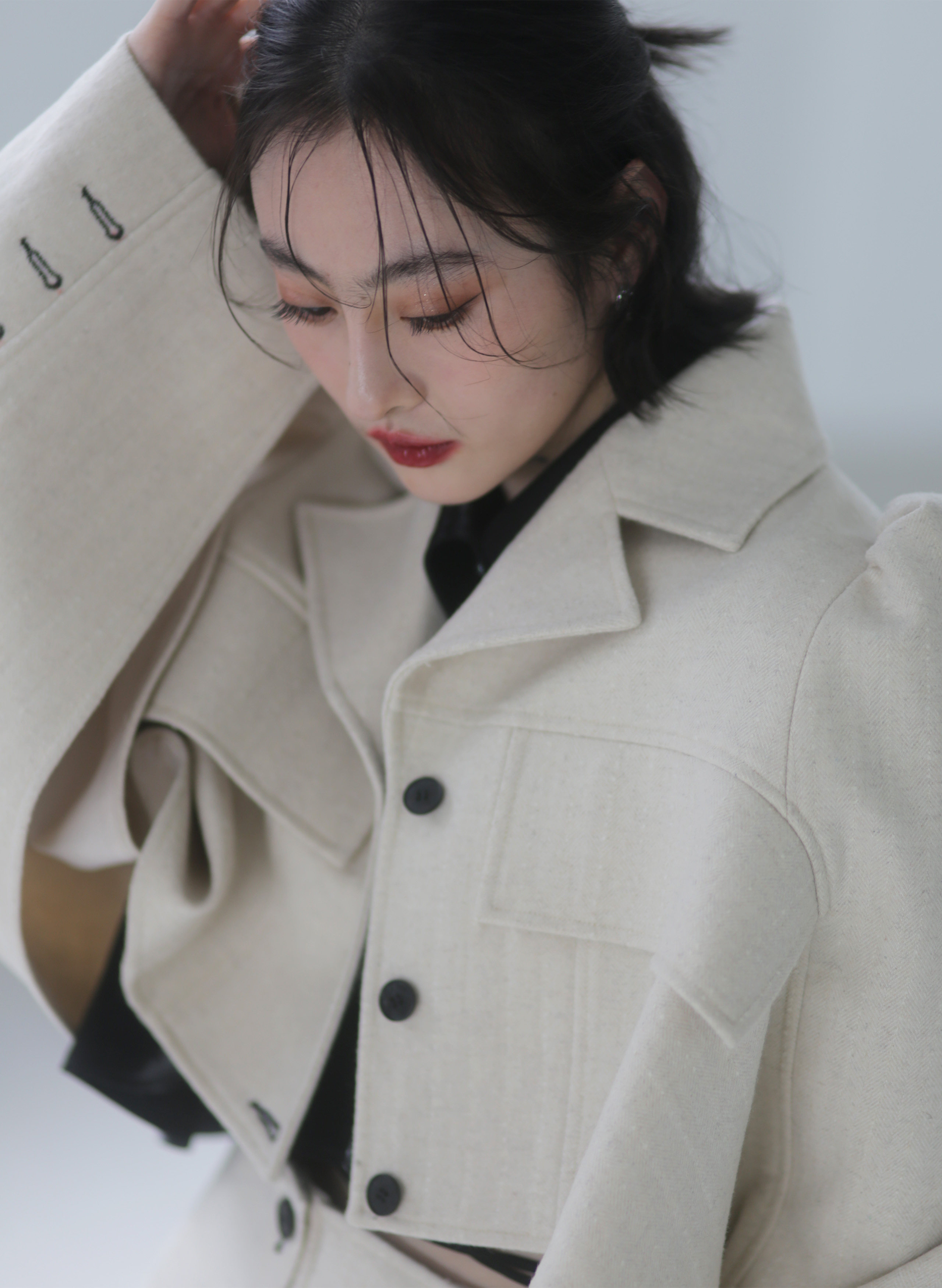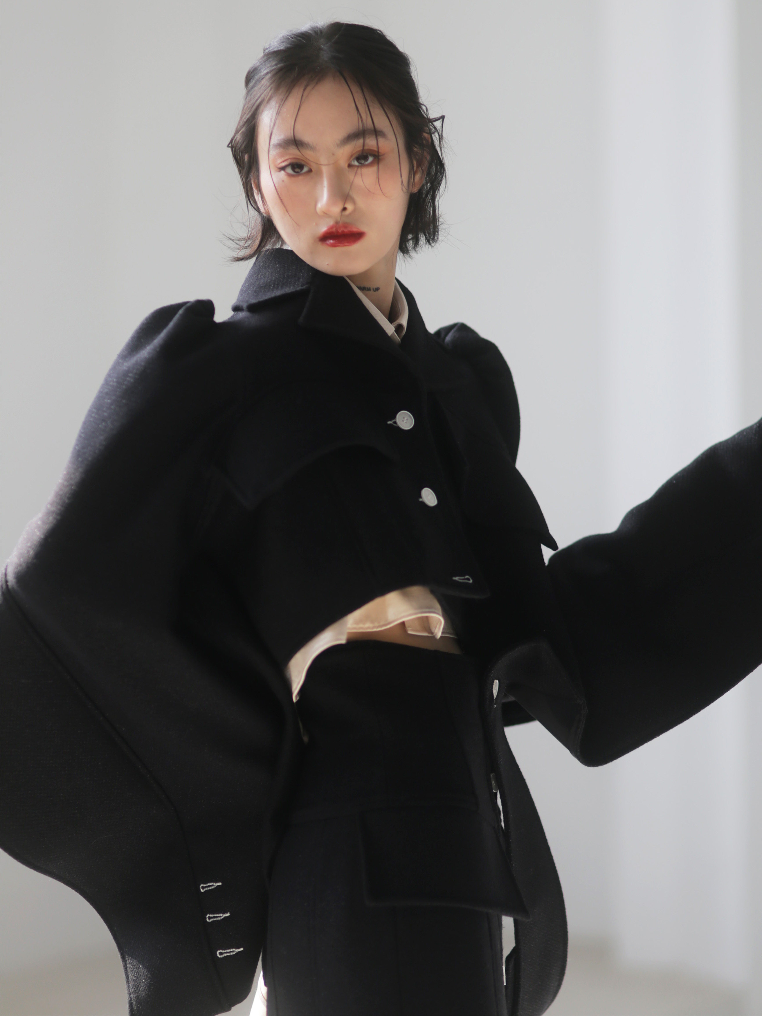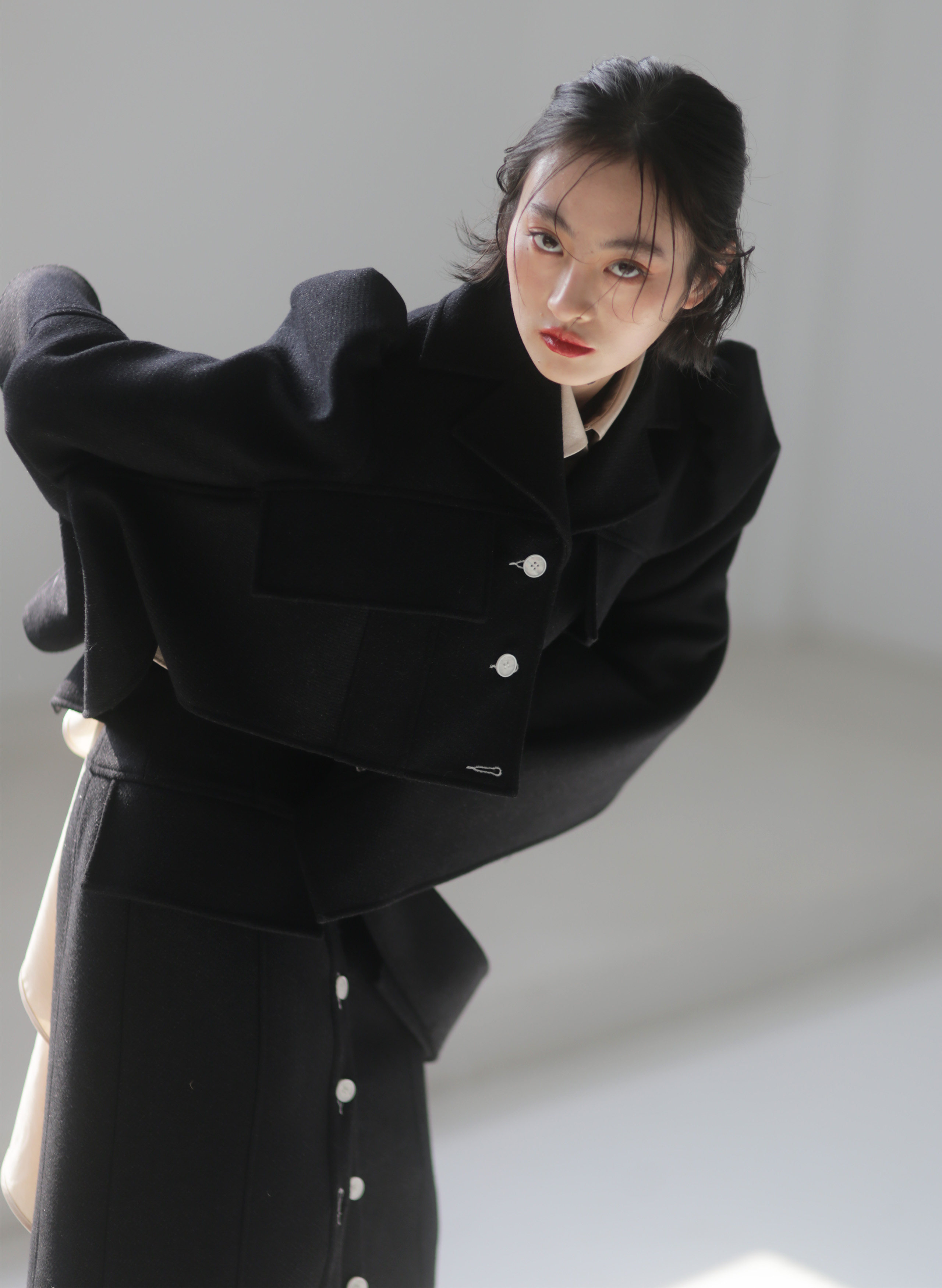 Fabric (black): 47% wool 38% viscose10% polyester fiber 5% bright silk