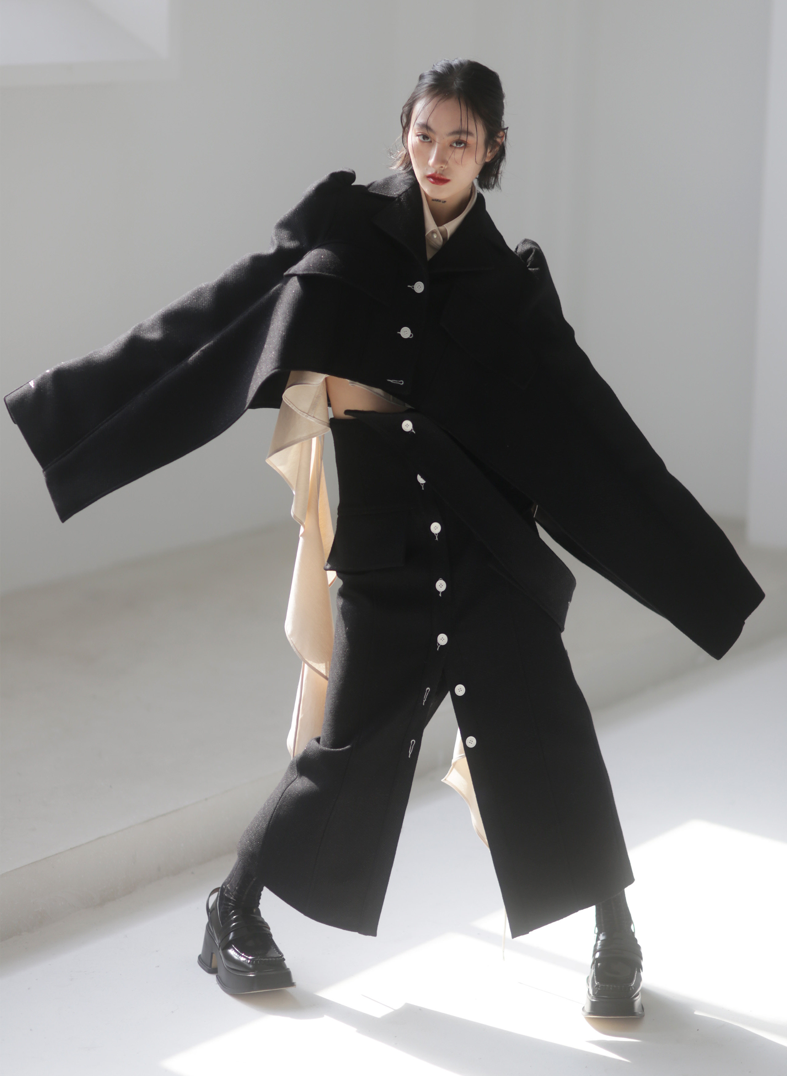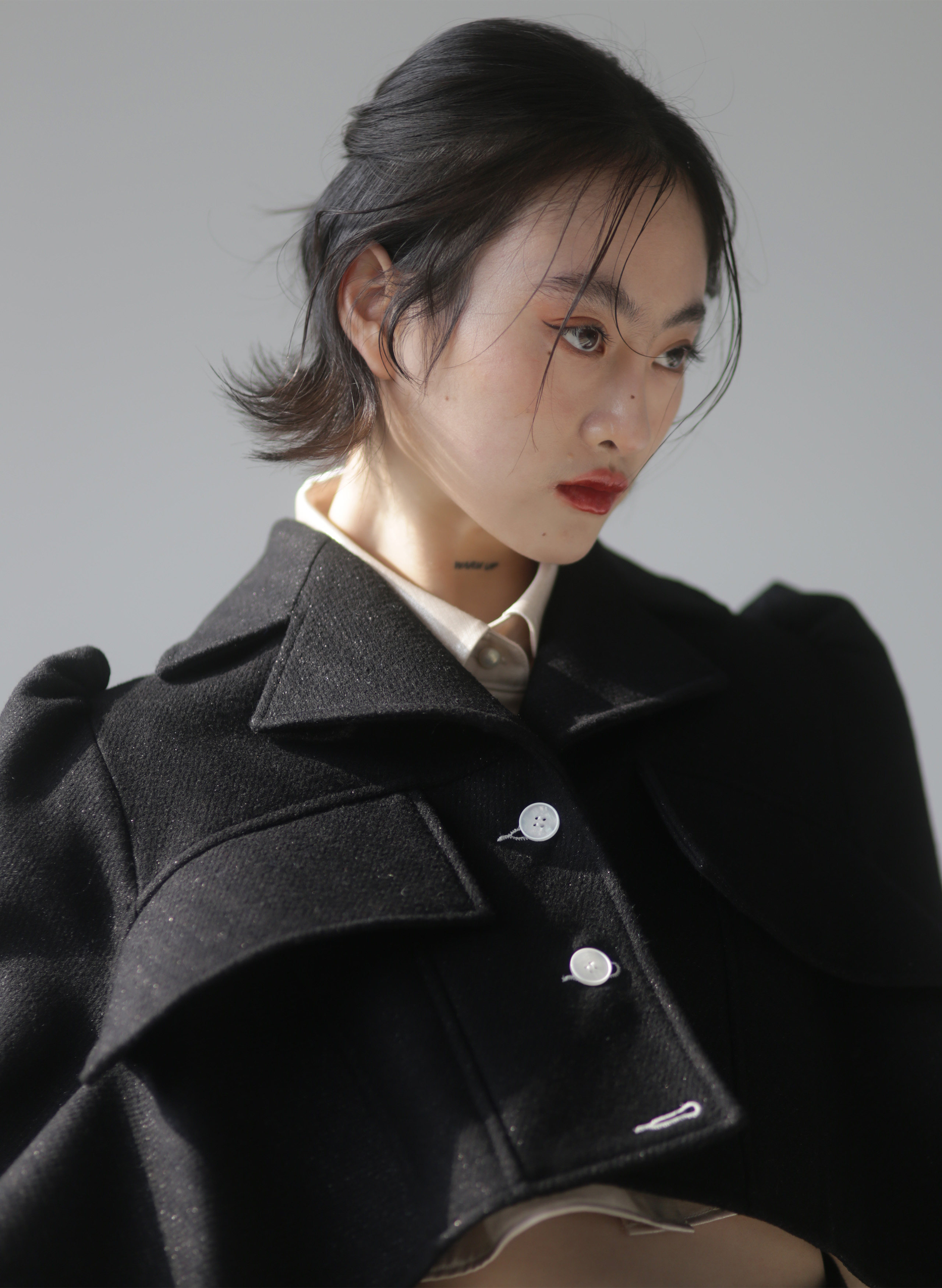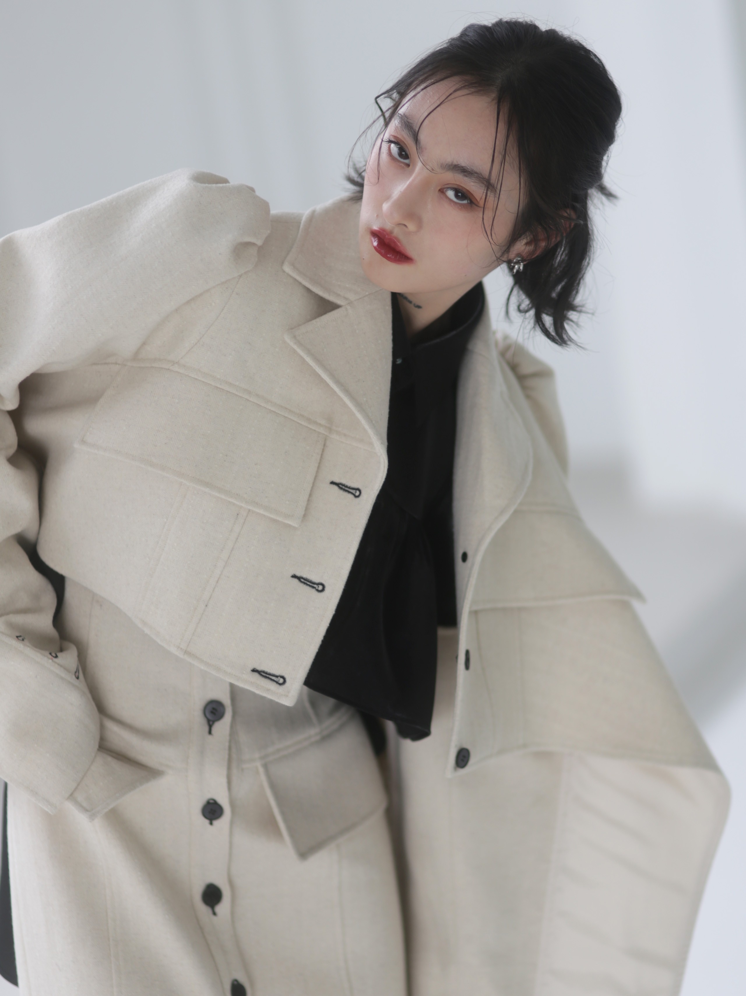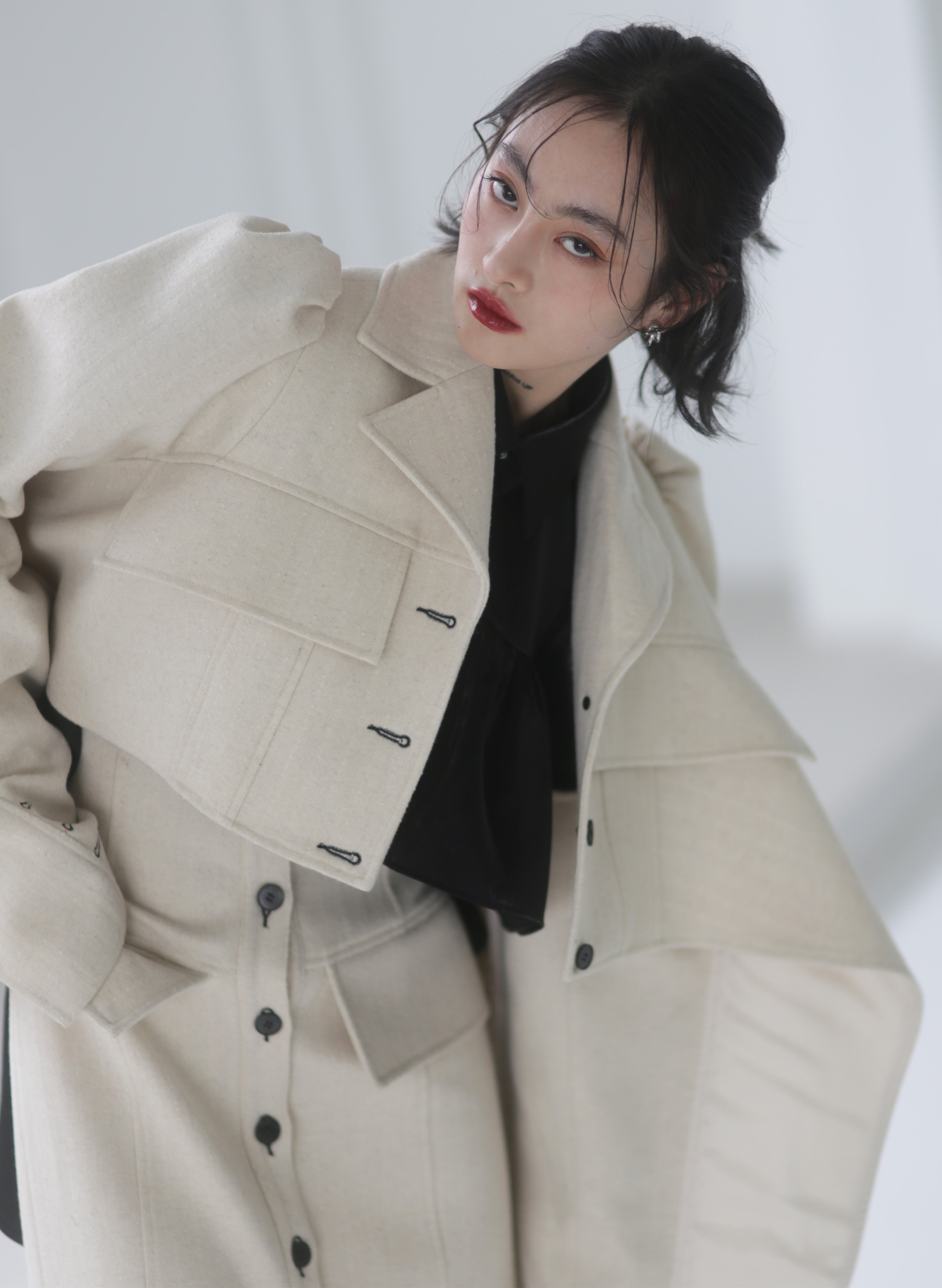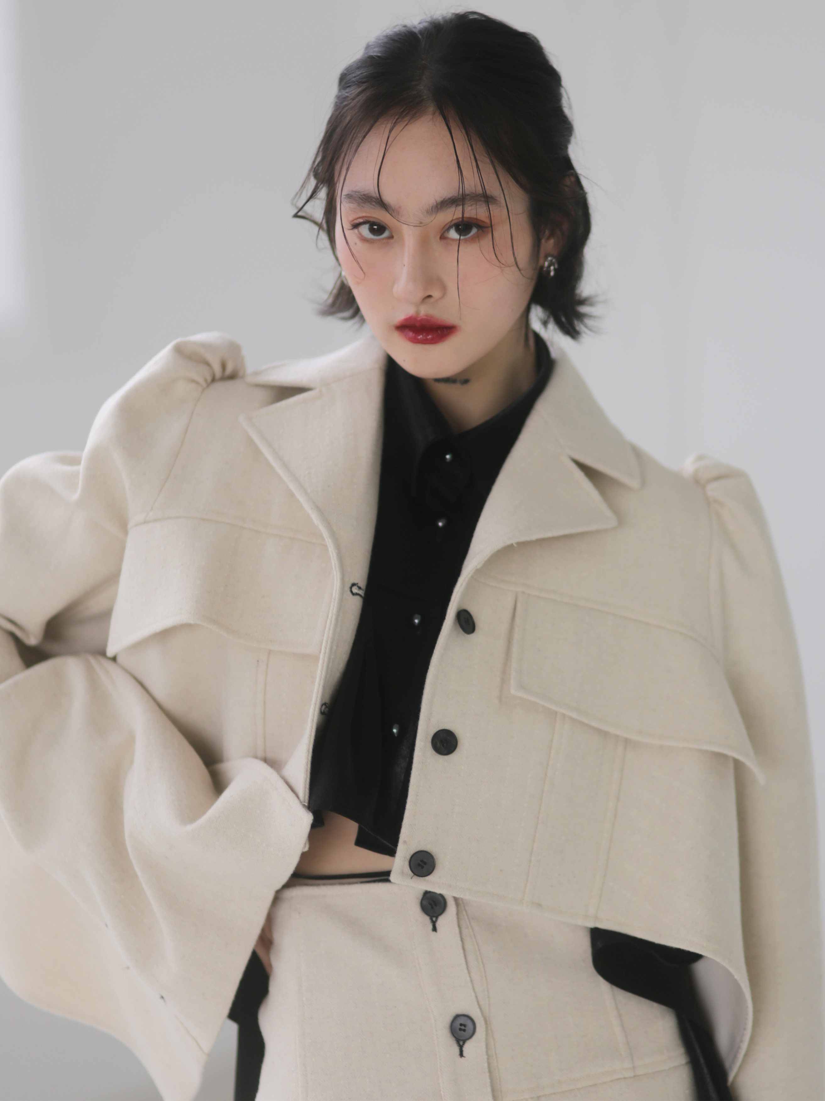 Fabric (black): 47% wool 38% viscose10% polyester fiber 5% bright silk