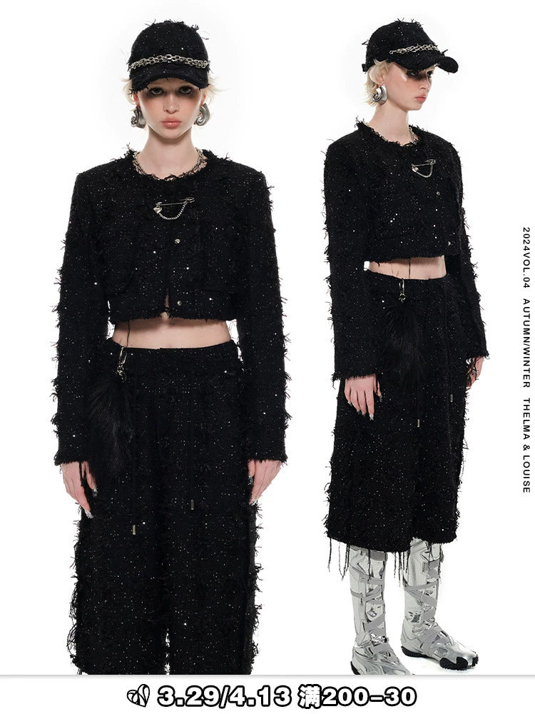 Industries Small Fragrance Raw Short Jacket Women's Loose Crew Neck Early Autumn Top Set