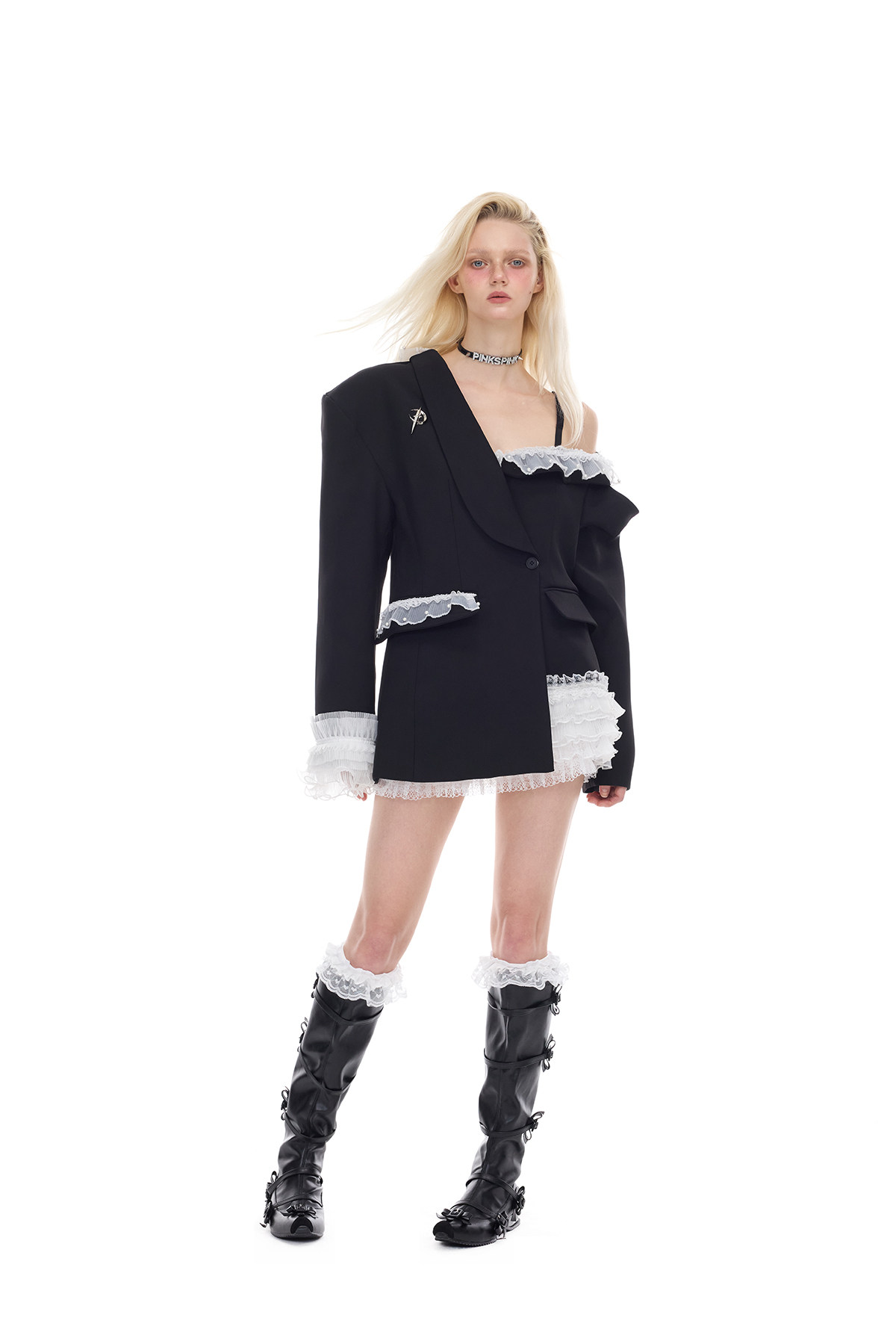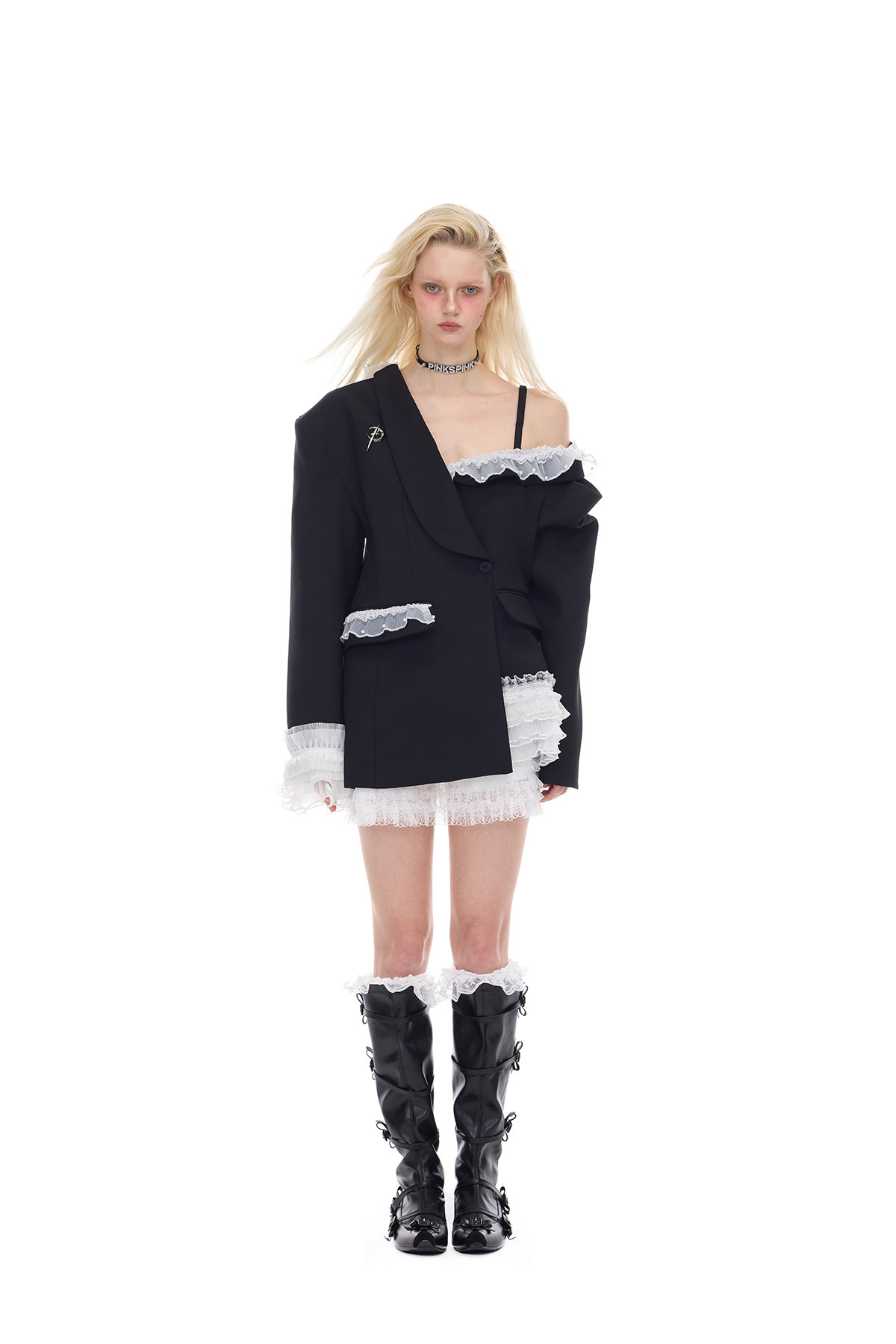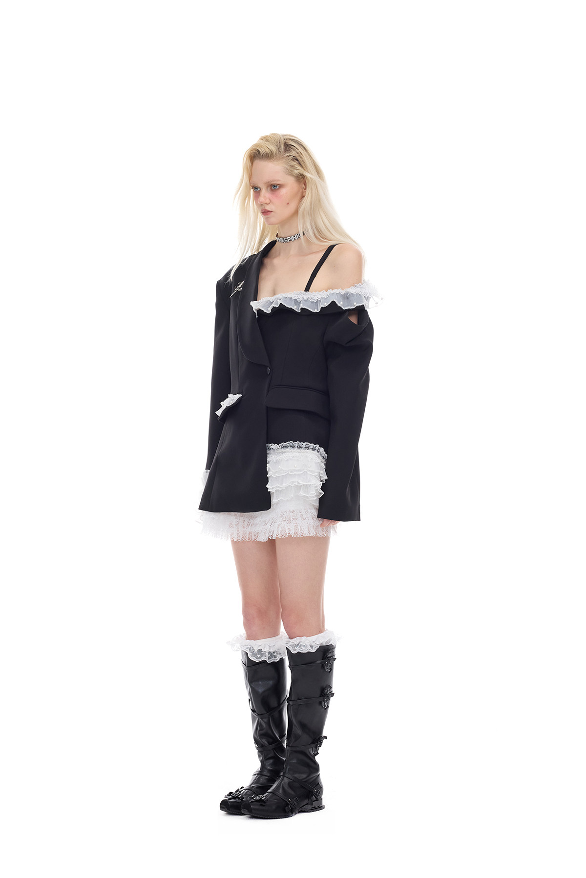 Irregular Lace Off-Shoulder Punk Ballet Y2K Set