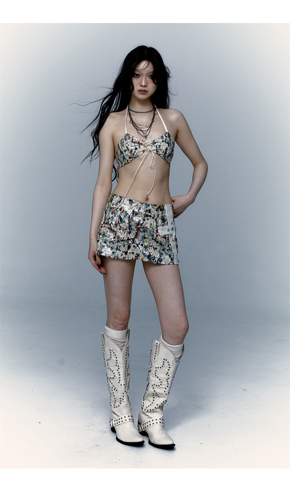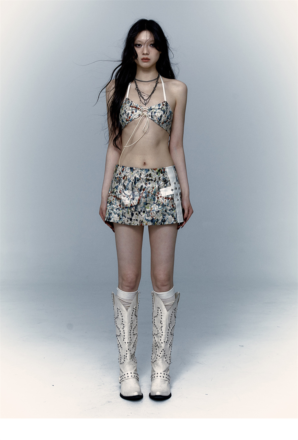 Set bikini con gonna impiombata |. Y2K Design vintage da spiaggia estiva