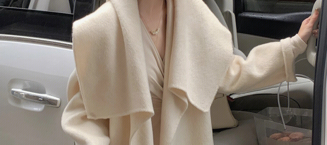White Reversible Cashmere Coat – Hepburn-Style Large Lapel Woolen Coat
