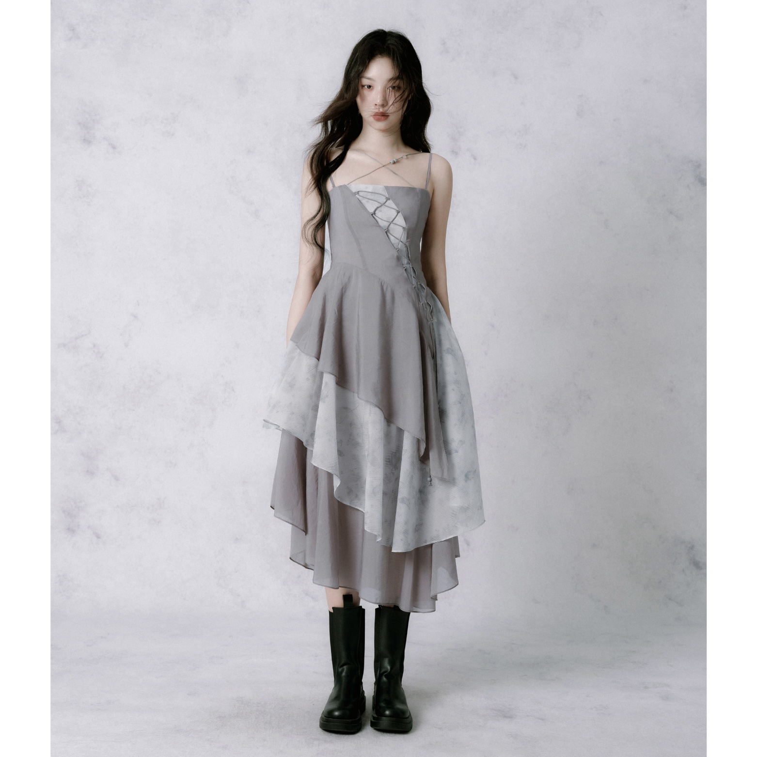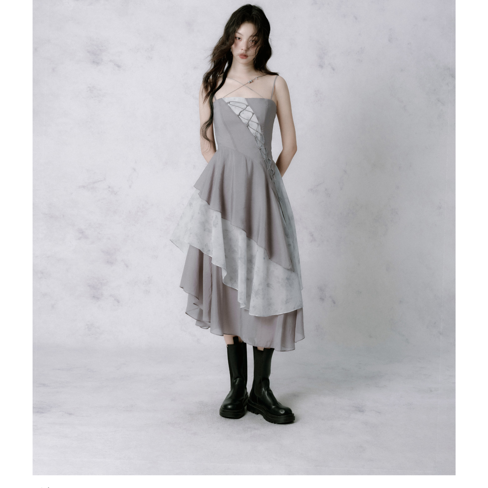 Mist Dust Falling Dreams Asymmetric Strap Dress