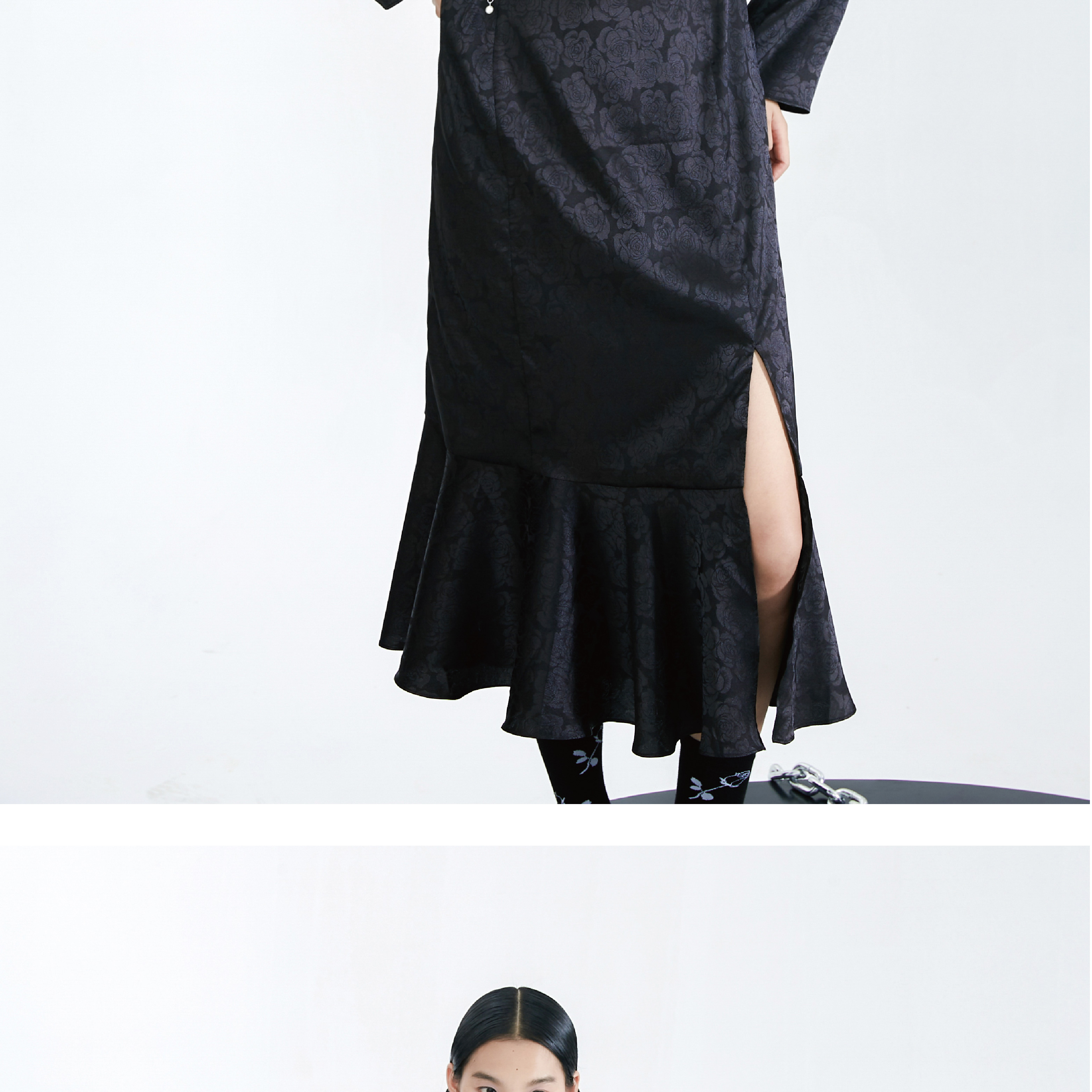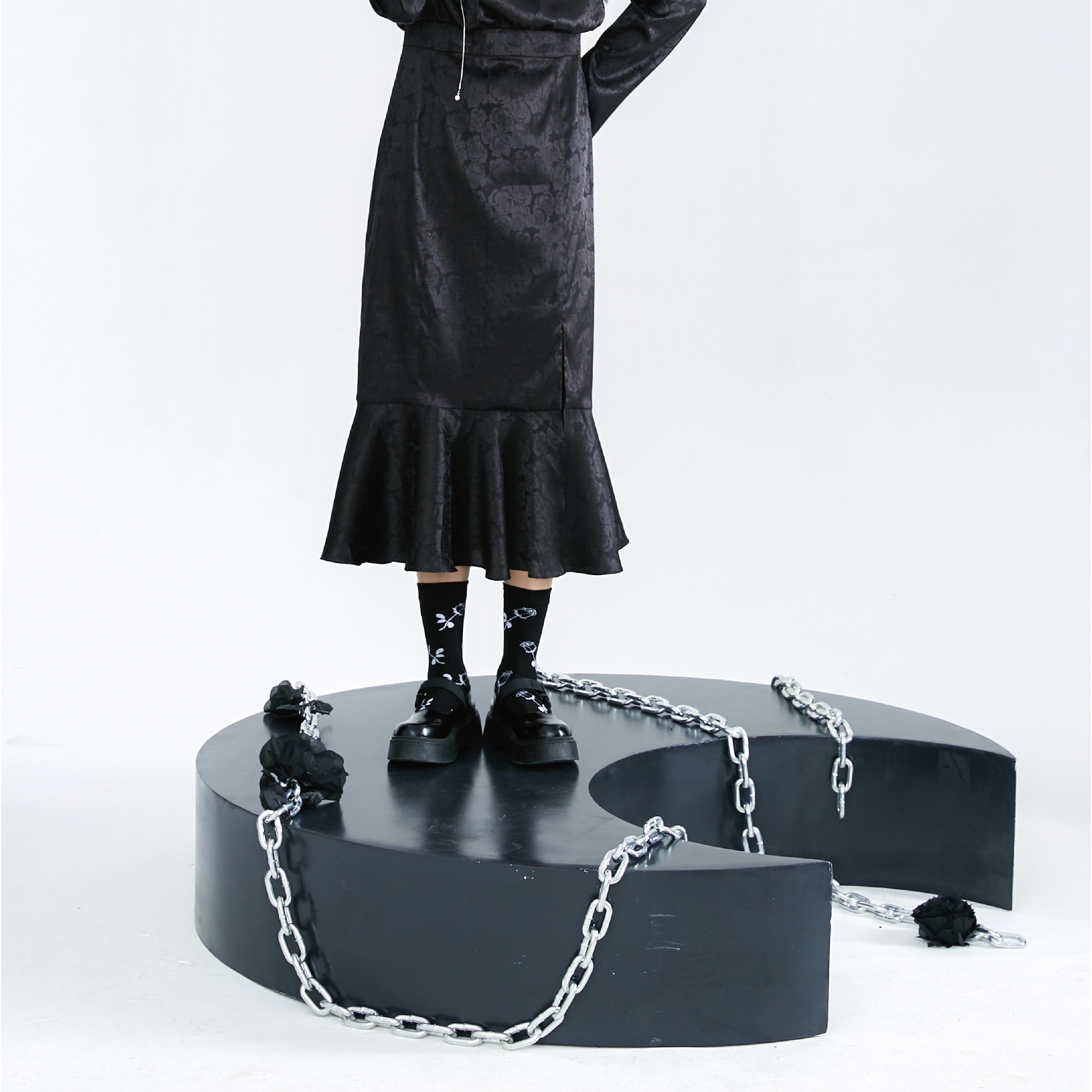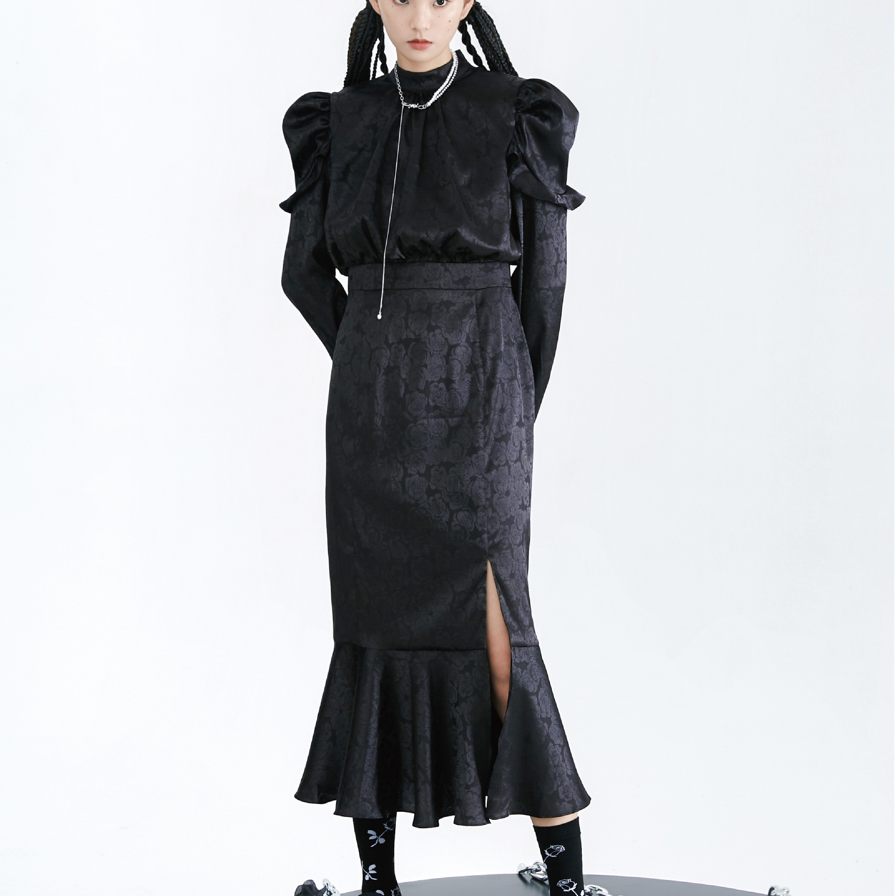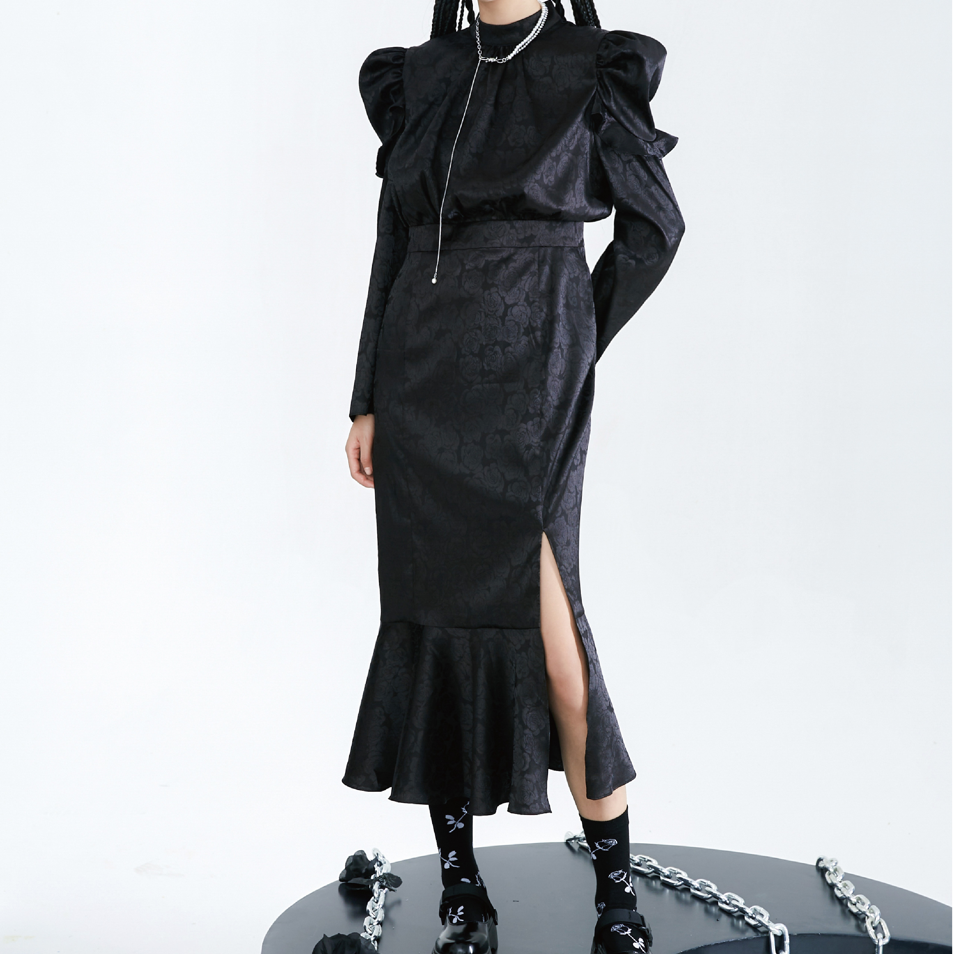 Original Autumn Dark Pattern Rose Fish Tail Long Dress