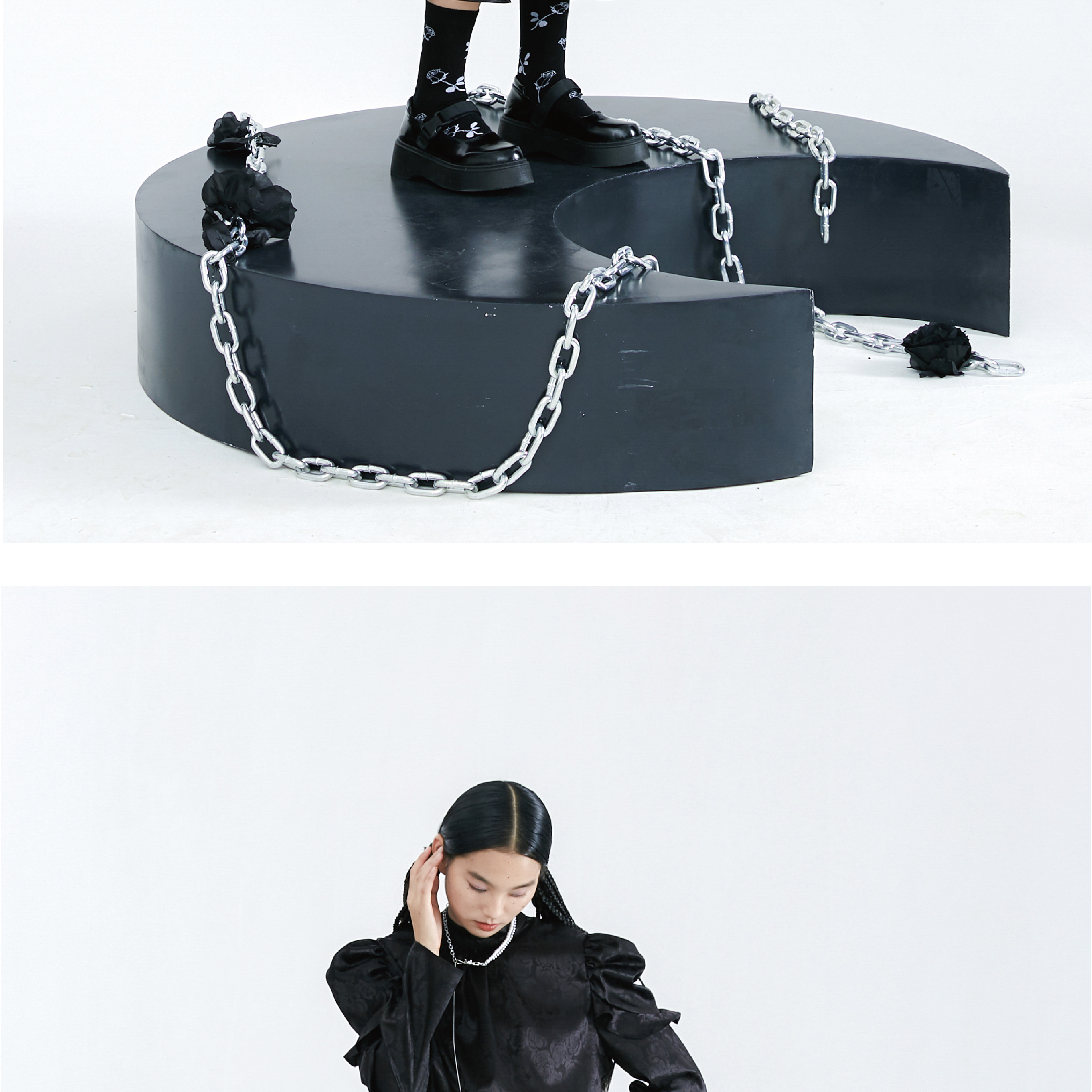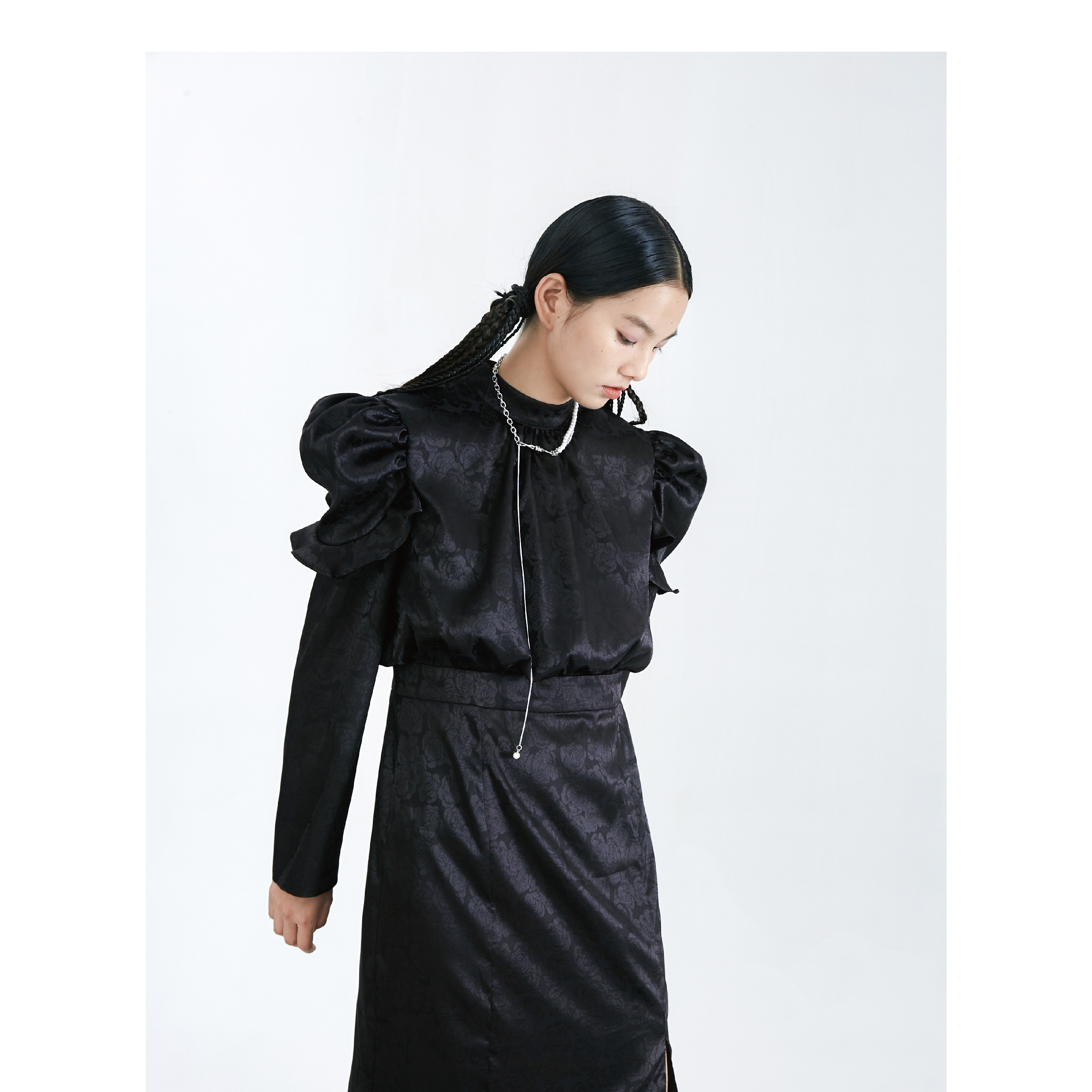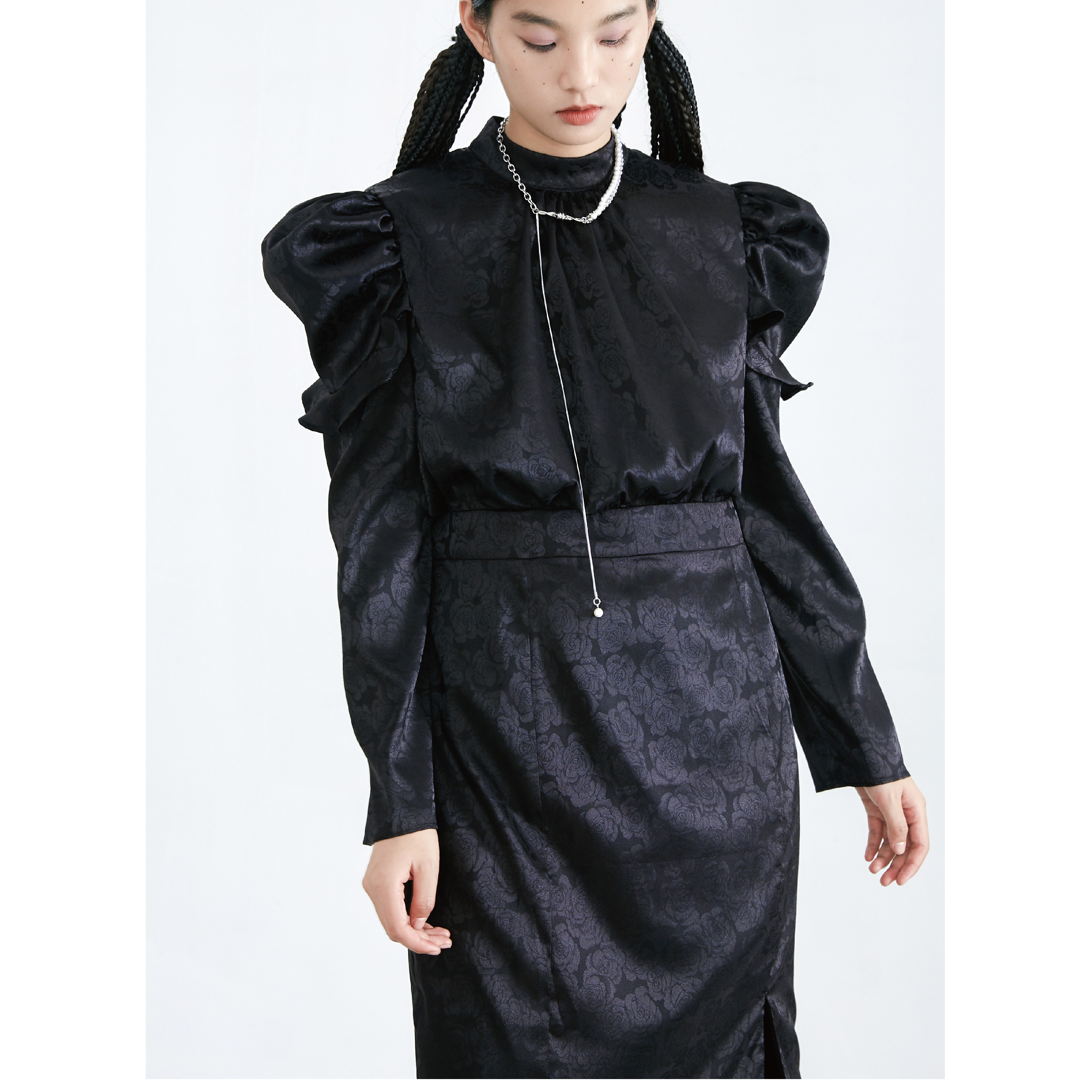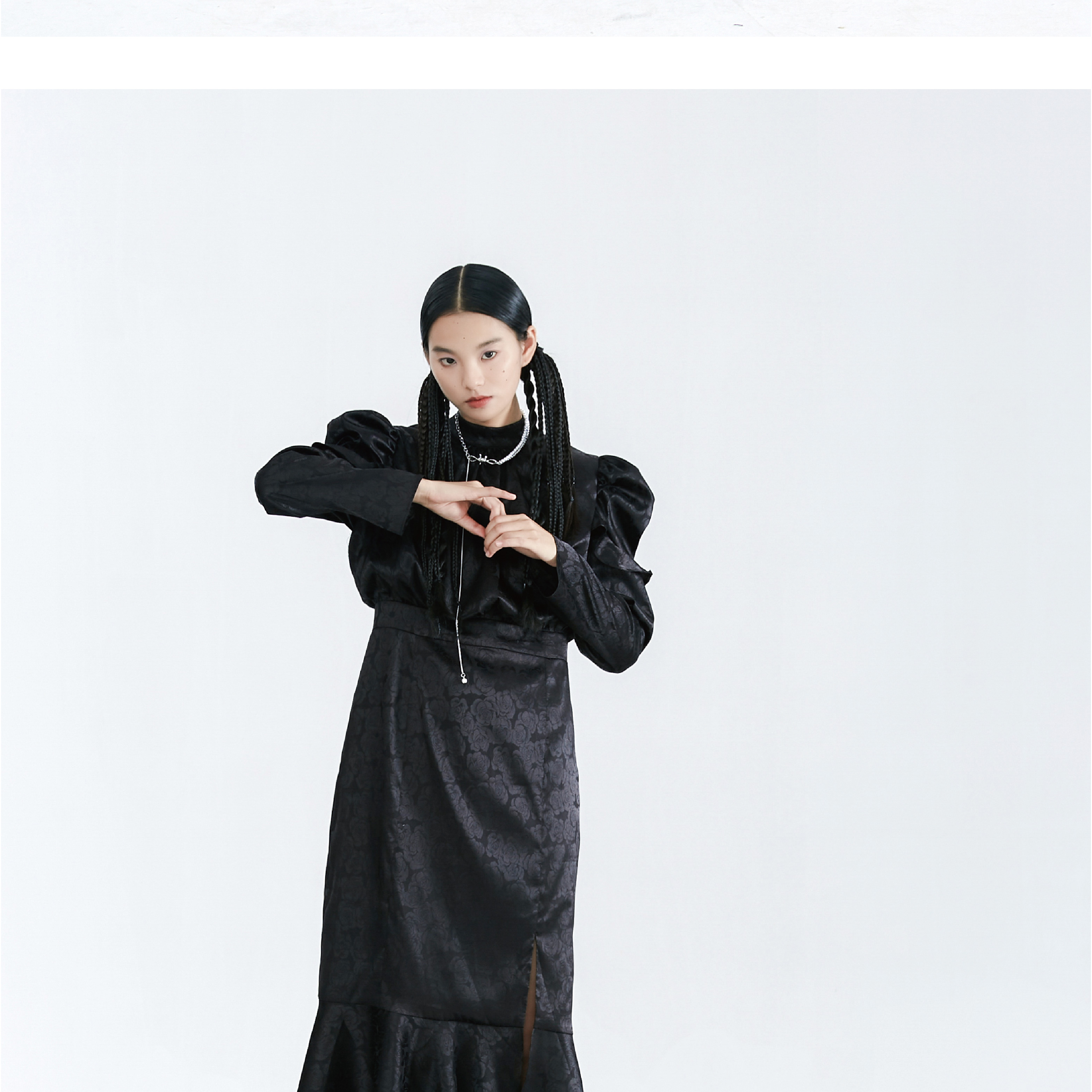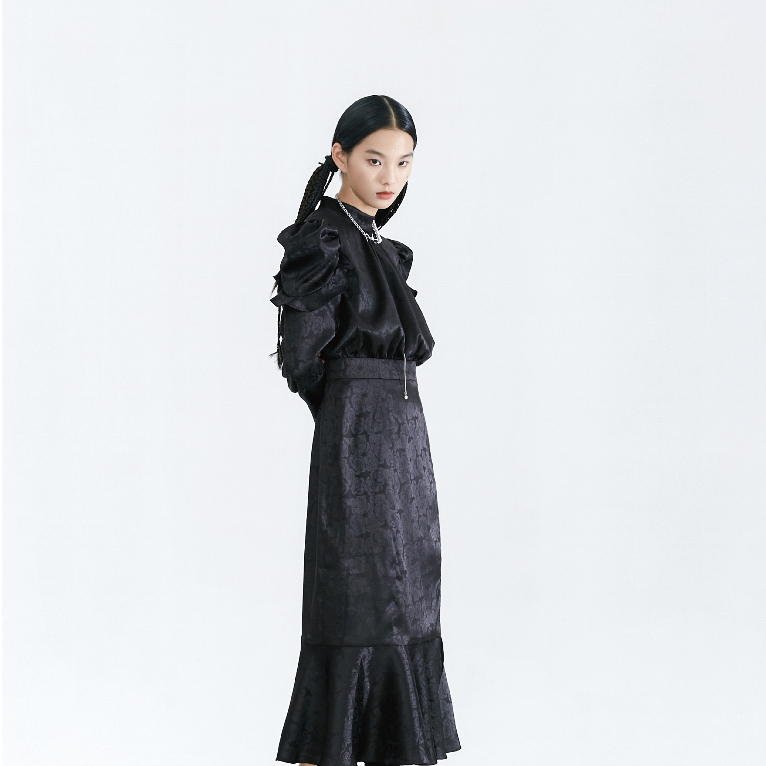 Original Autumn Dark Pattern Rose Fish Tail Long Dress
