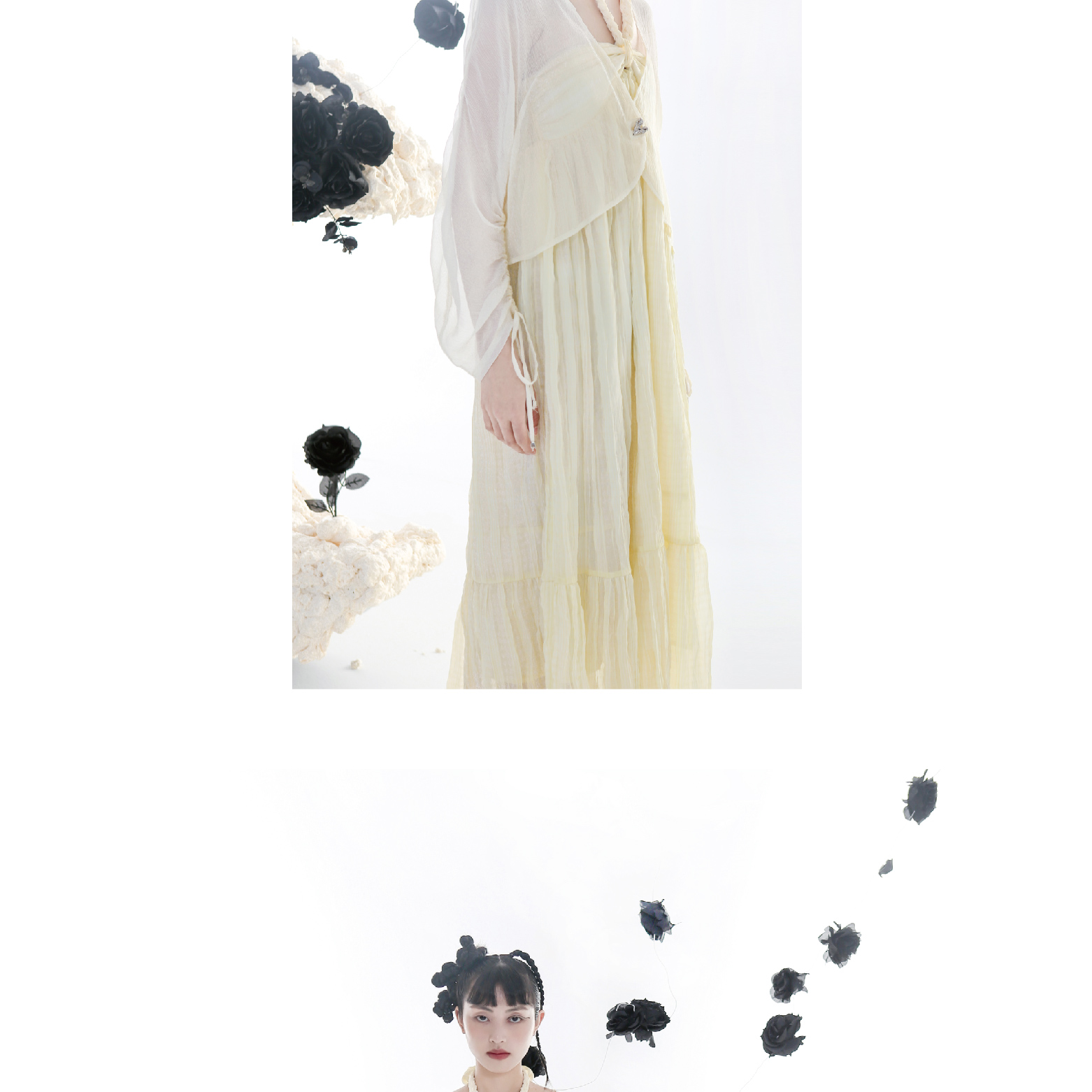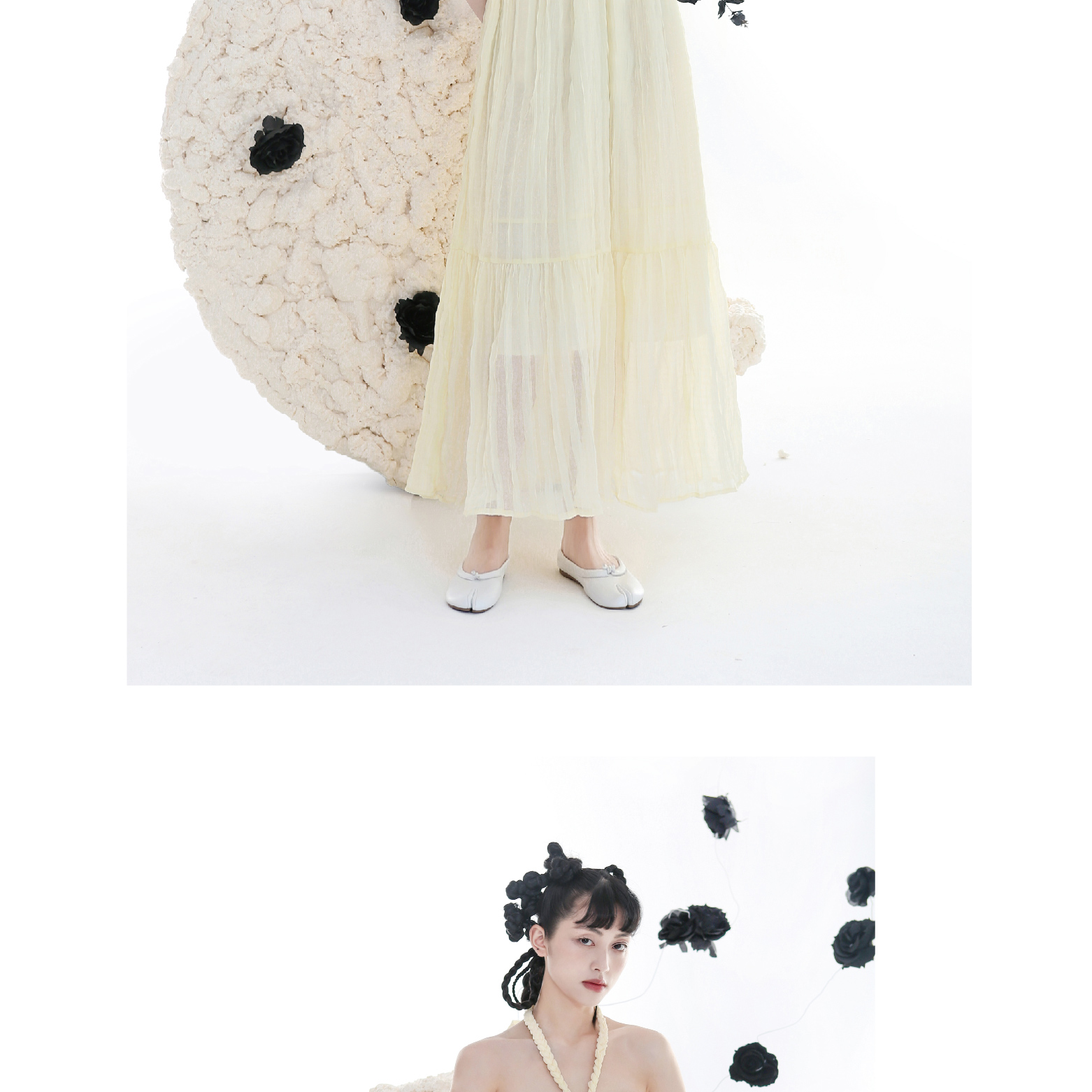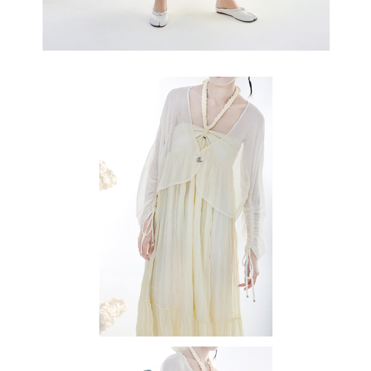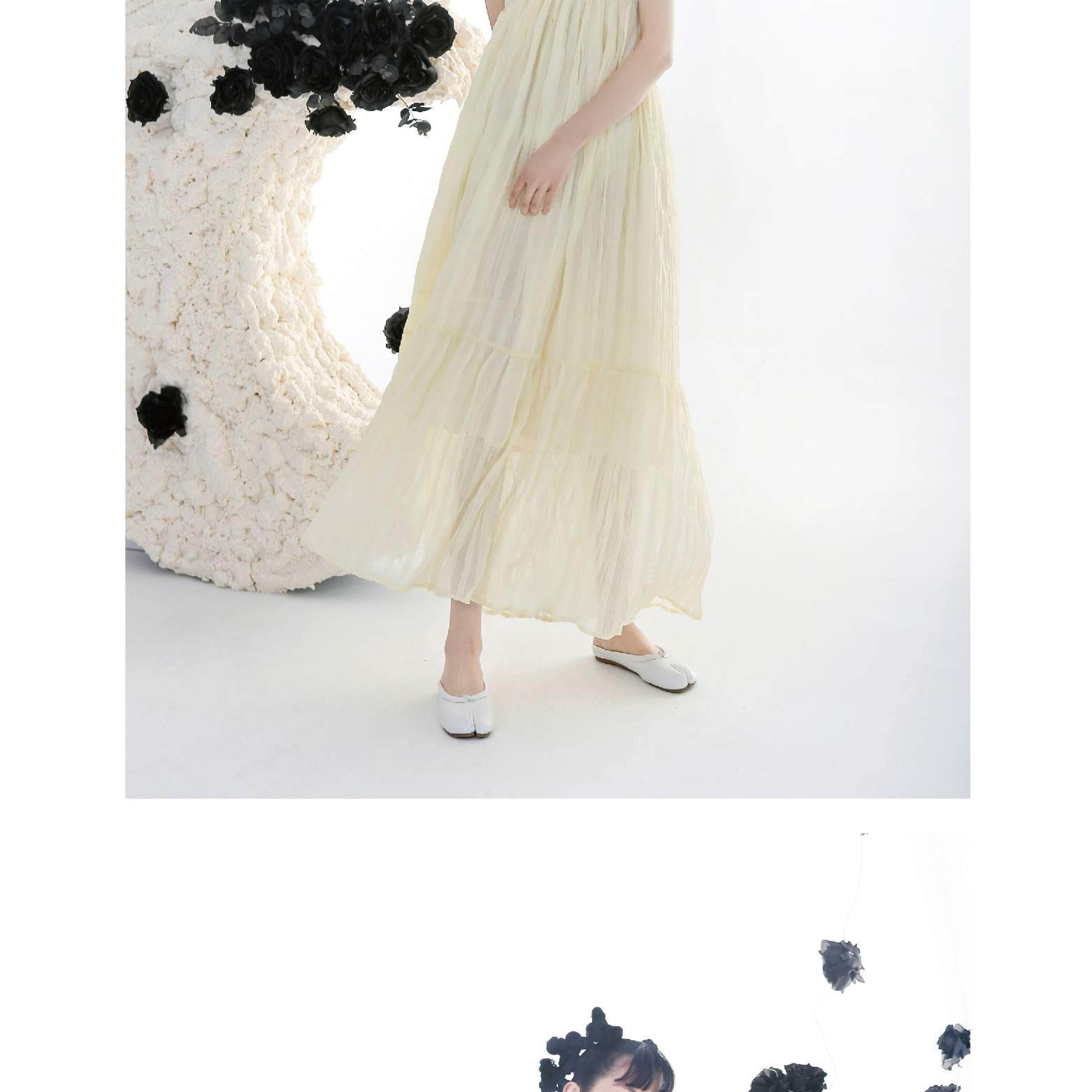 Original Light Yellow Handmade Knitted Neck Pleated Dress