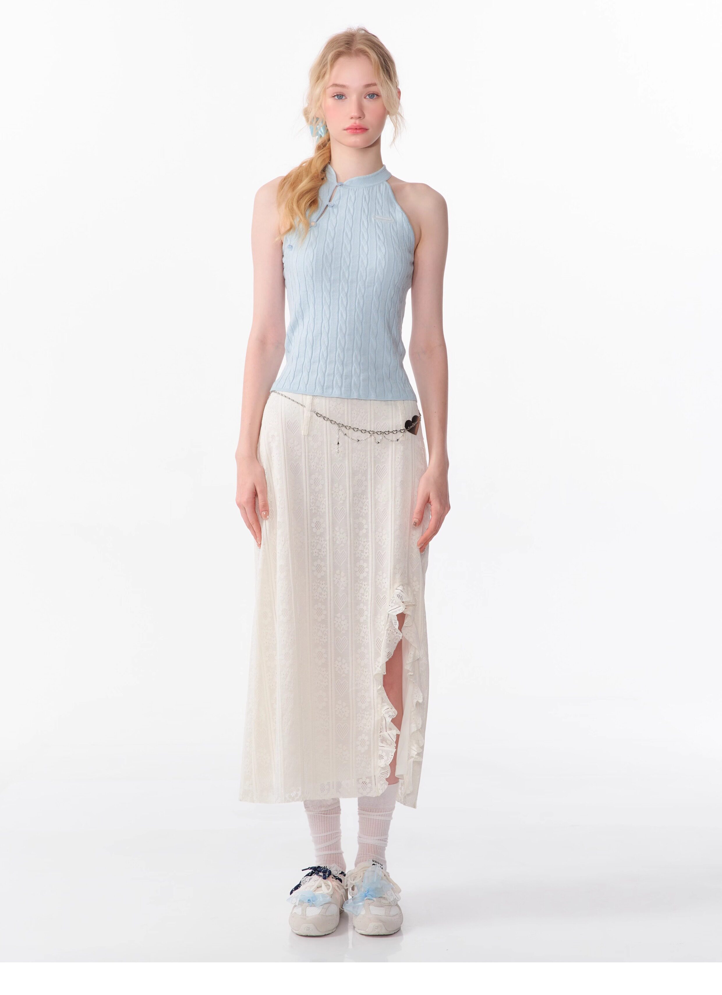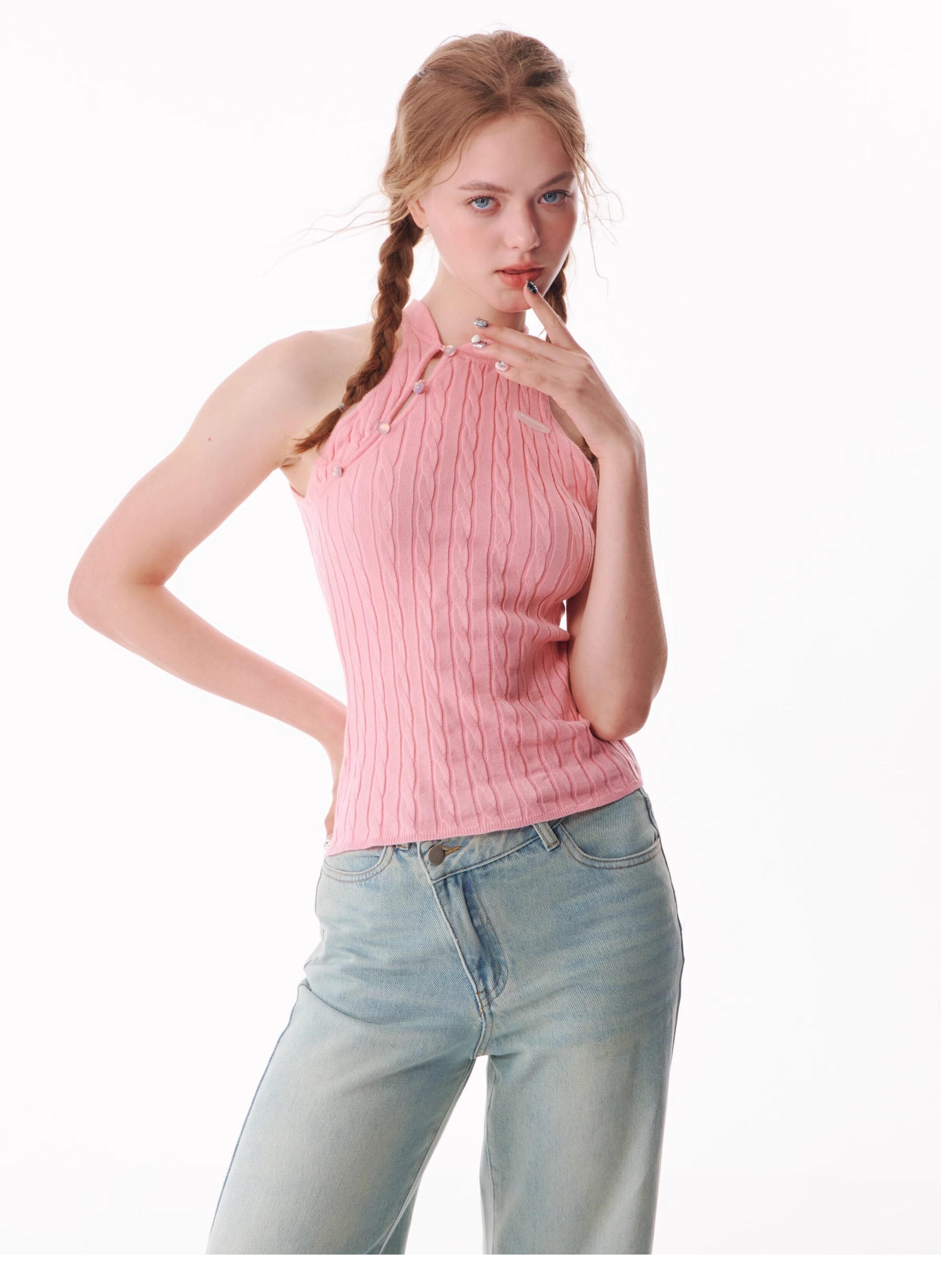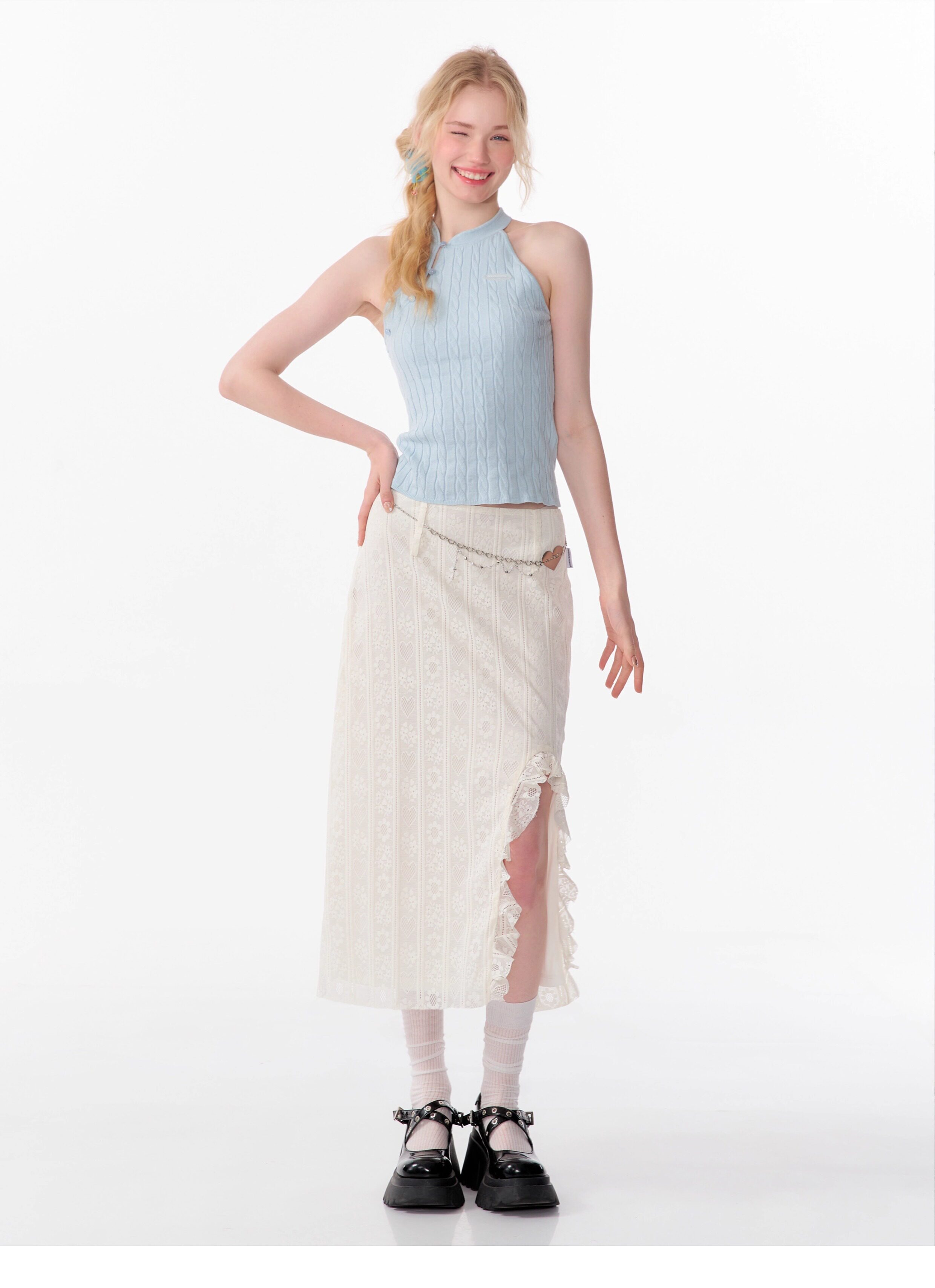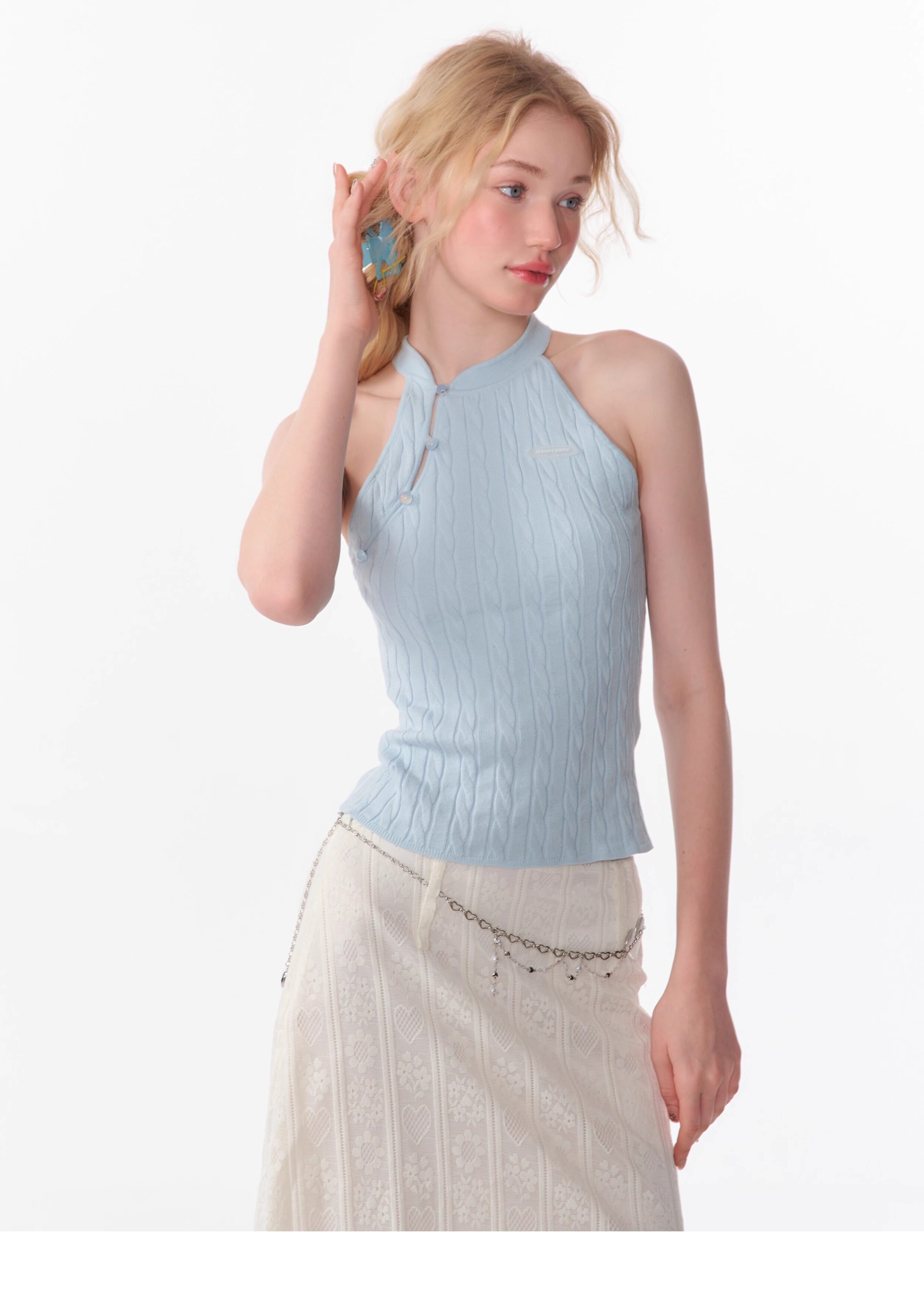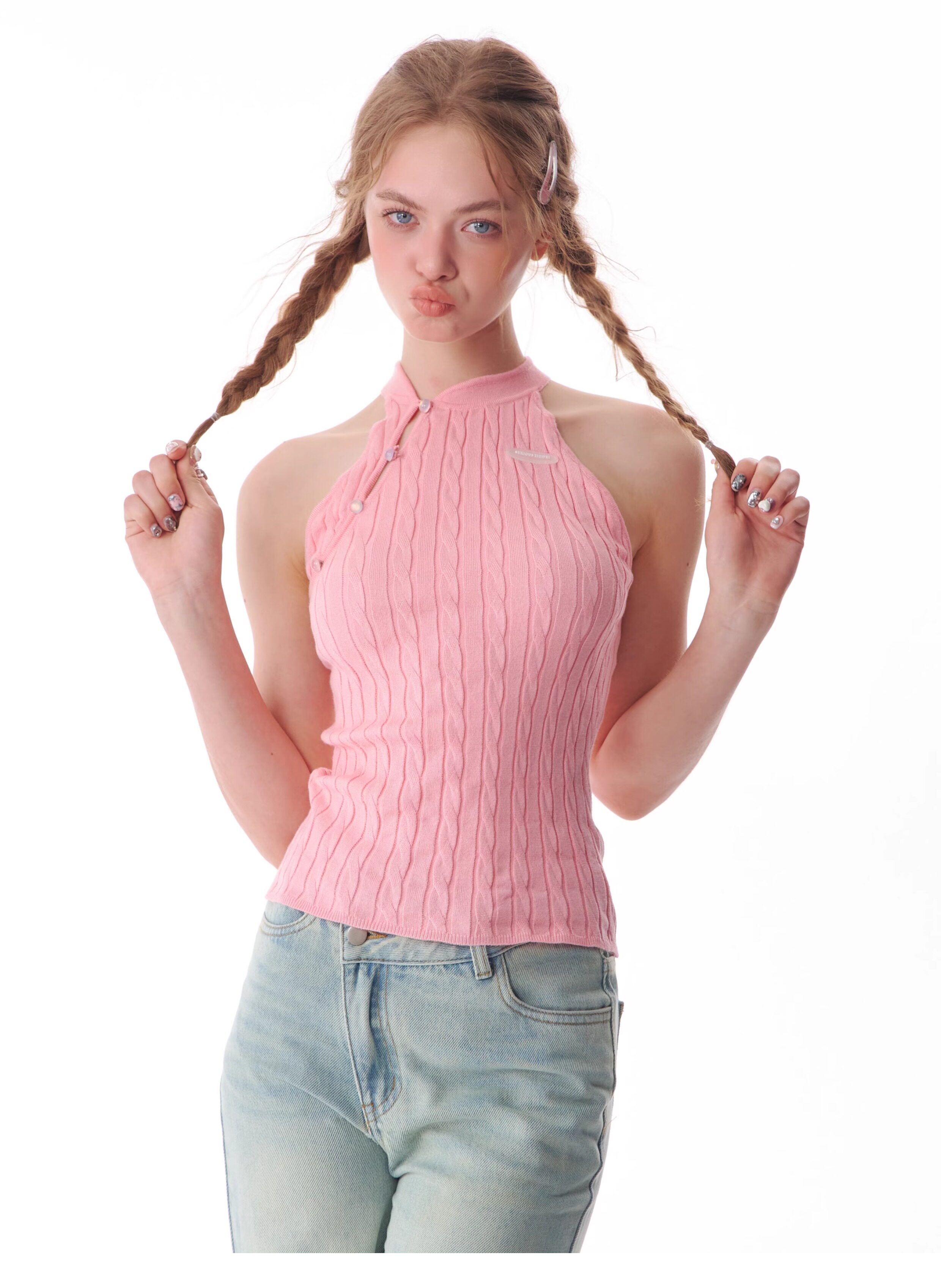 Top senza maniche con bocca inclinata |. Design retrò lavorato a maglia senza schienale per l'estate