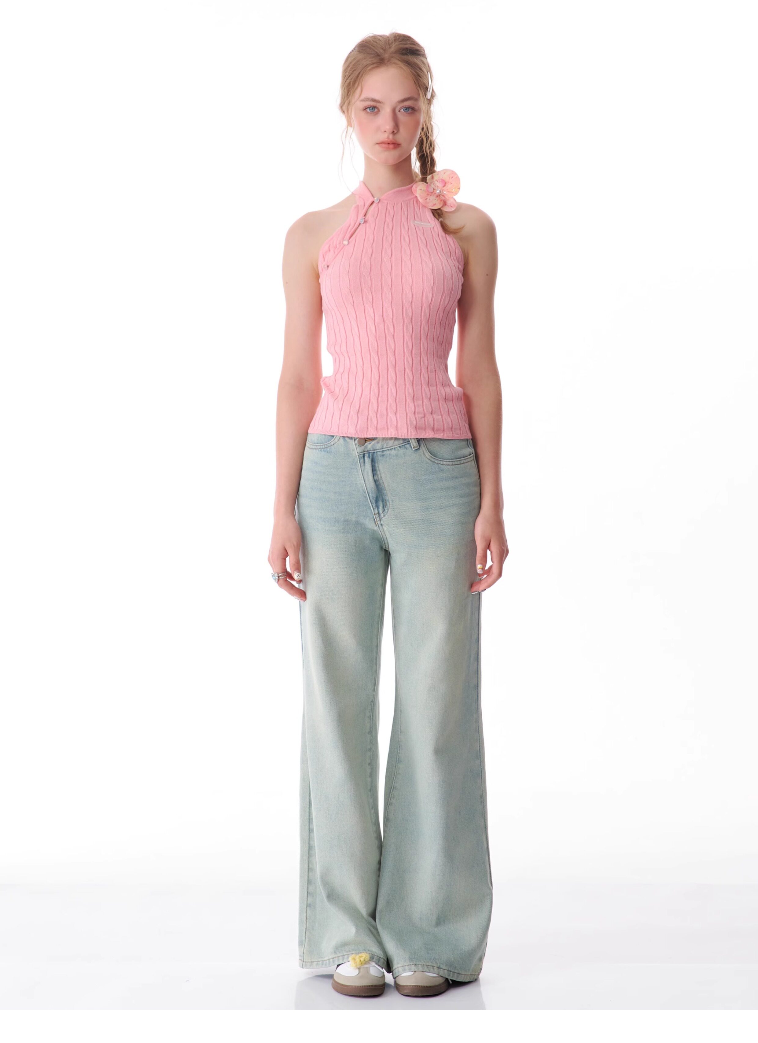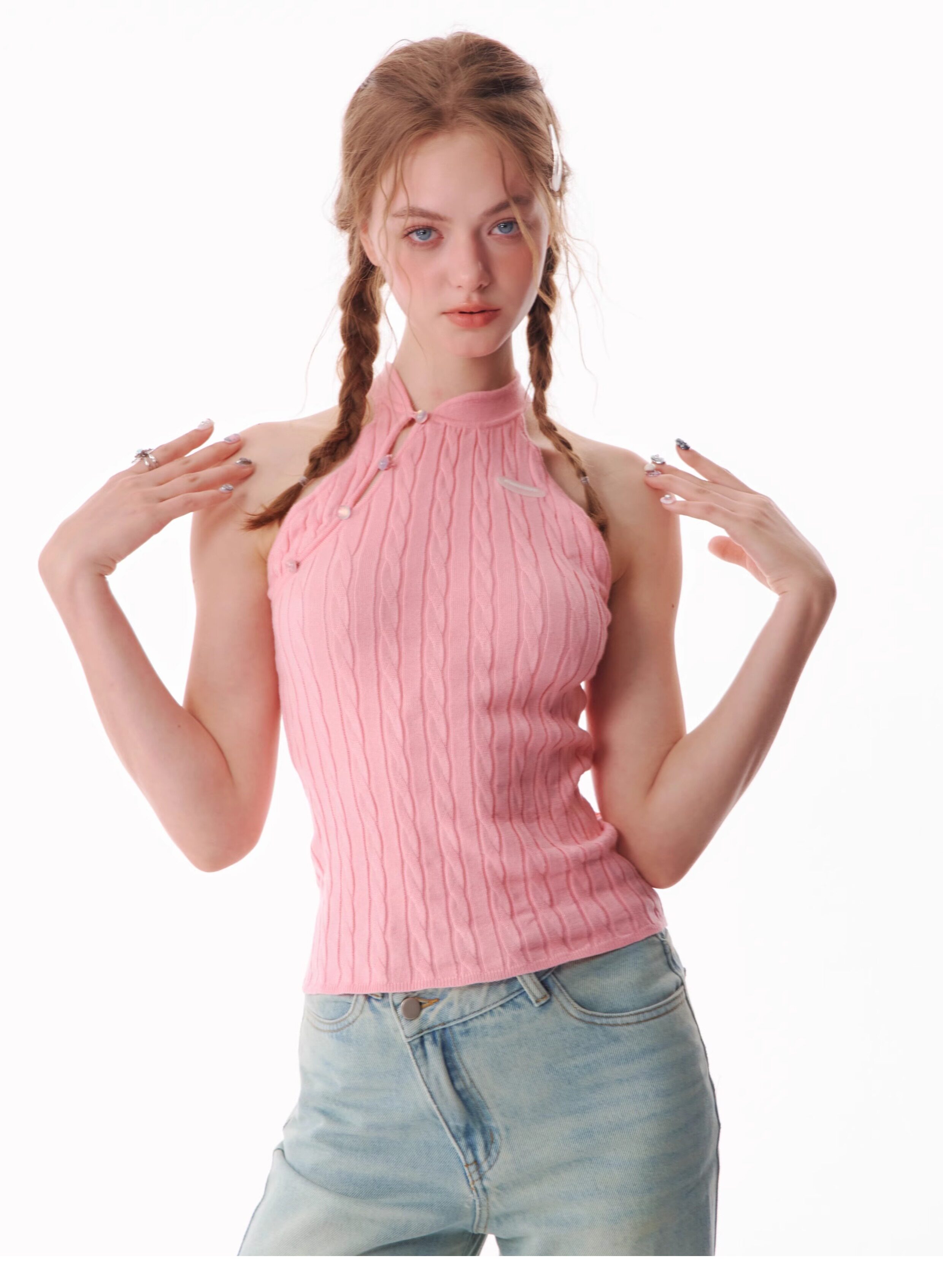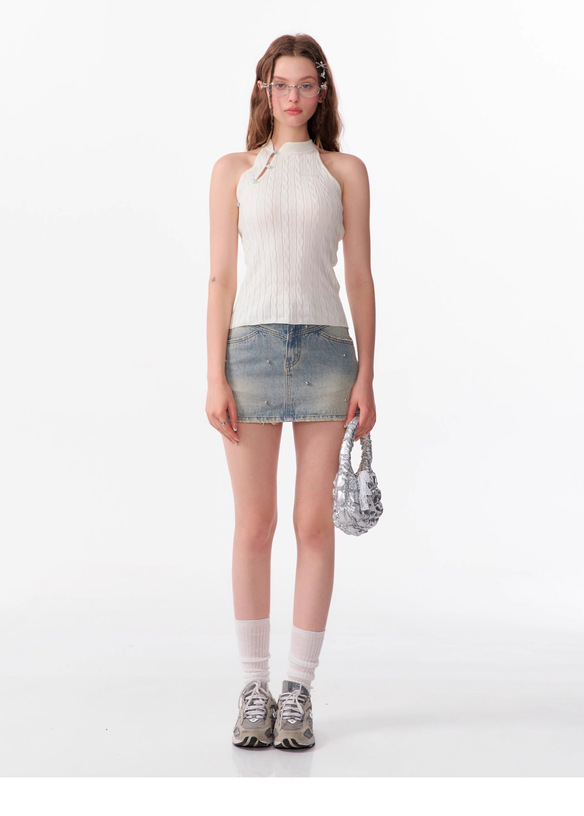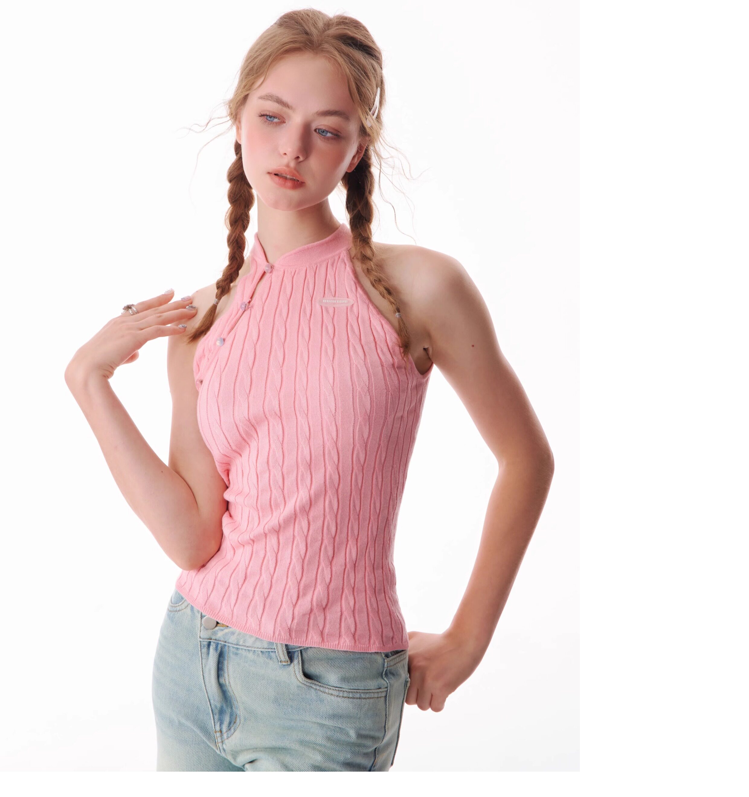 Top senza maniche con bocca inclinata |. Design retrò lavorato a maglia senza schienale per l'estate
