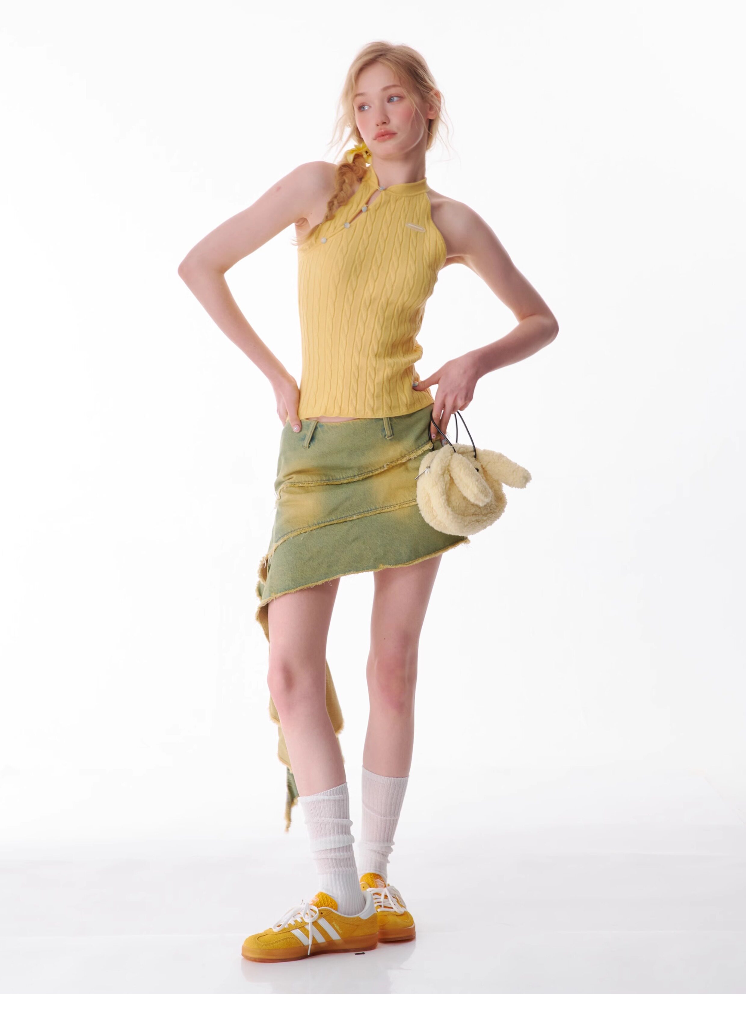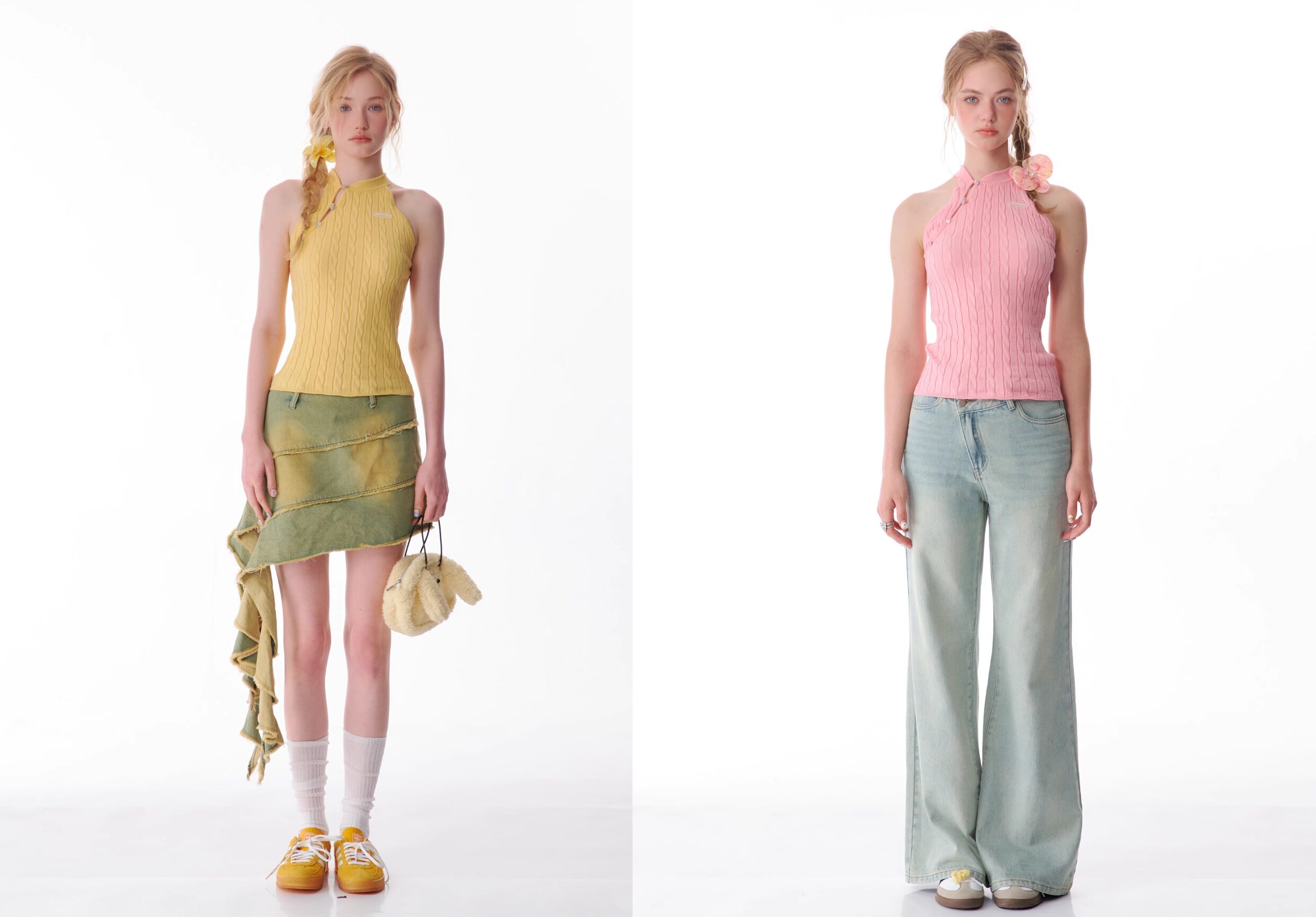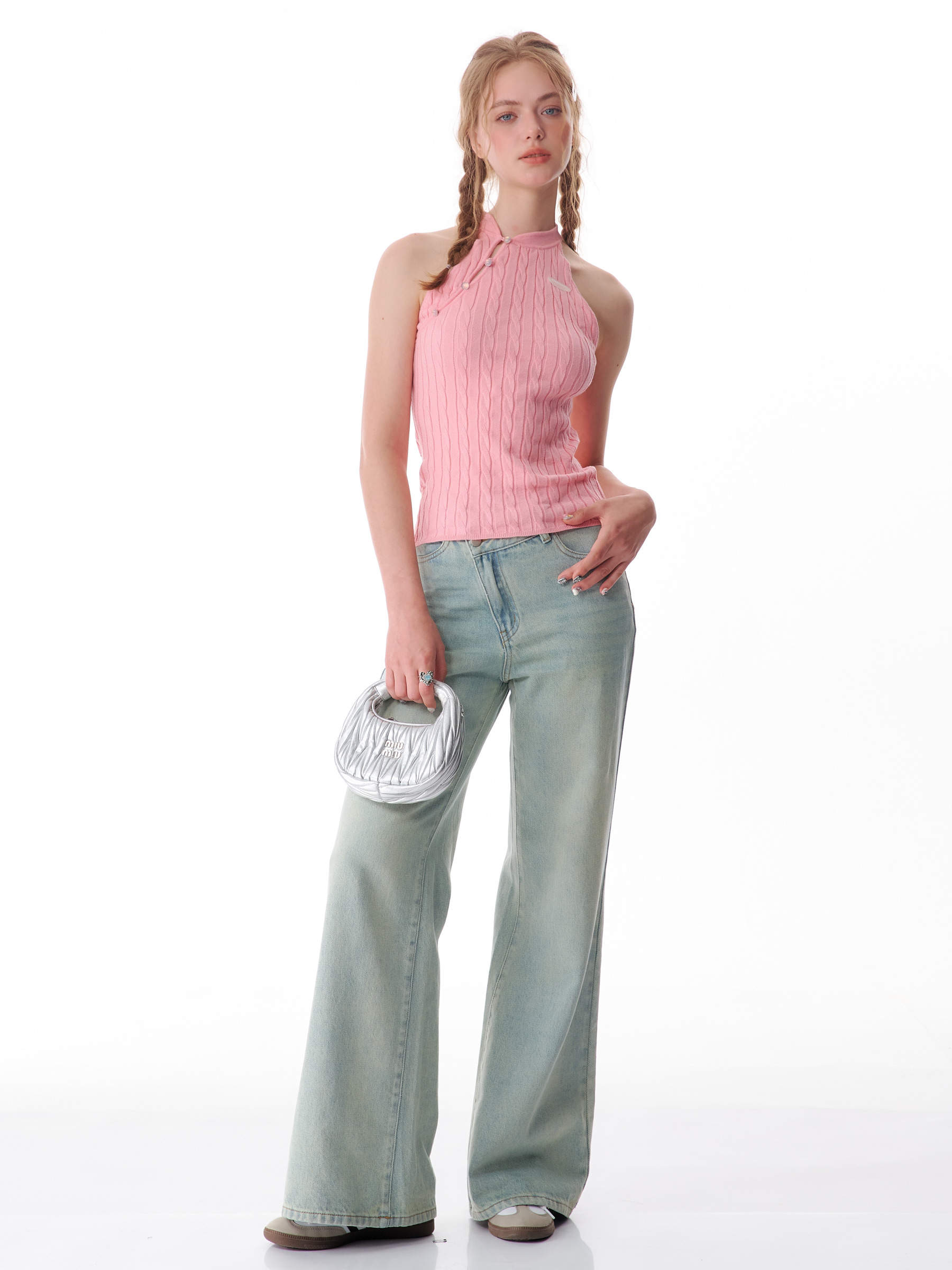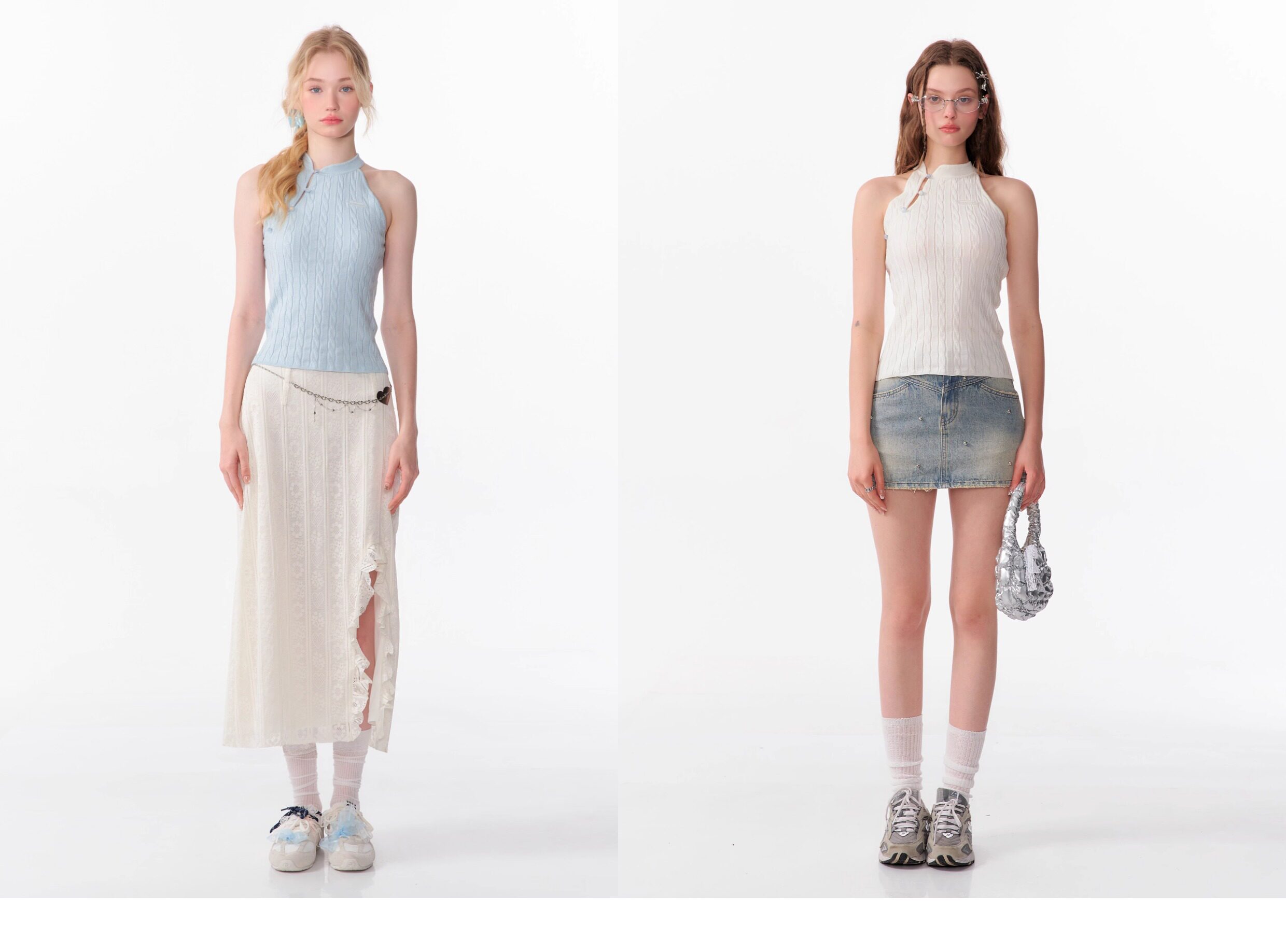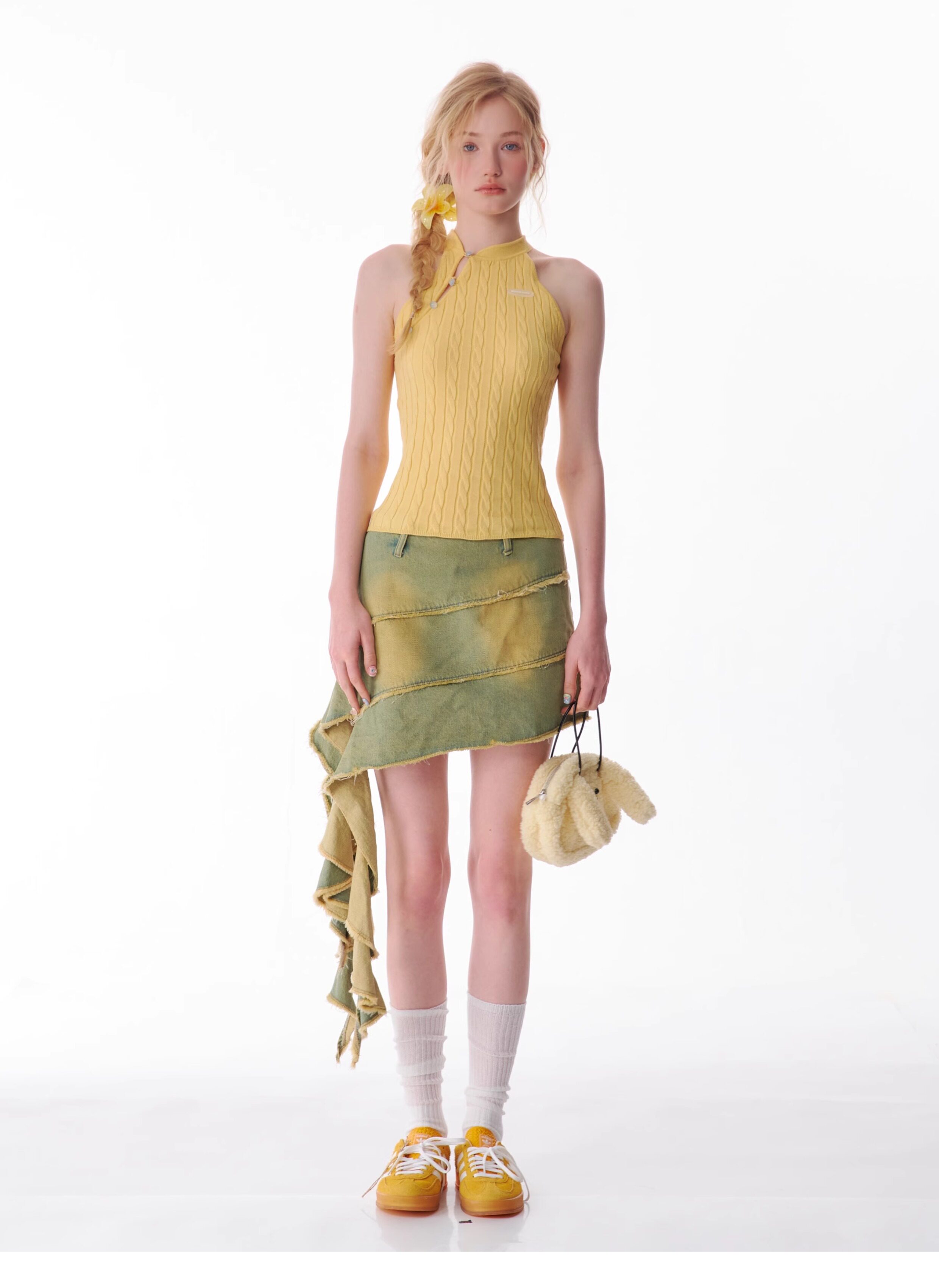 Top senza maniche con bocca inclinata |. Design retrò lavorato a maglia senza schienale per l'estate