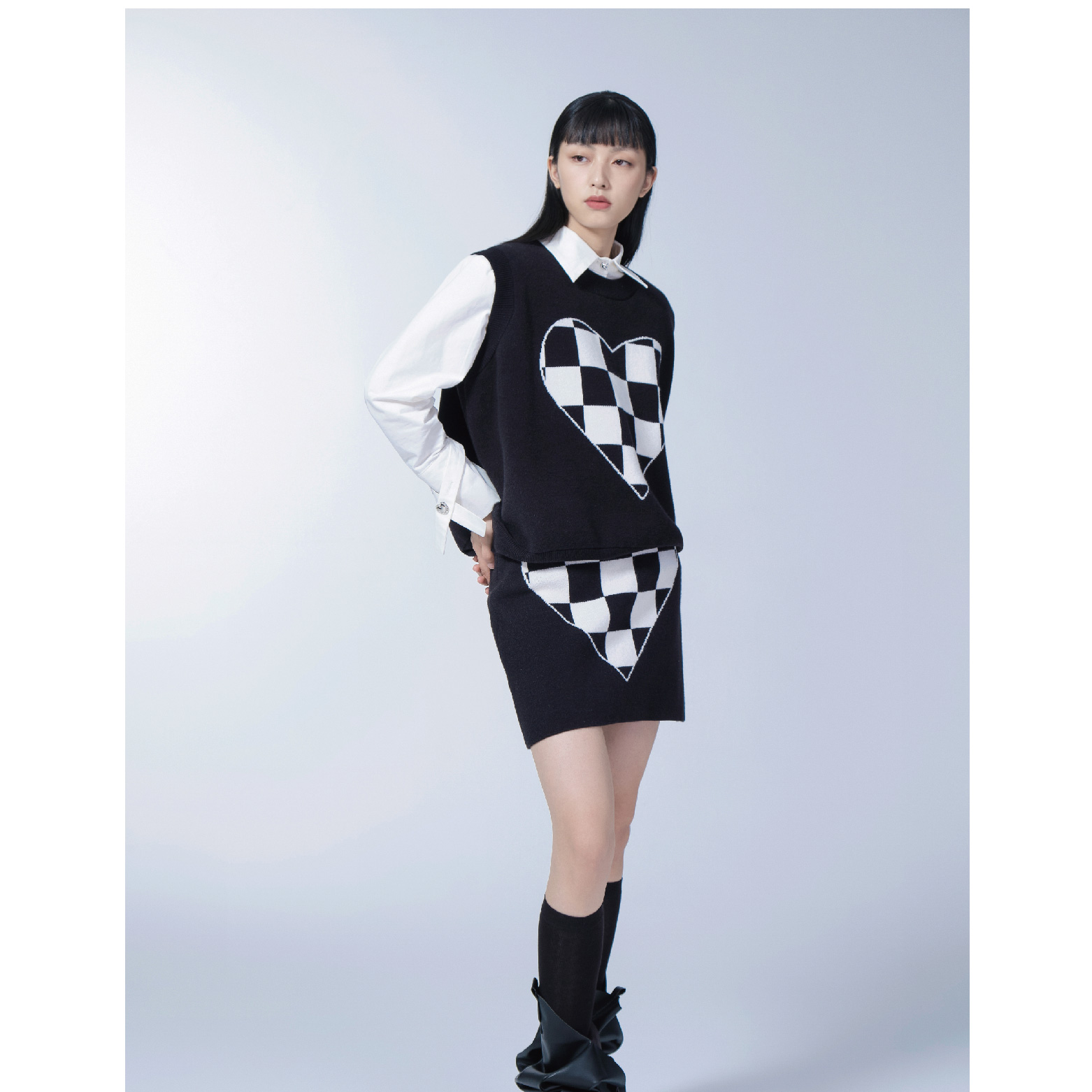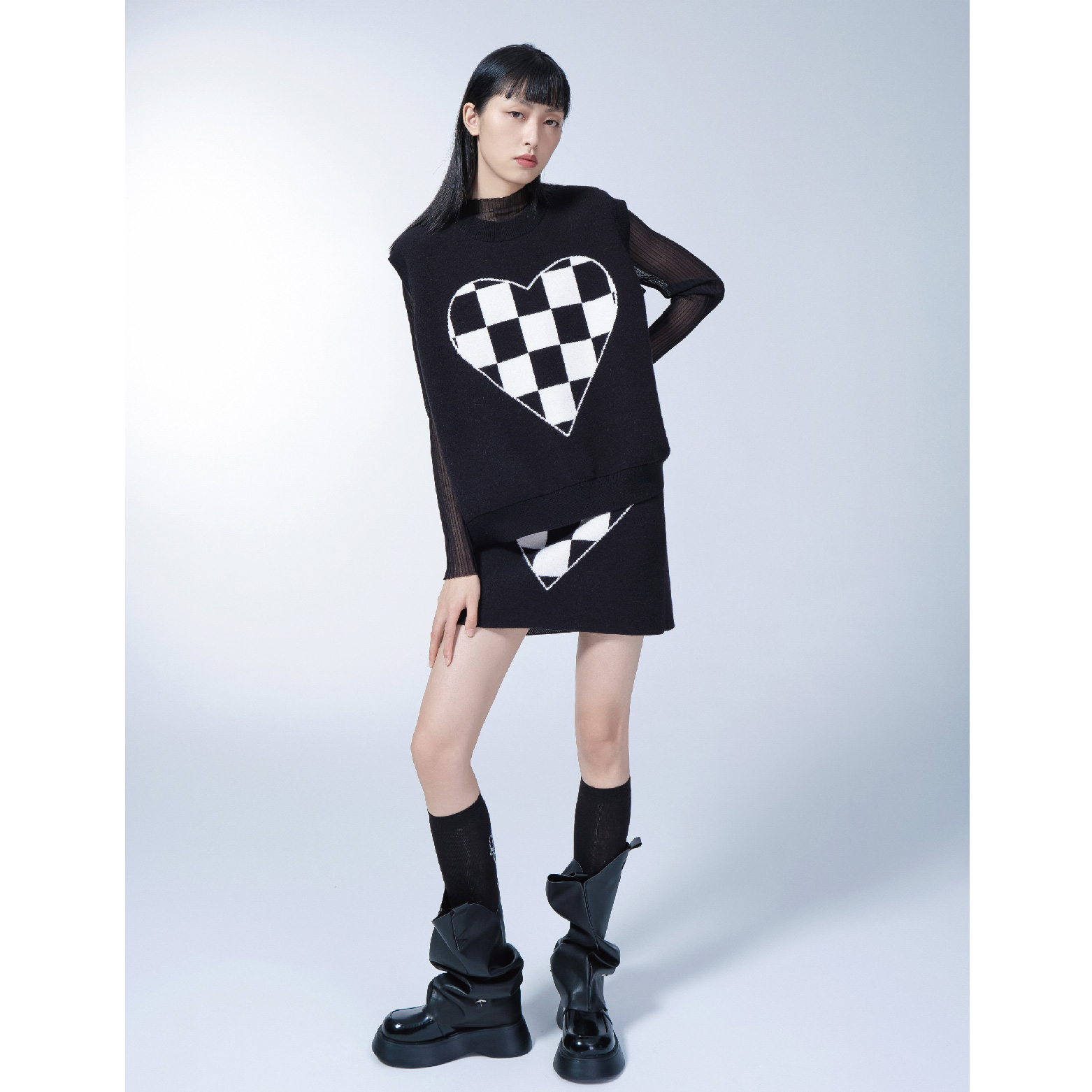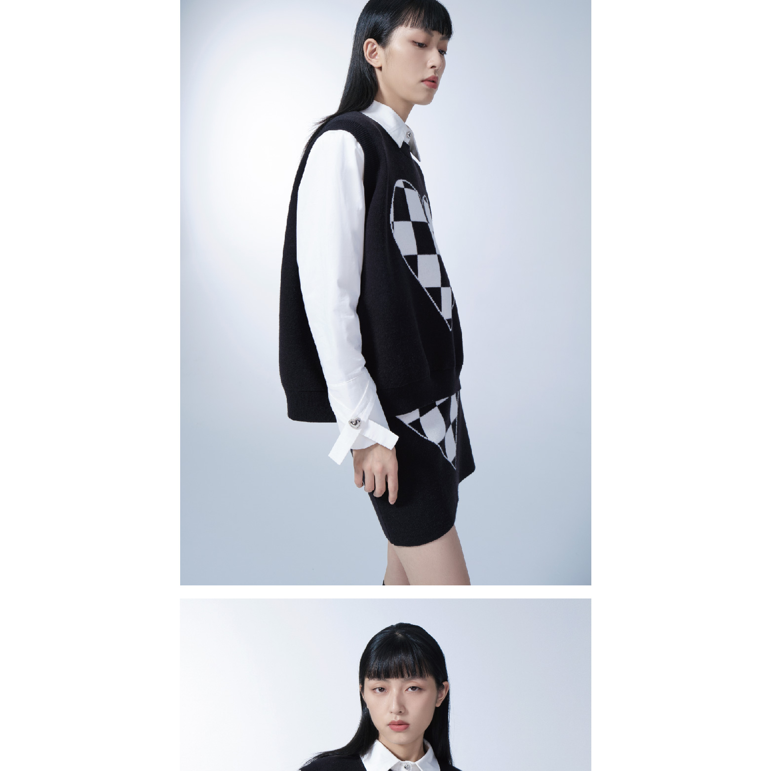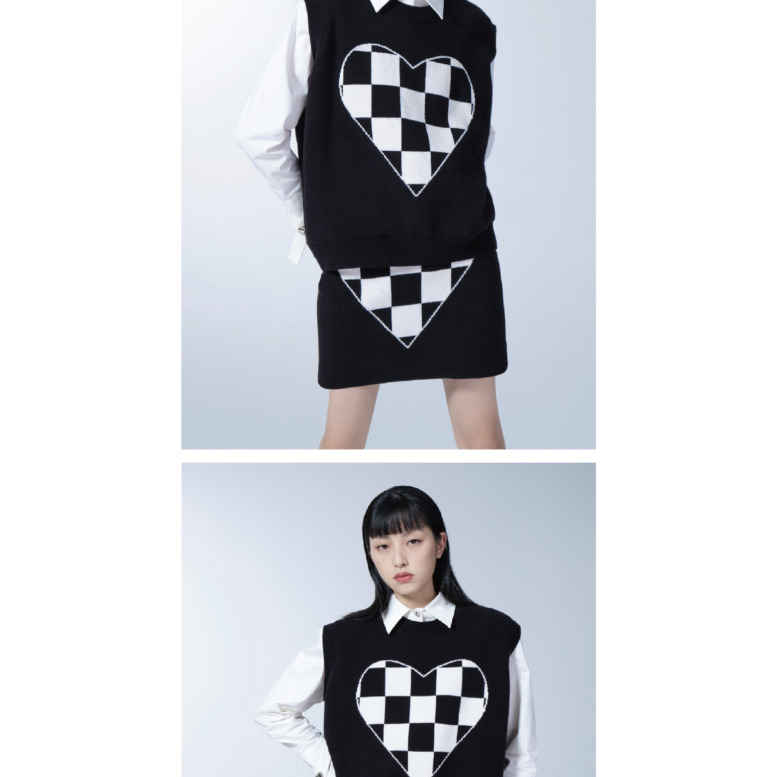 Black and White Plaid Knitted Vest