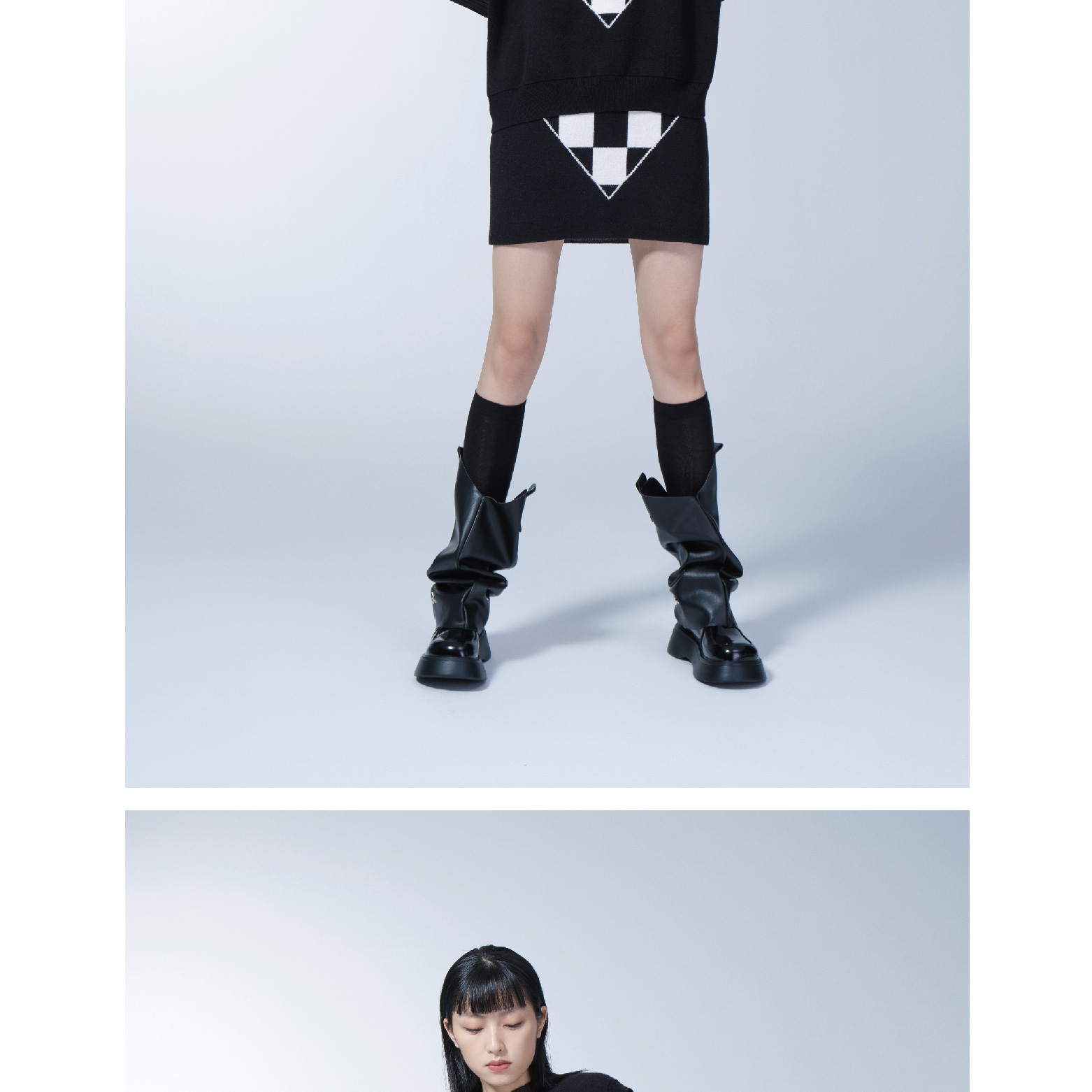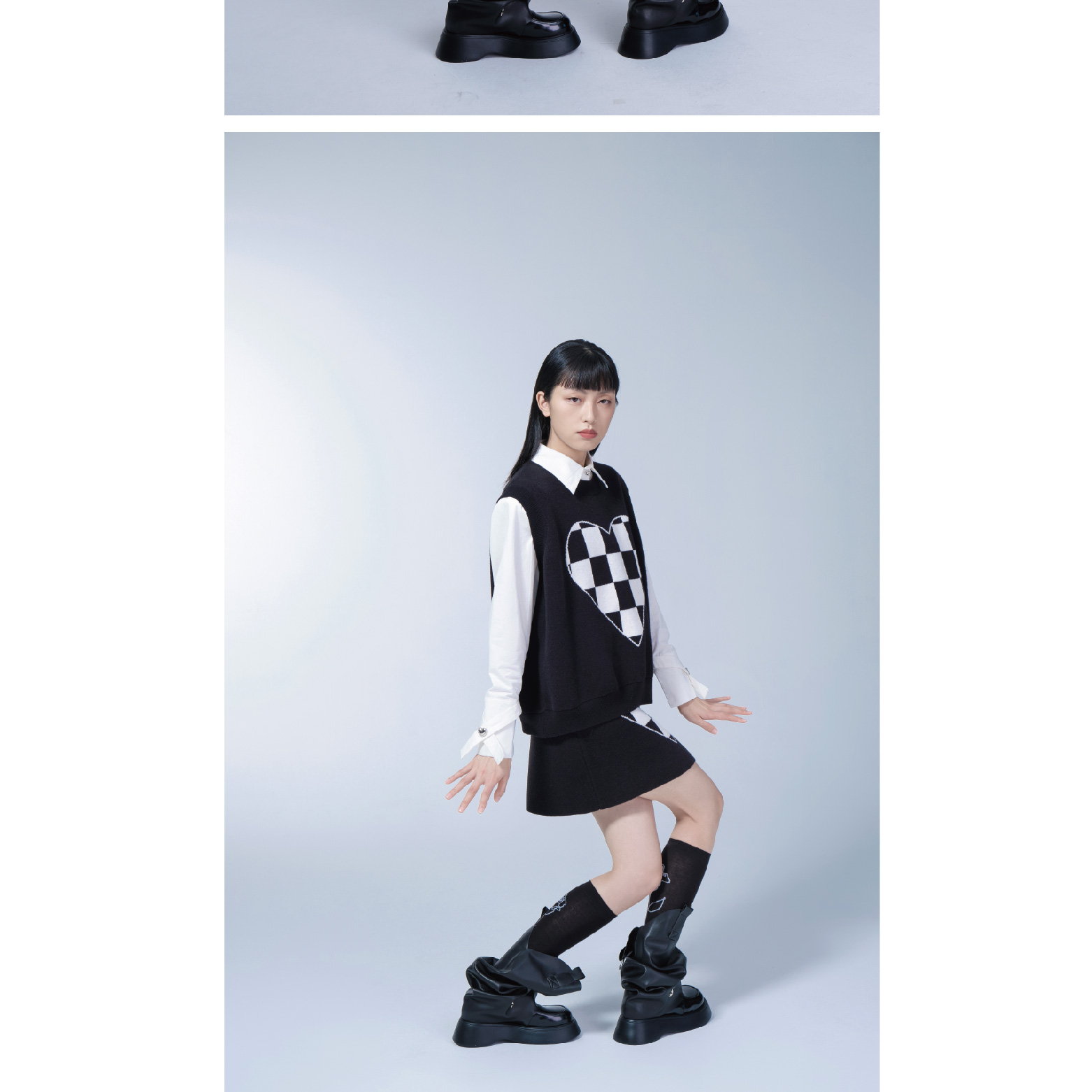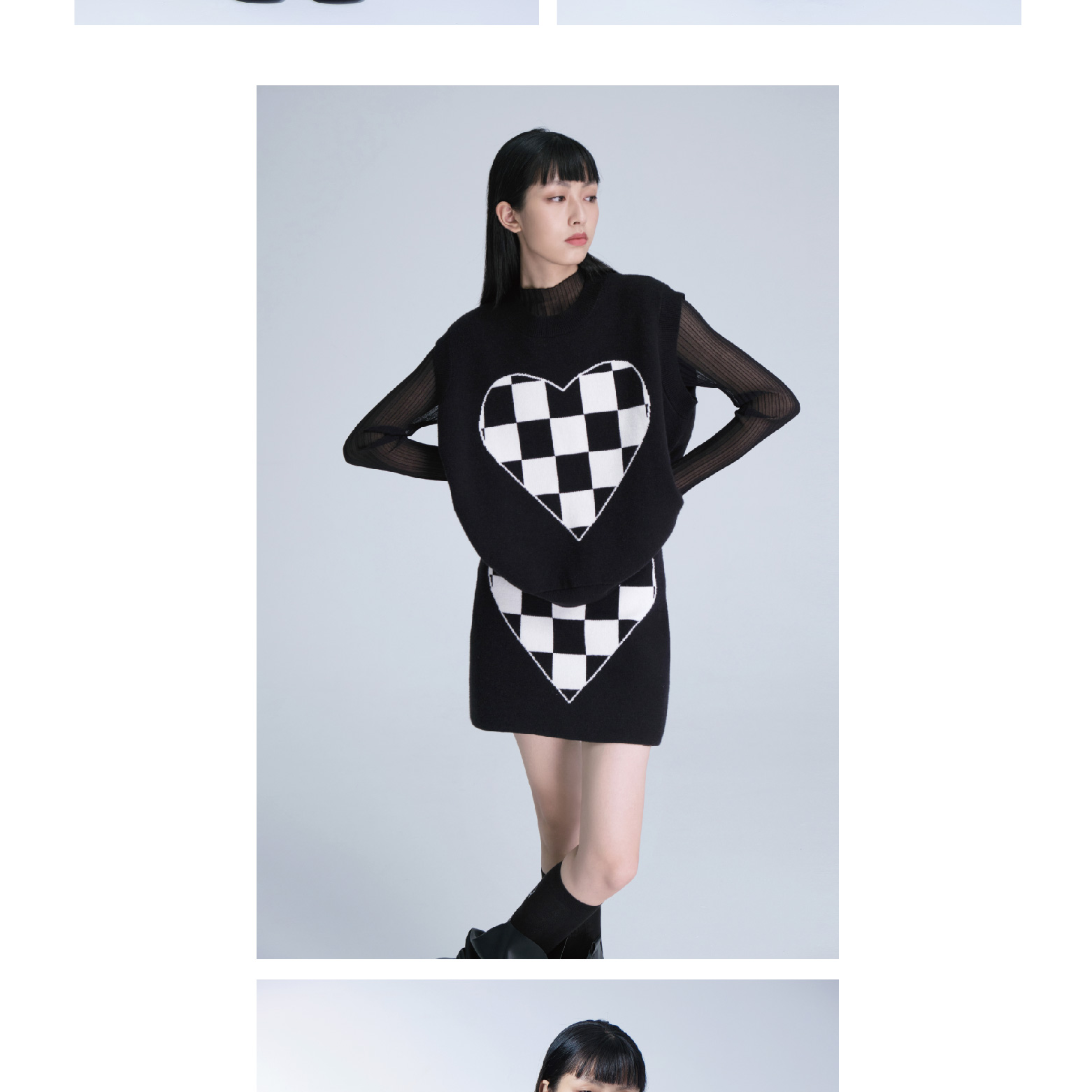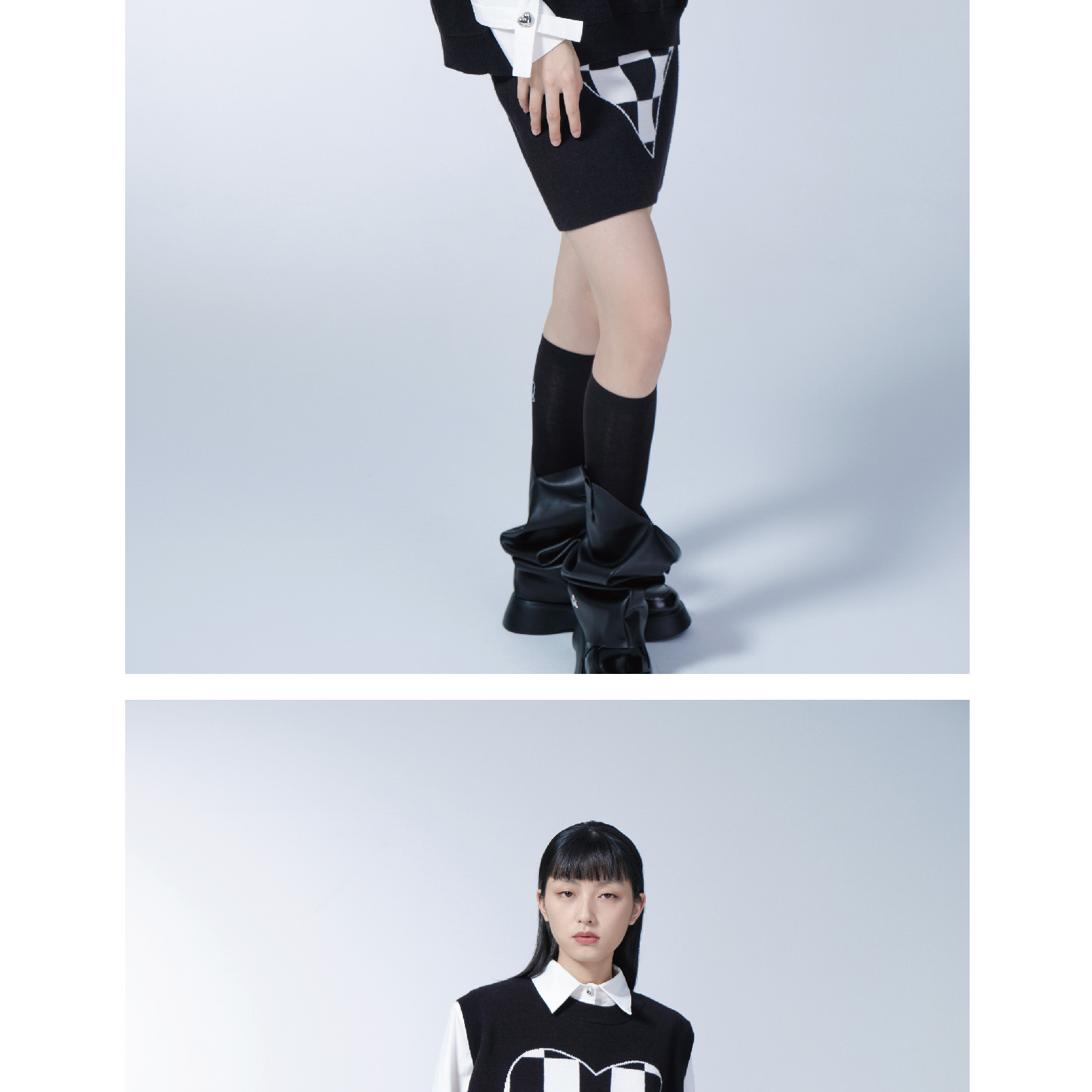 Black and White Plaid Knitted Vest