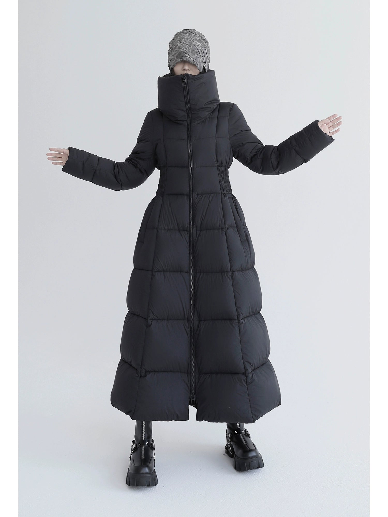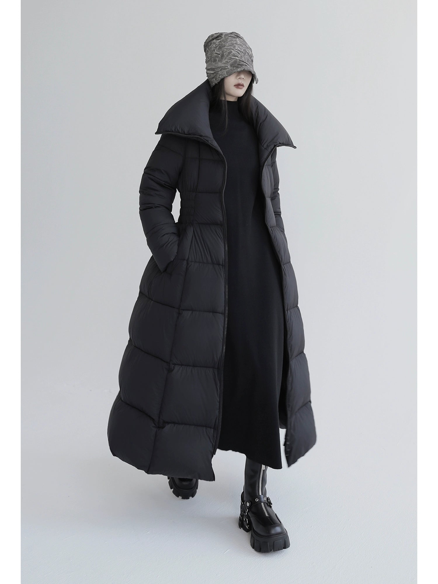 Over-The-Knee White Goose Down Jacket with Waist Design