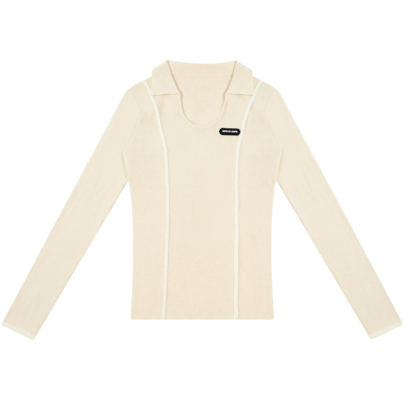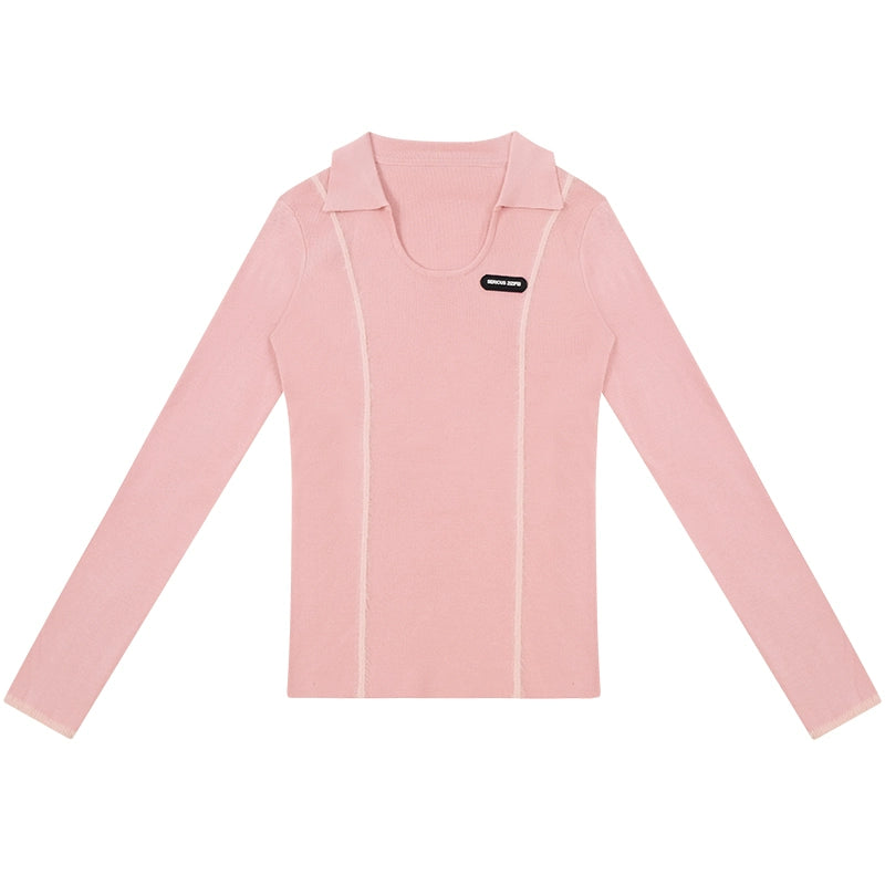 Retro Polo U-Neck Long Sleeve Knit Top | Slim Fit for Autumn/Winter