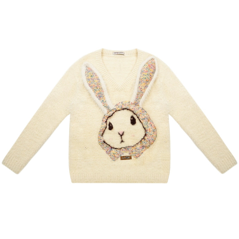 Apricot Rabbit V-neck Sweater | Soft Waxy Retro Knit Vest for Autumn/Winter