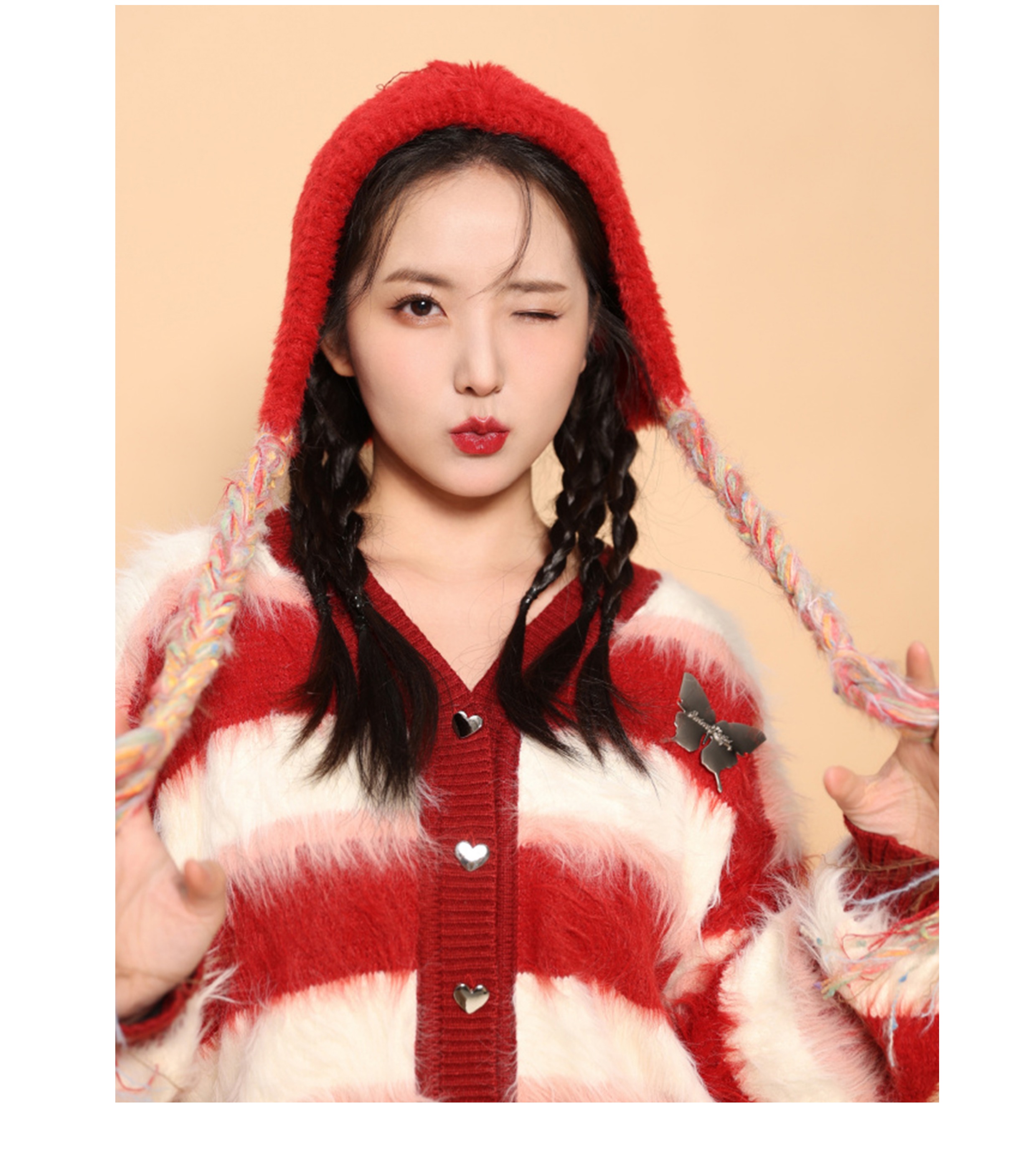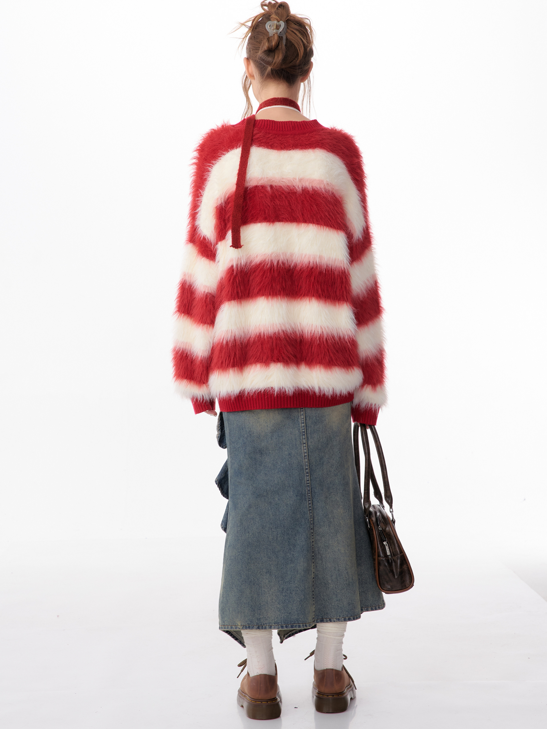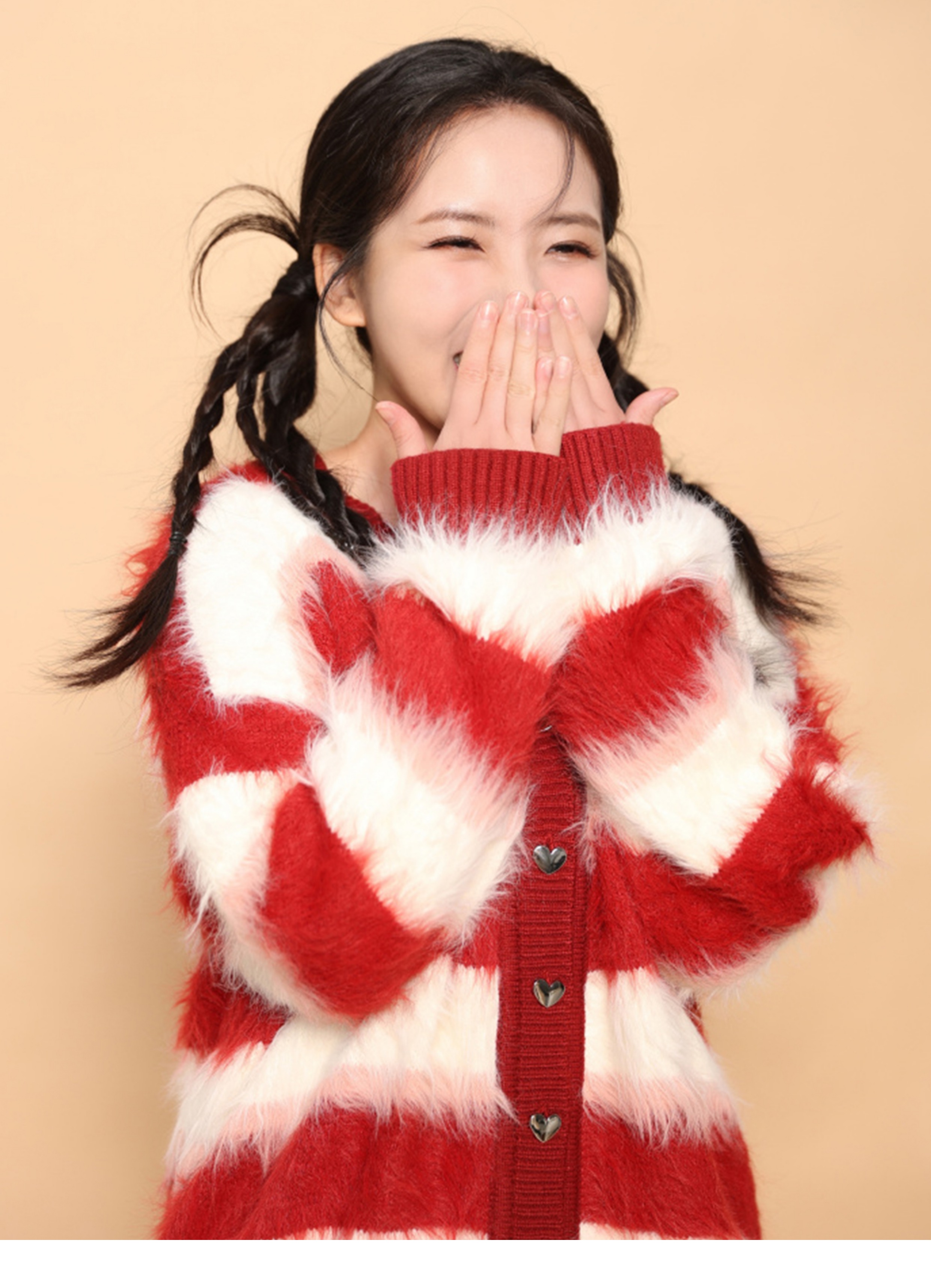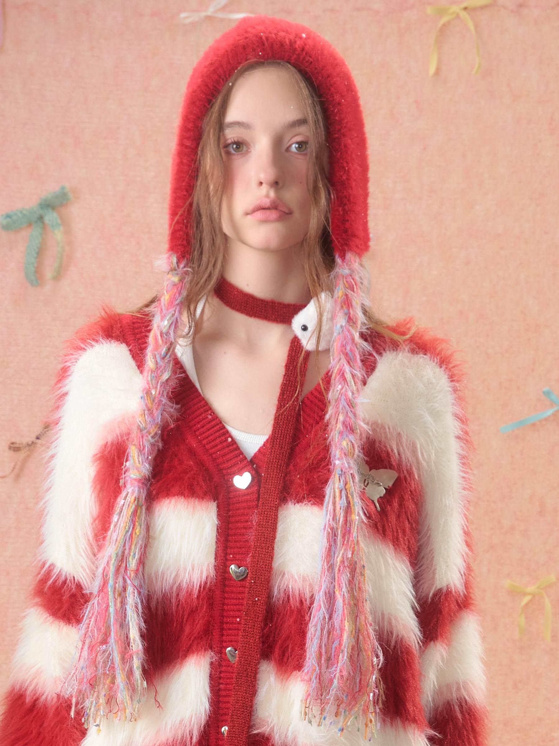 Red Christmas Stripe Knitted Sweater | Soft Thick New Year’s Open Cardigan for Autumn/Winter