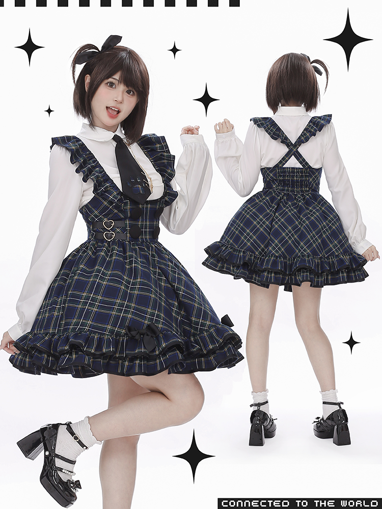 Bear Don't Mess With Cats: Retro College Vest Skirt + Shirt Set