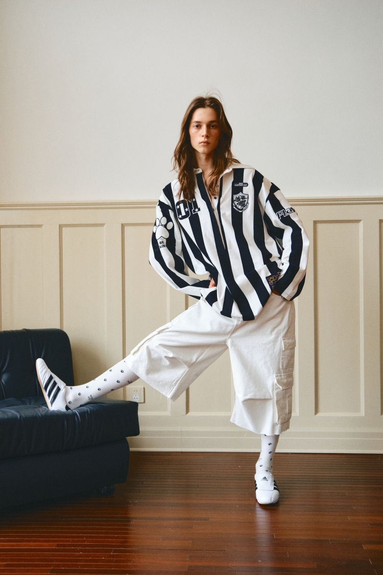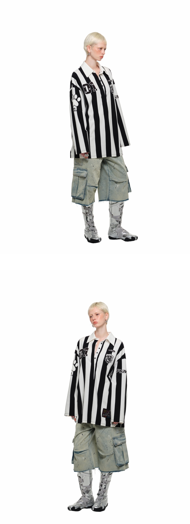 Black & White Polo Collar Jersey Shirt Jacket – Loose Fit Long Sleeve Top