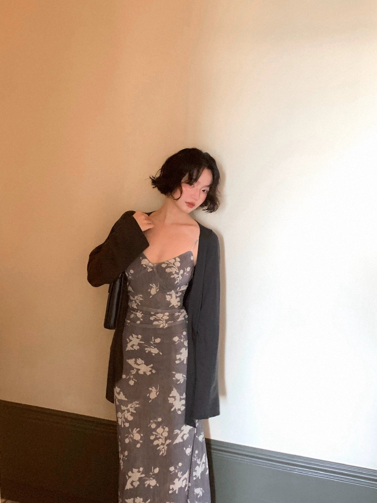 Blooming Flowers Printed V-Neck Suspender Dress – Hong Kong Retro Autumn