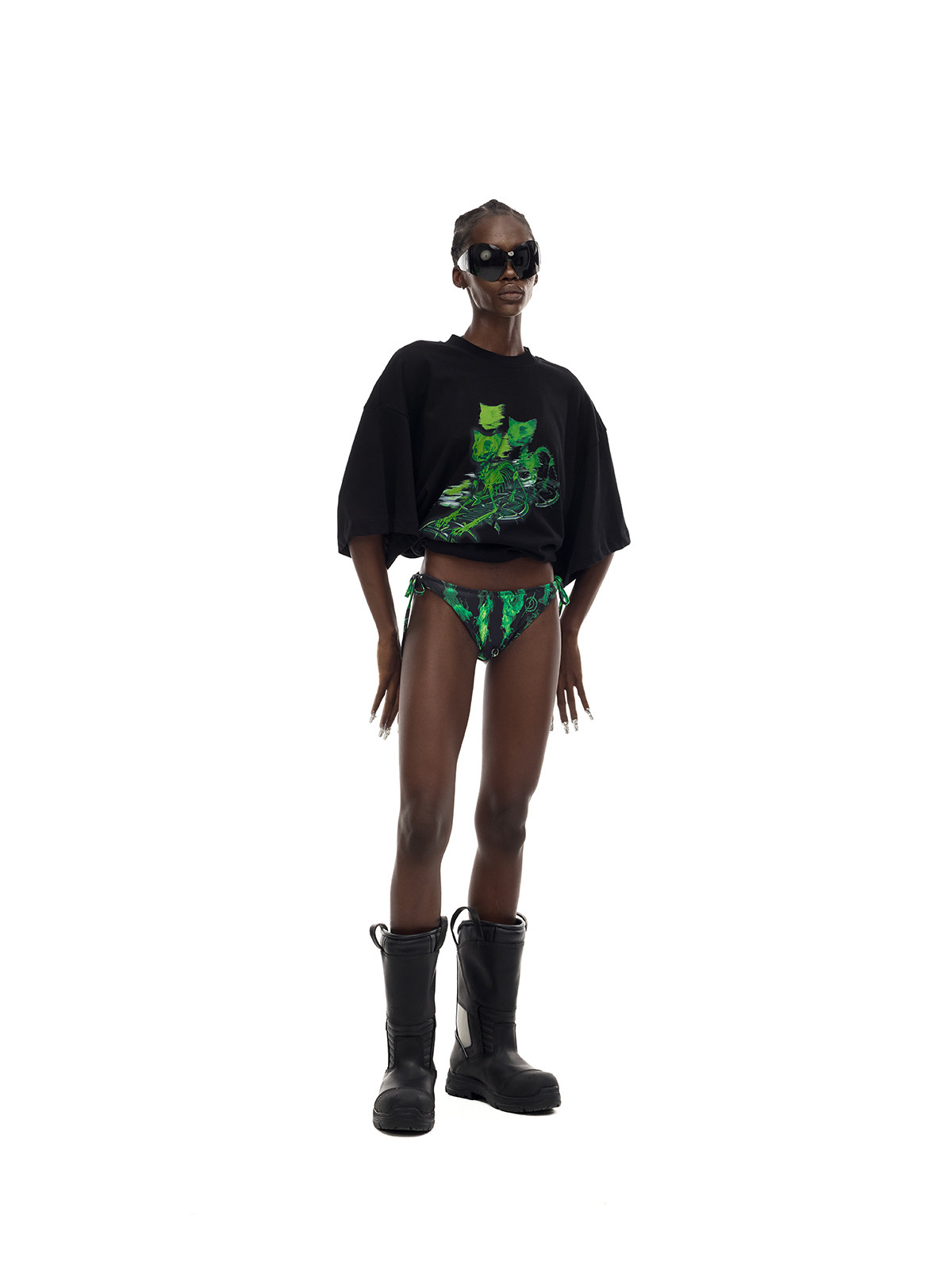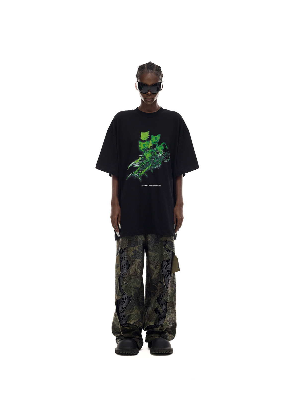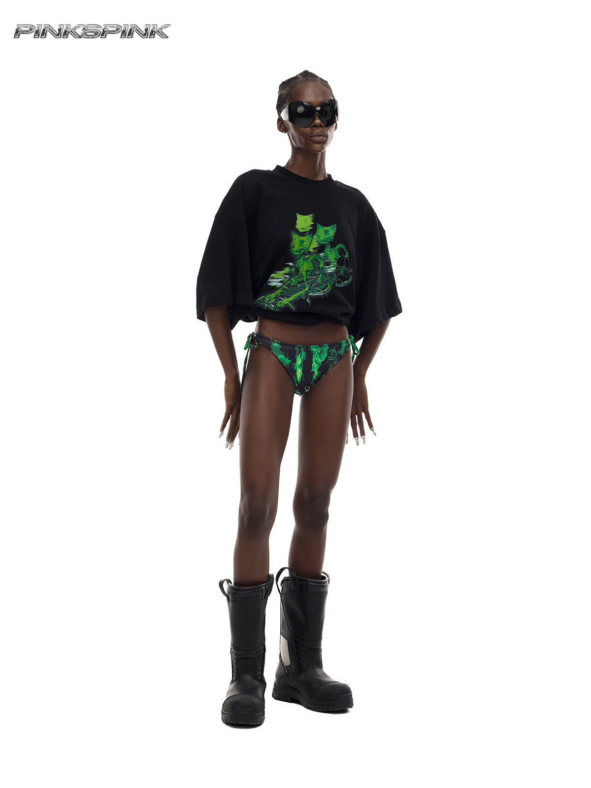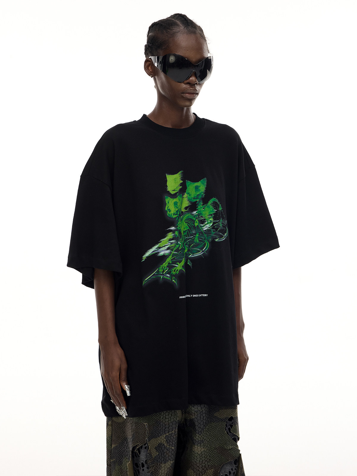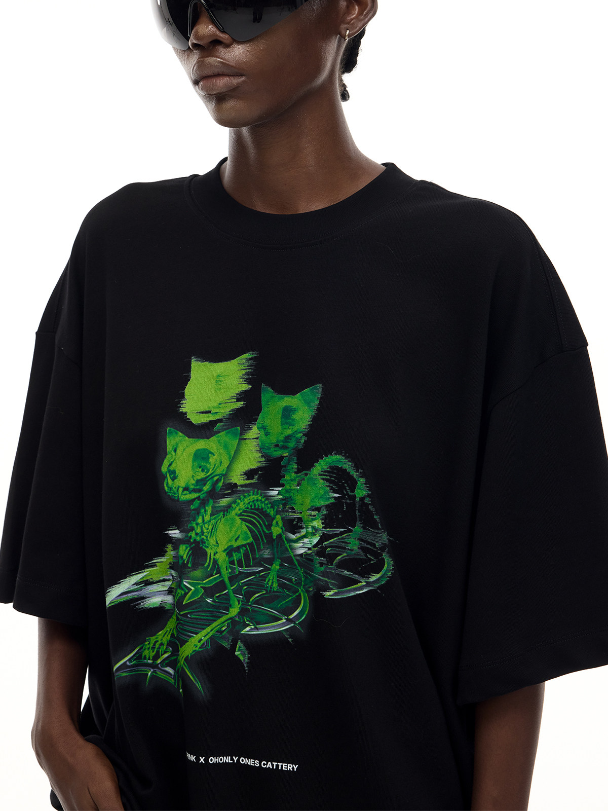 Cat Skeleton Space Capsule Graphic Y2K Tee