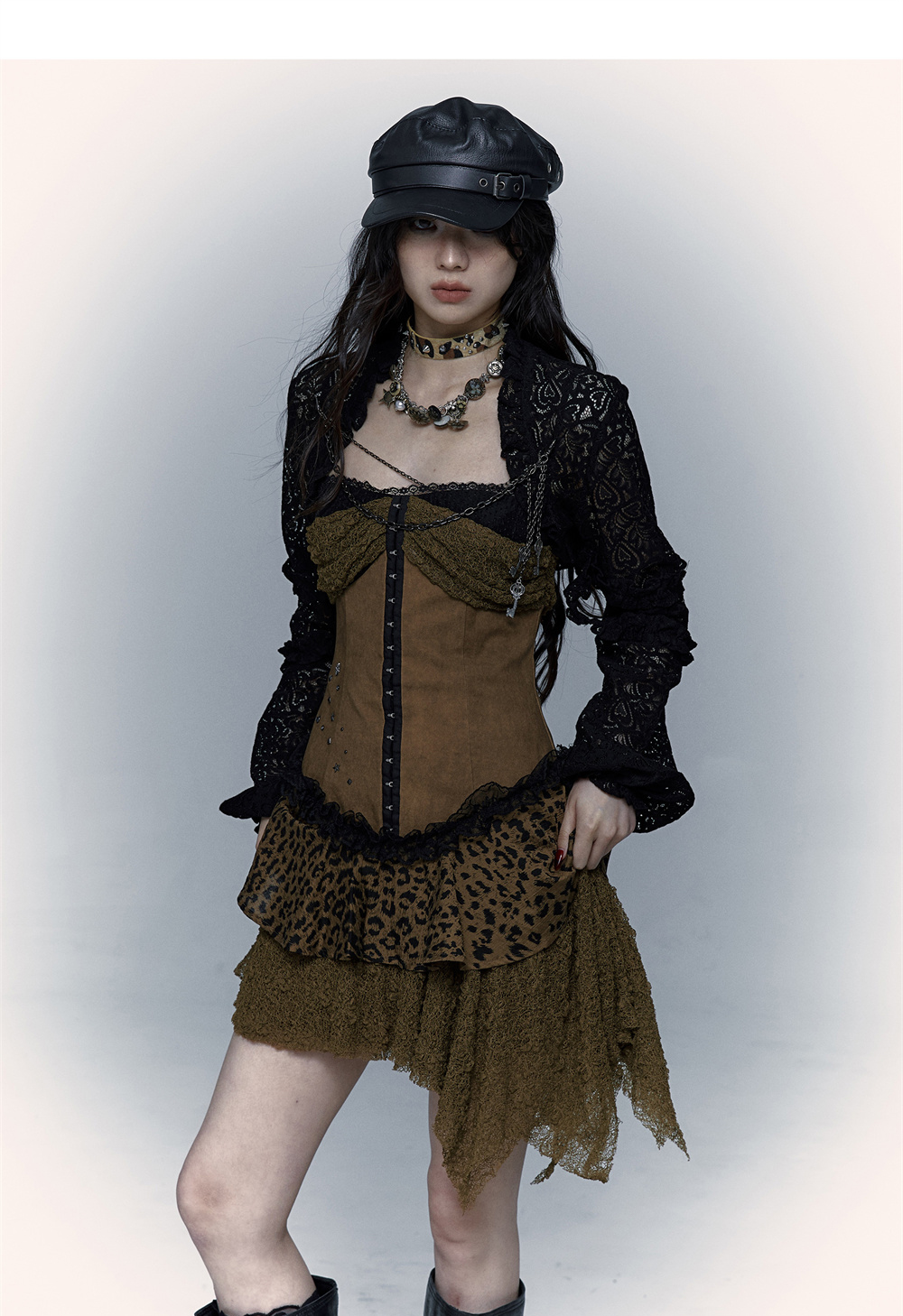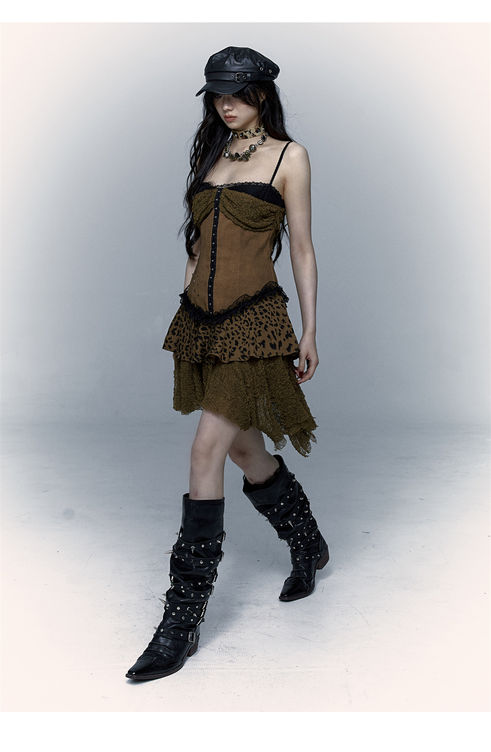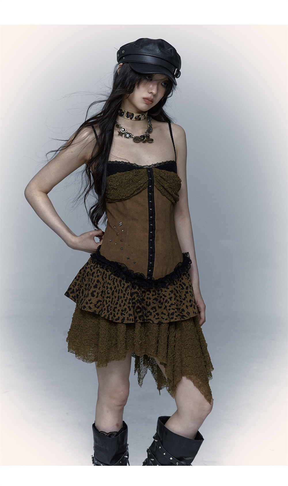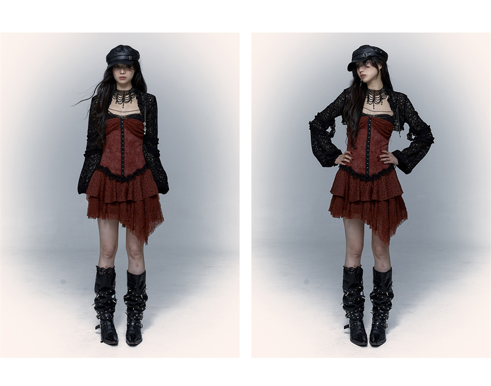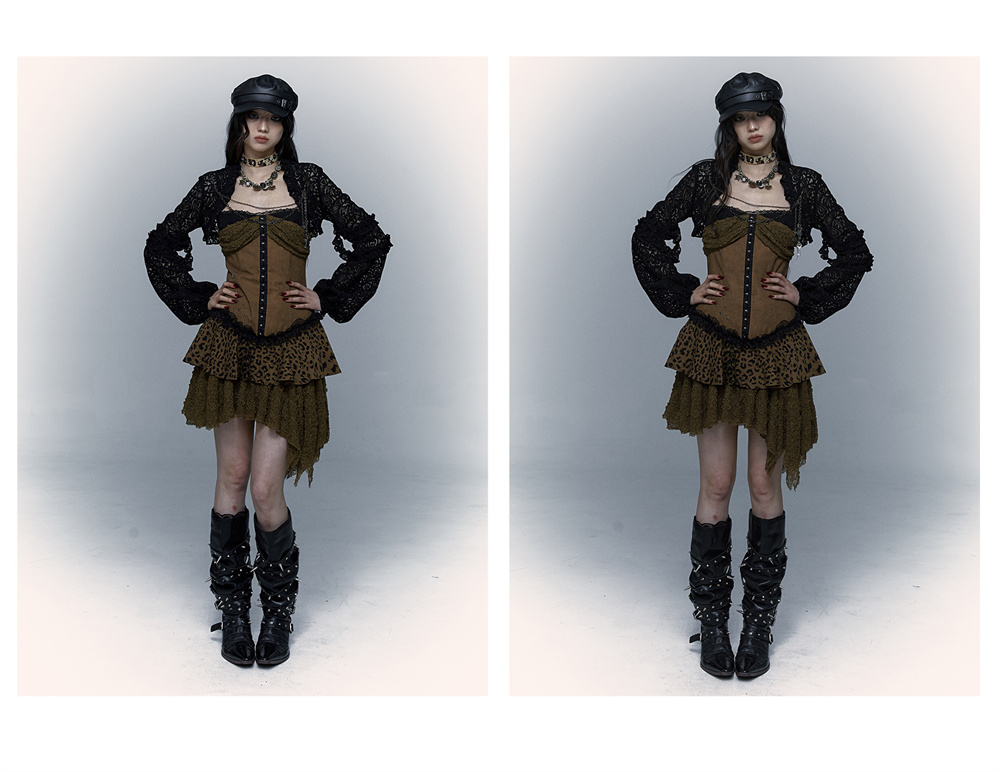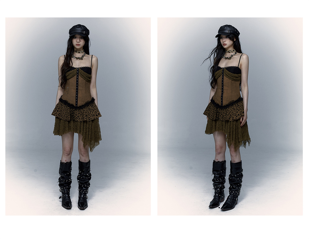 Lace Leopard Print Suspender Dress | Slim Fit Dark Punk Style