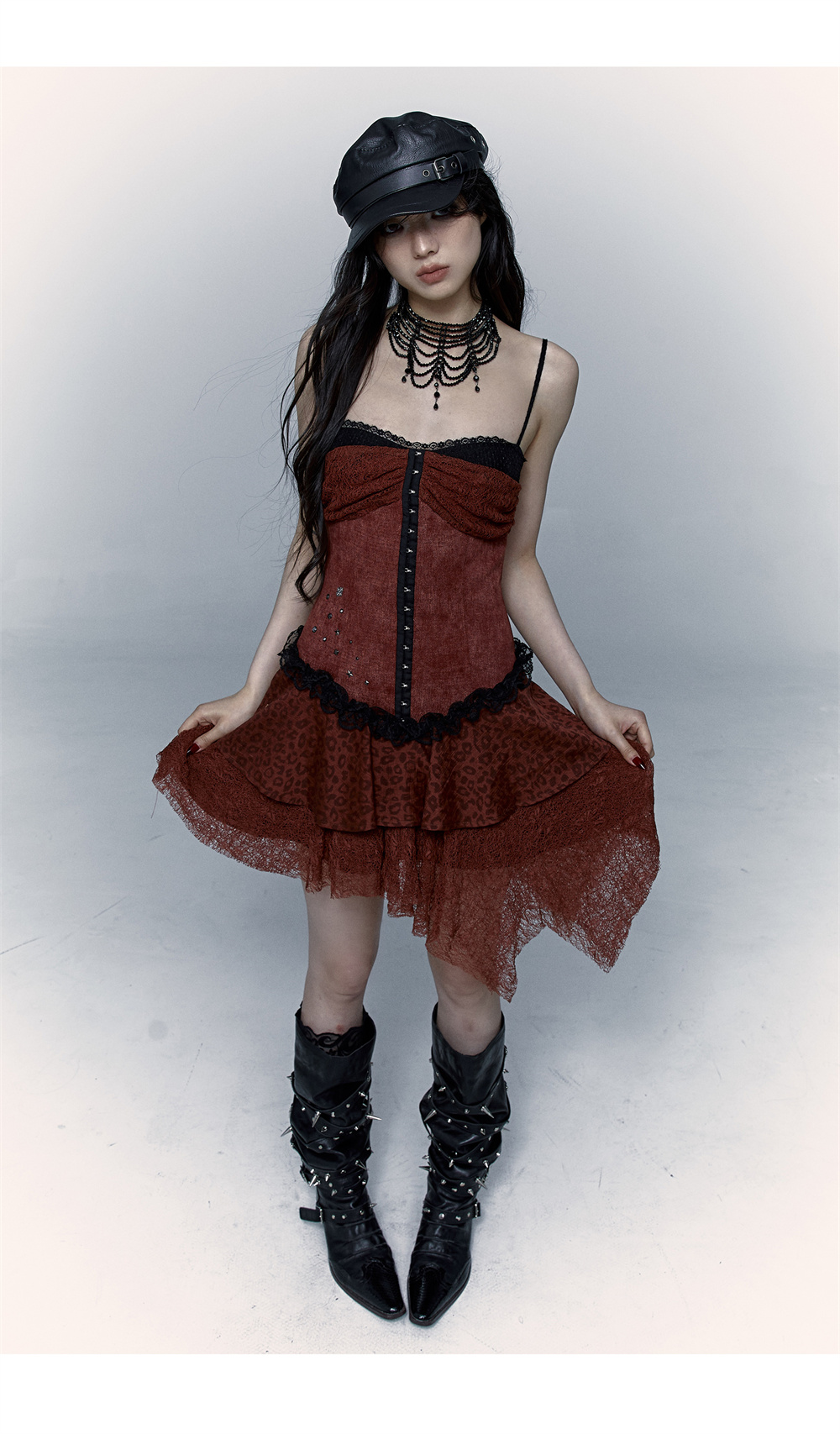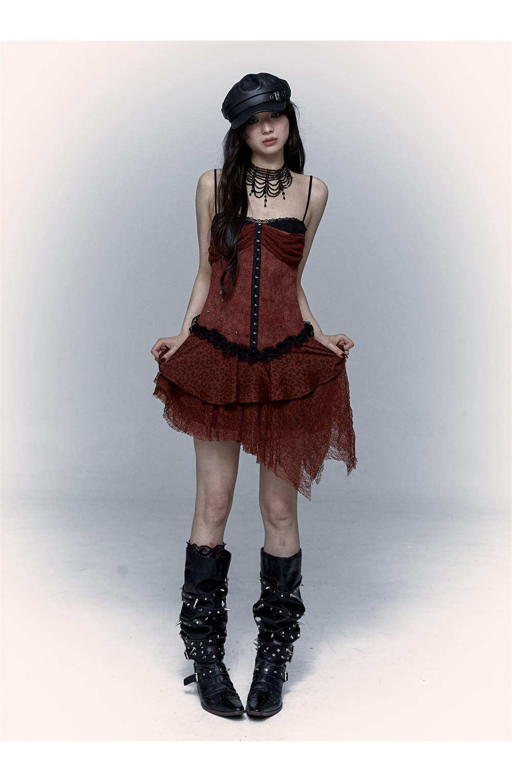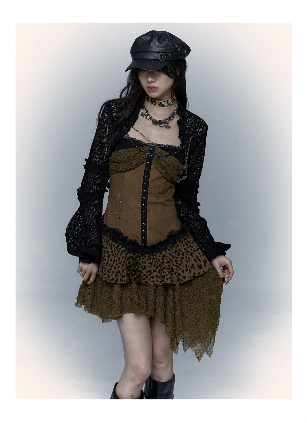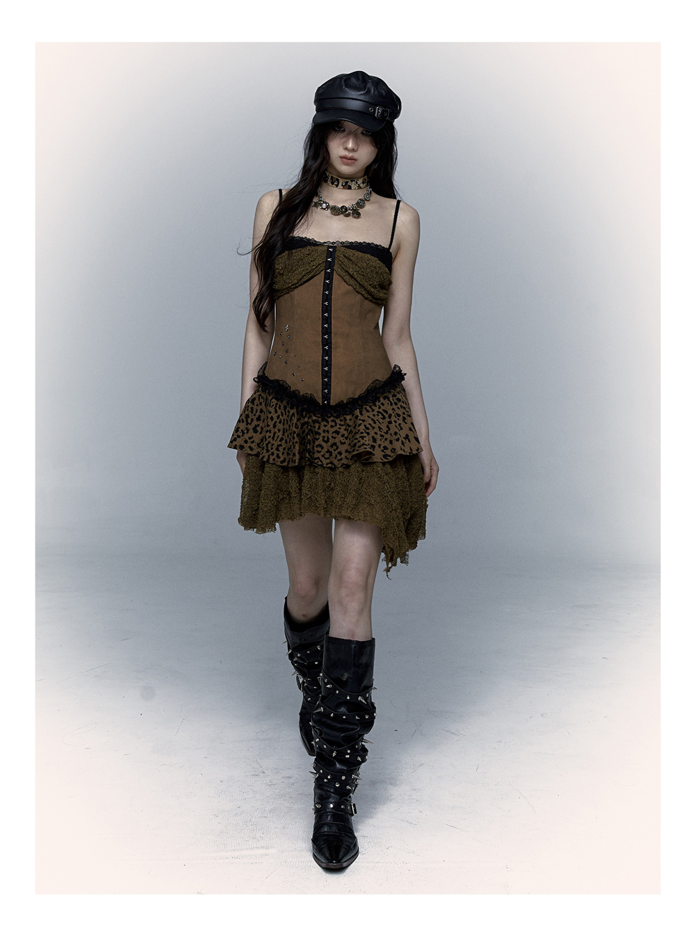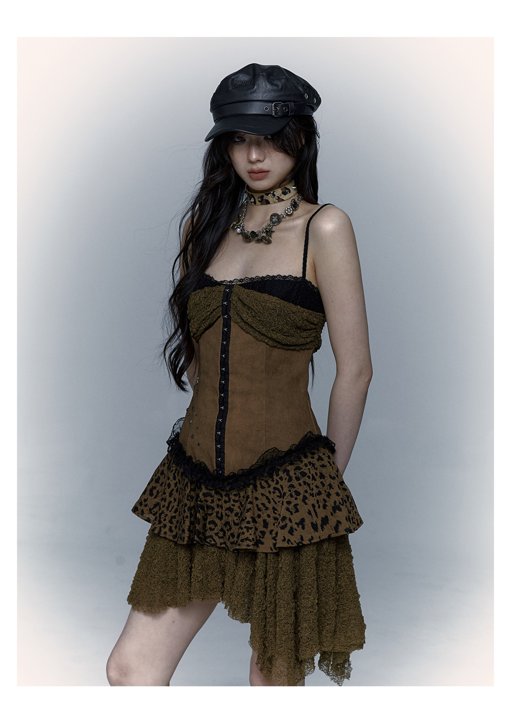 Lace Leopard Print Suspender Dress | Slim Fit Dark Punk Style
