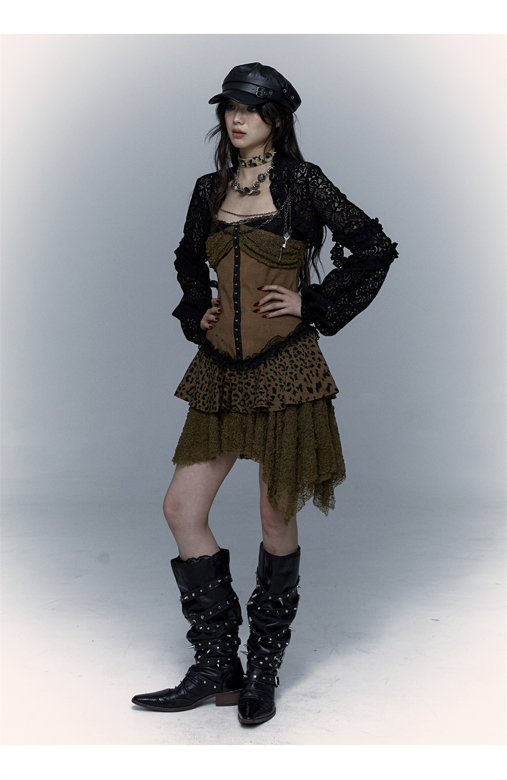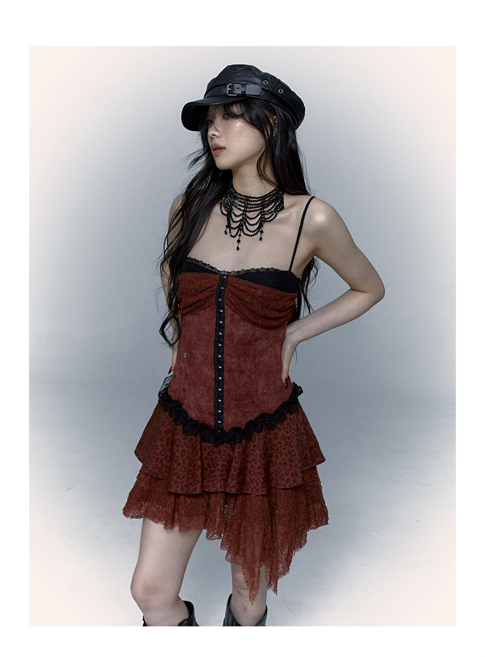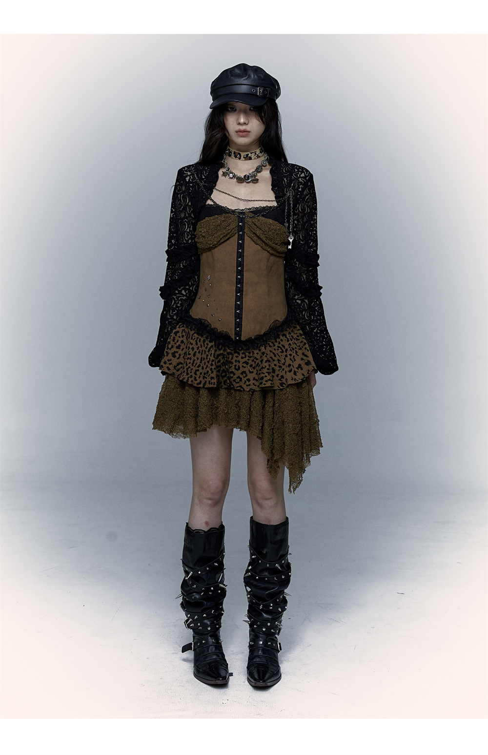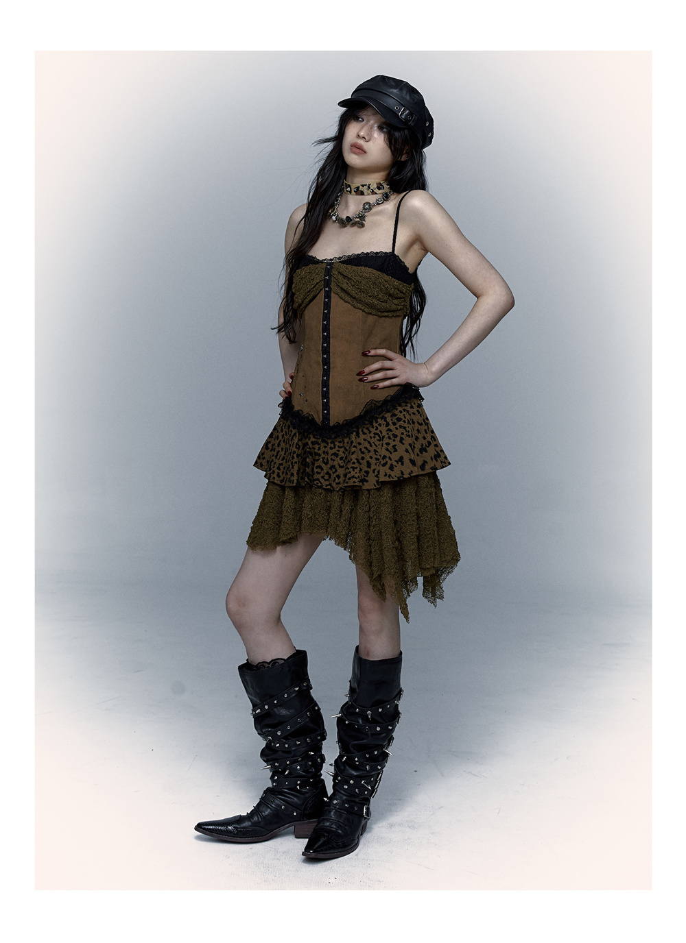 Lace Leopard Print Suspender Dress | Slim Fit Dark Punk Style