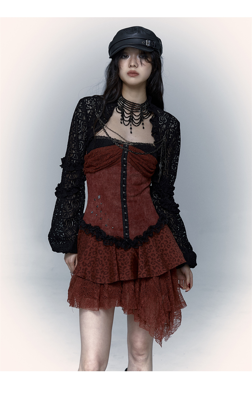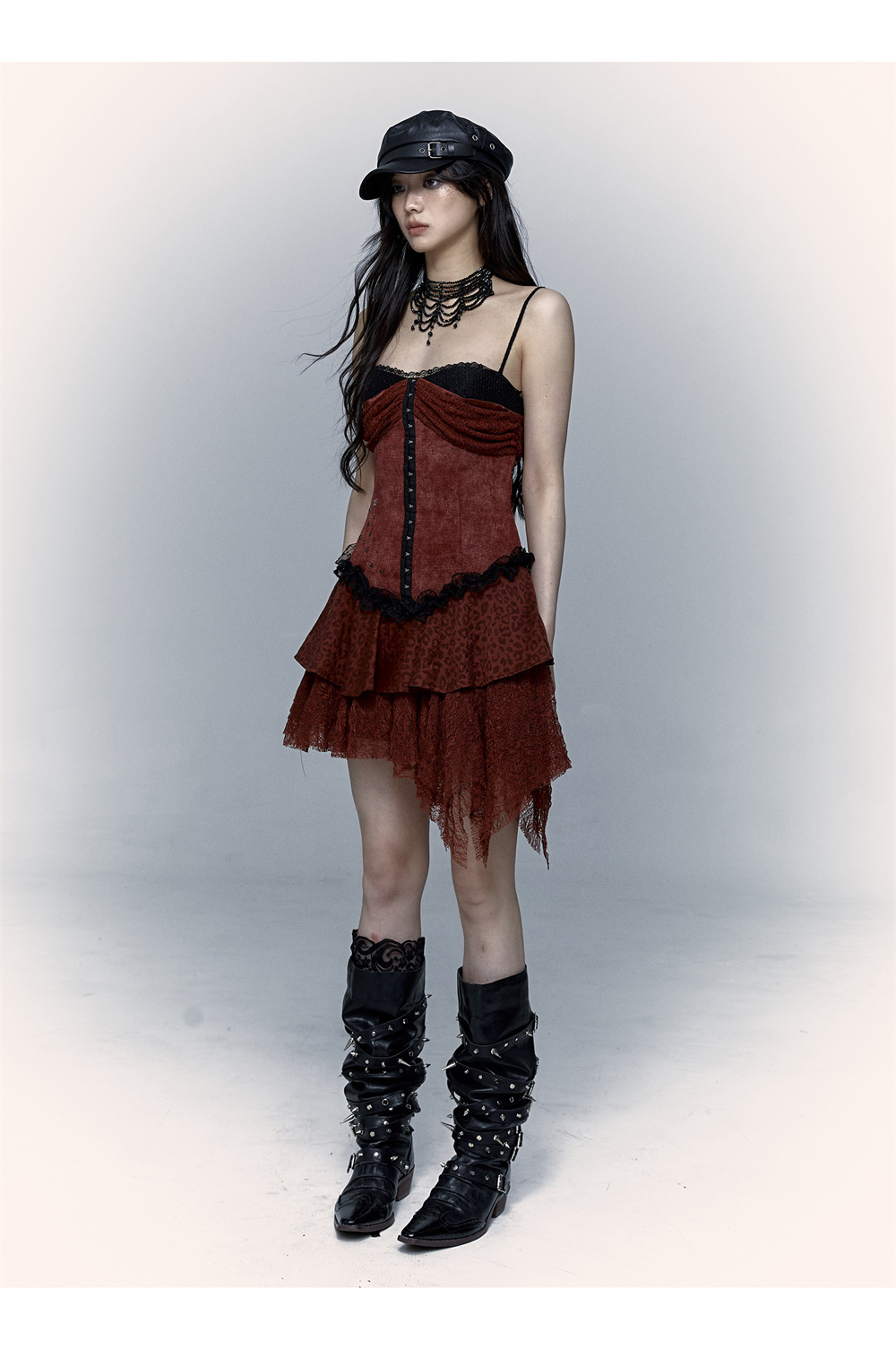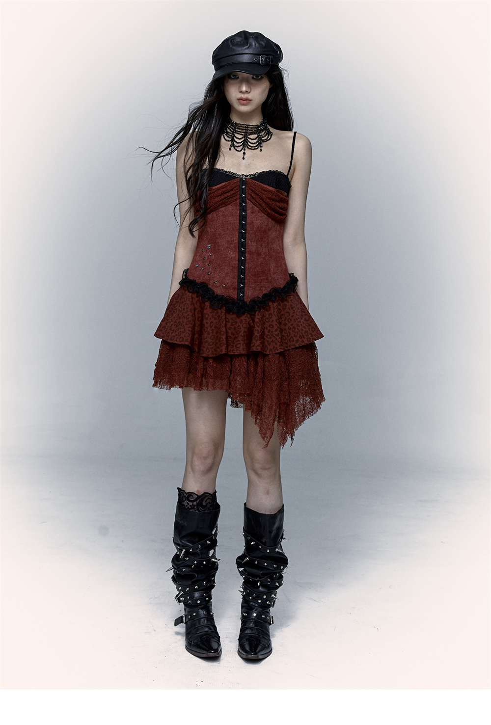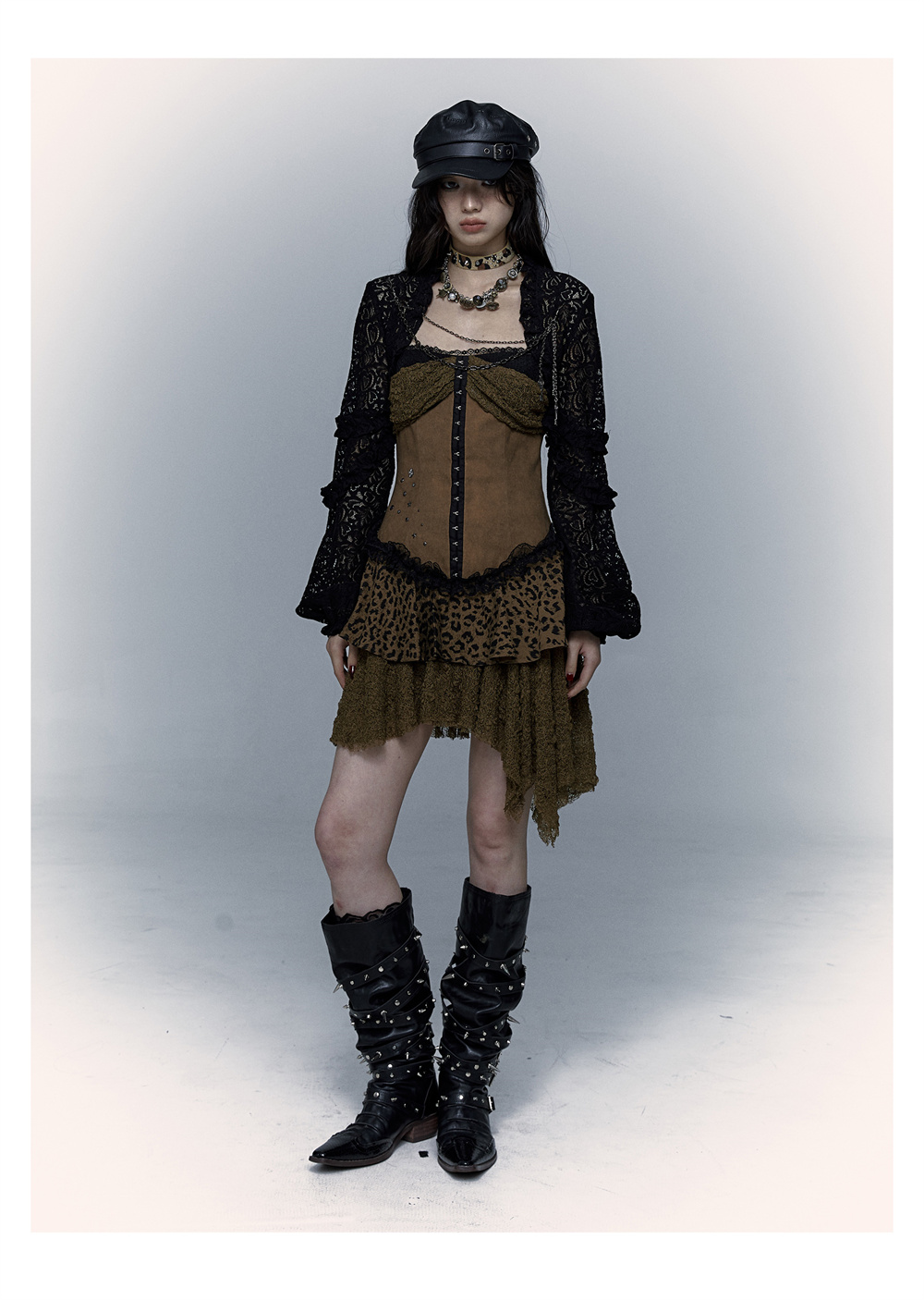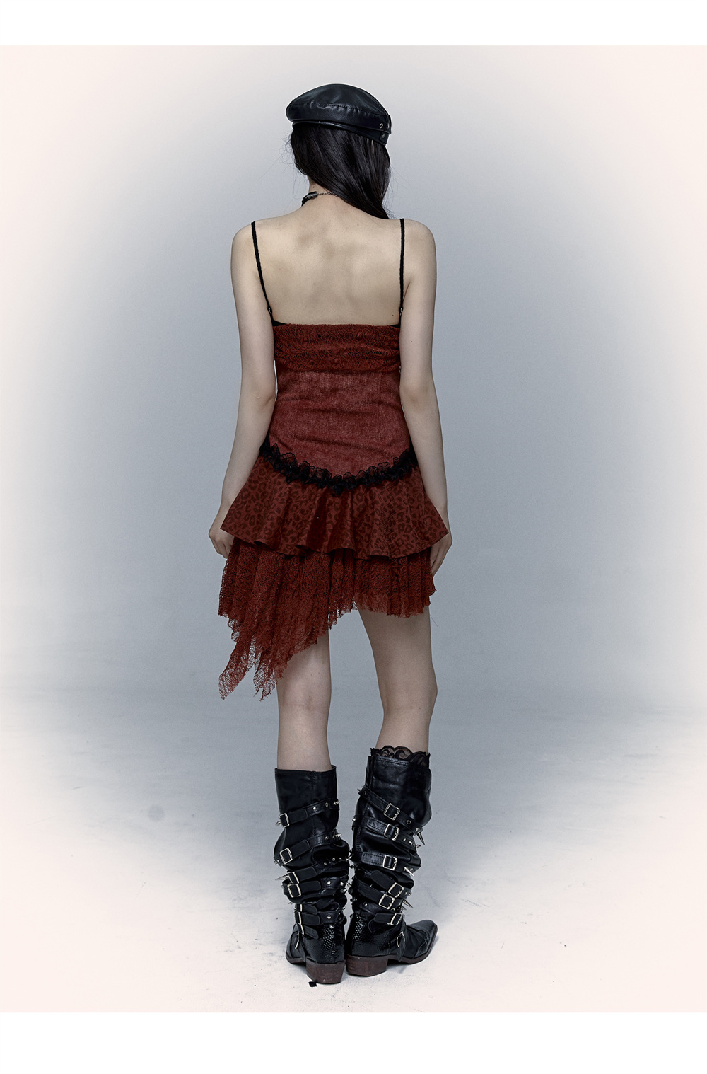 Lace Leopard Print Suspender Dress | Slim Fit Dark Punk Style