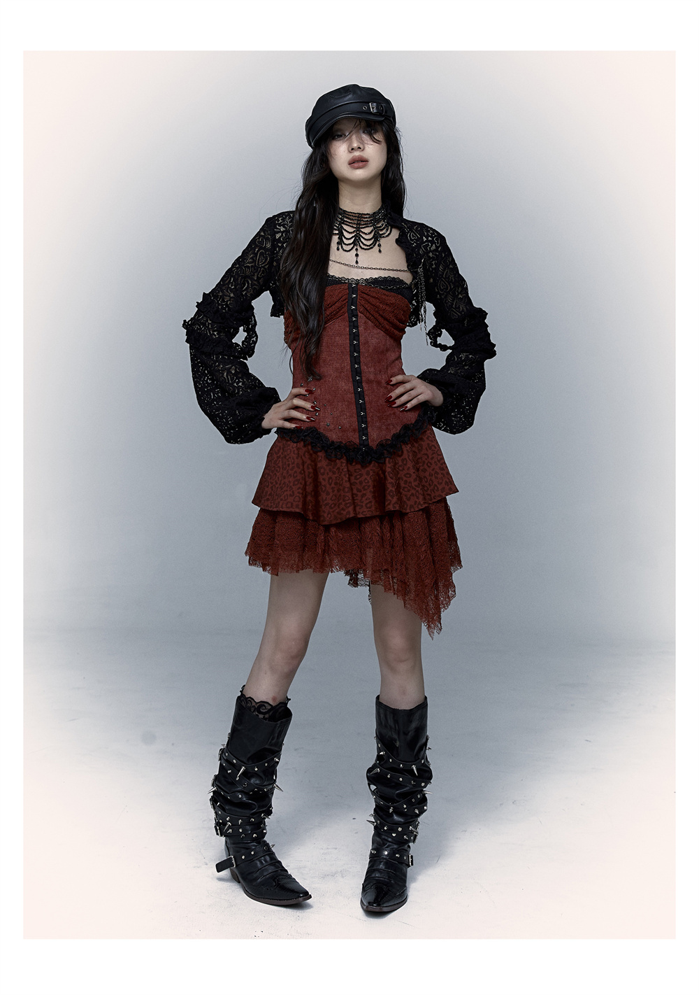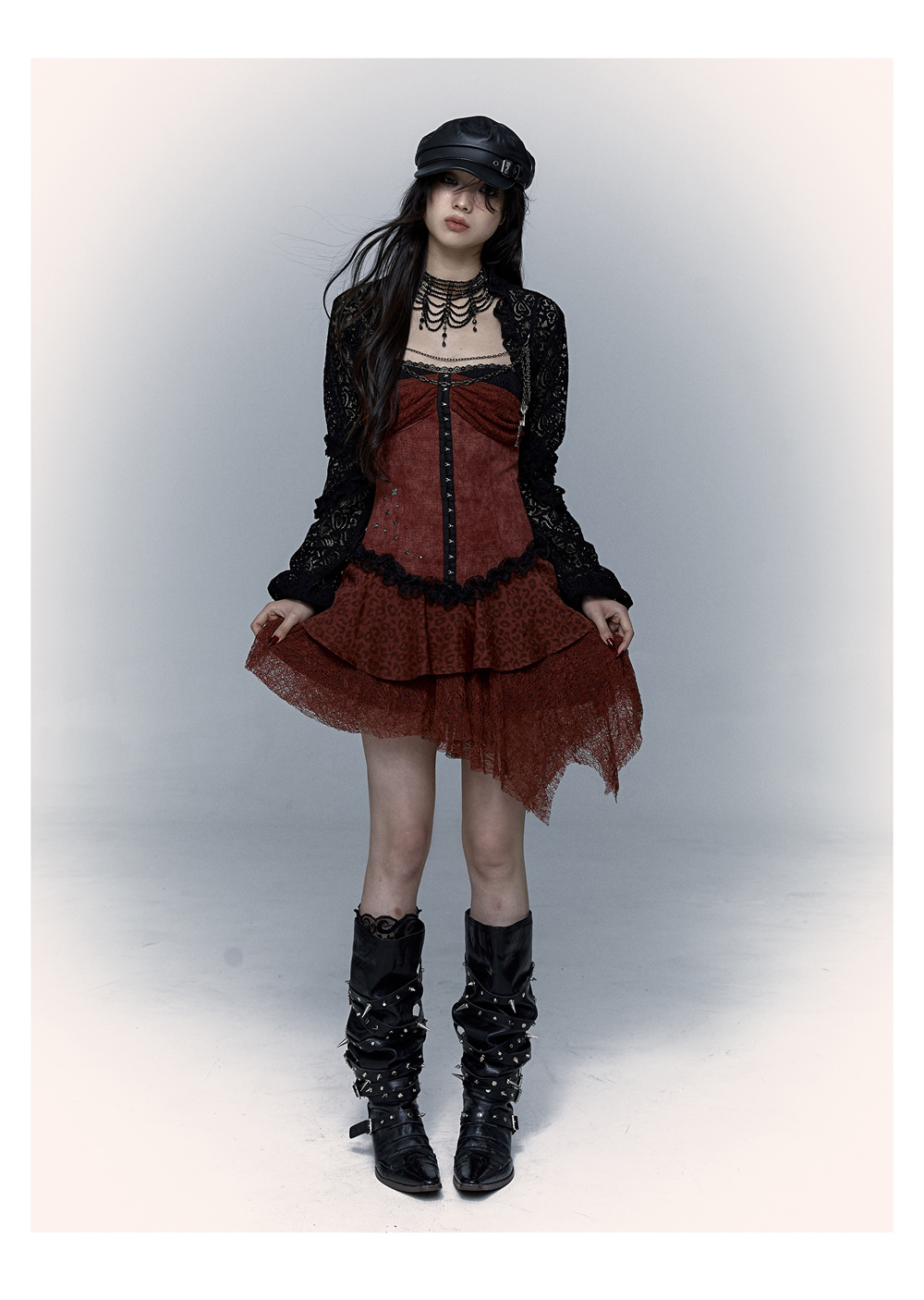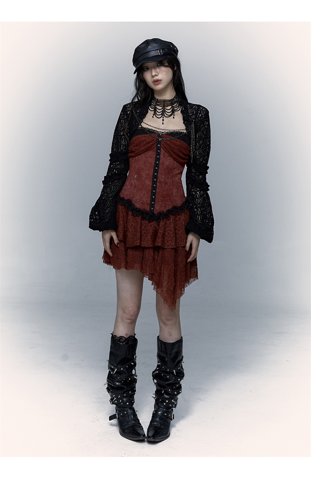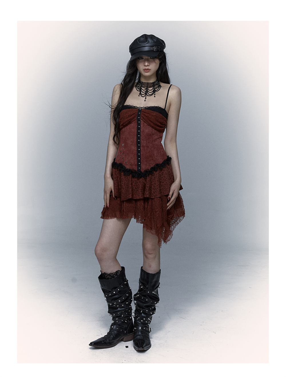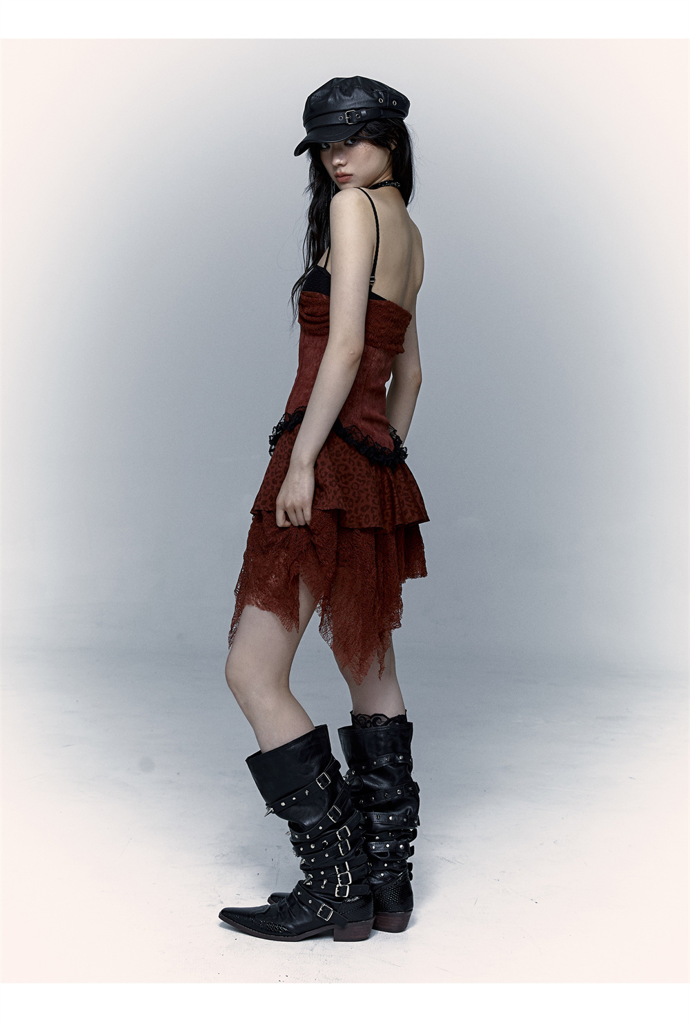 Lace Leopard Print Suspender Dress | Slim Fit Dark Punk Style