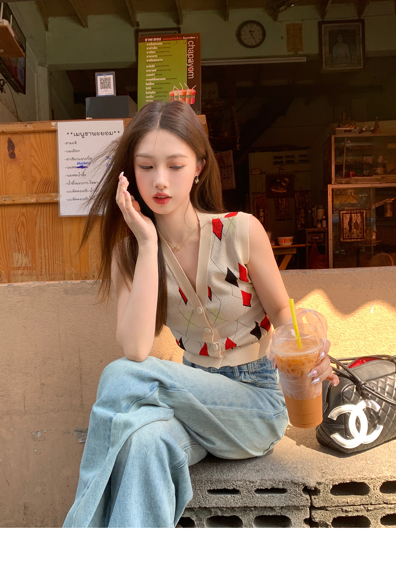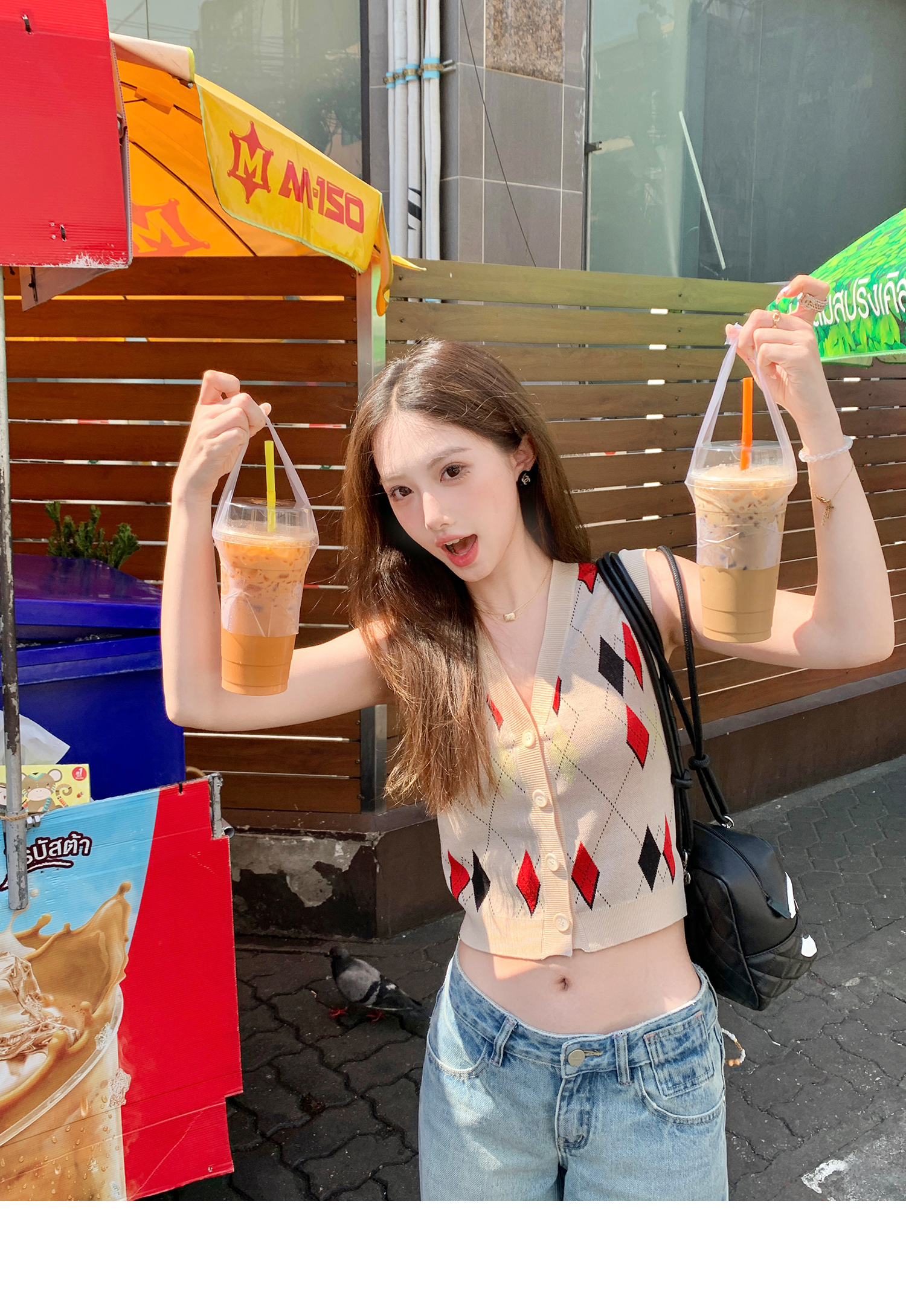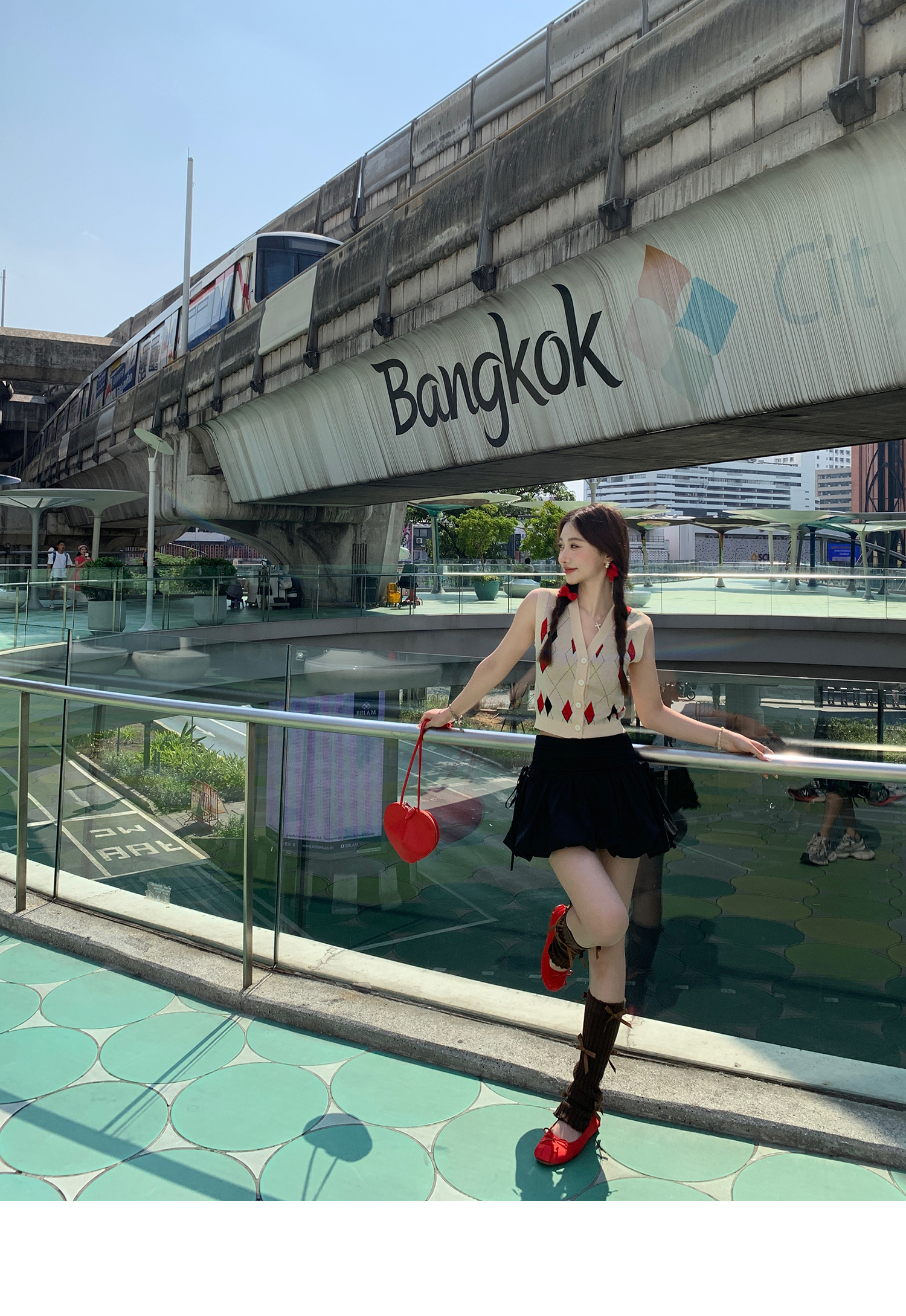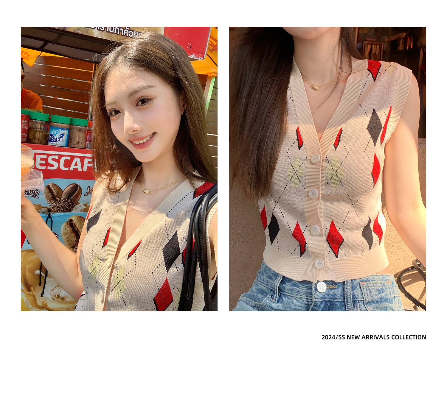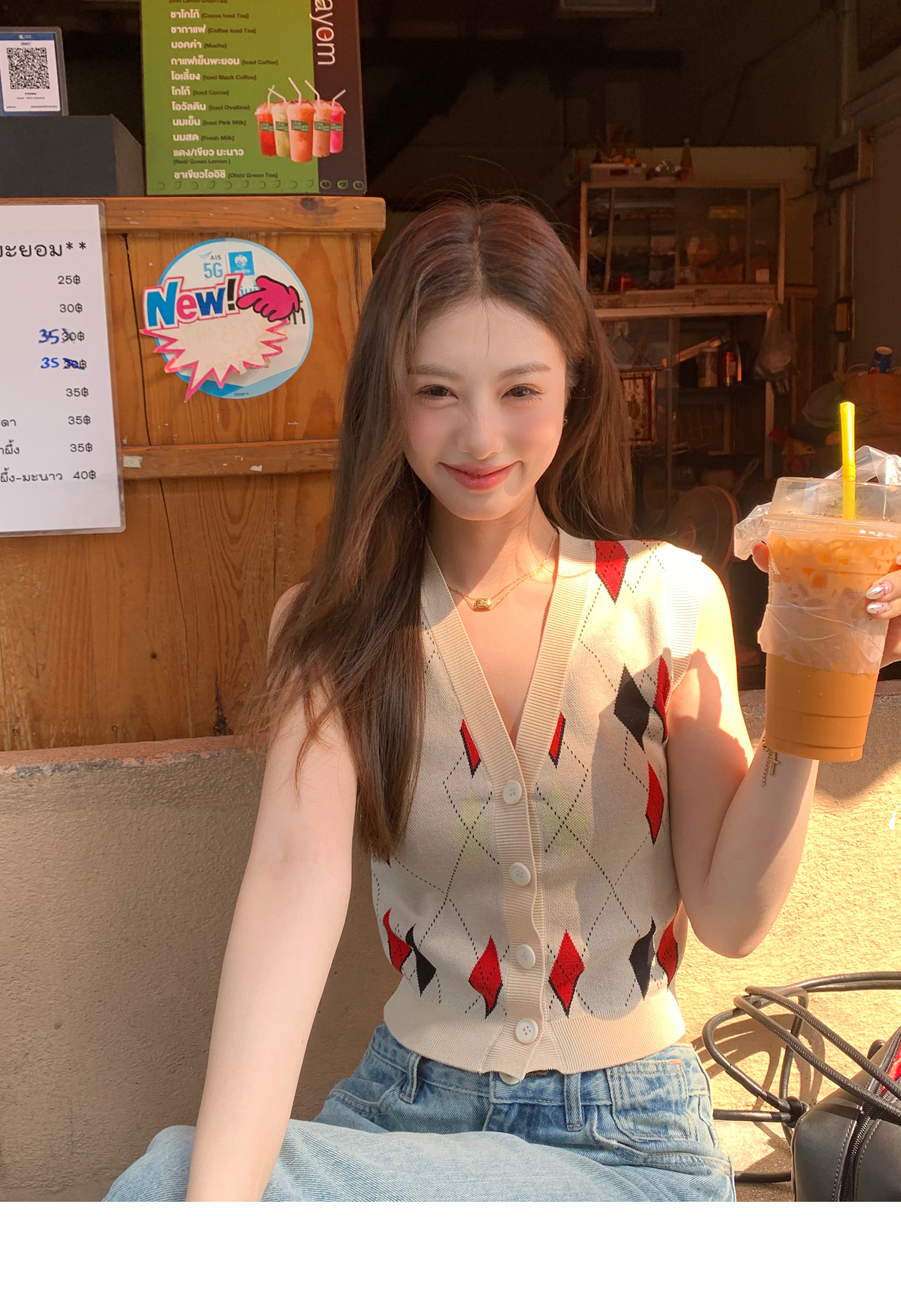 [Dorothy Encounter] Sleeveless Diamond Checkered Tank Top - Summer Style