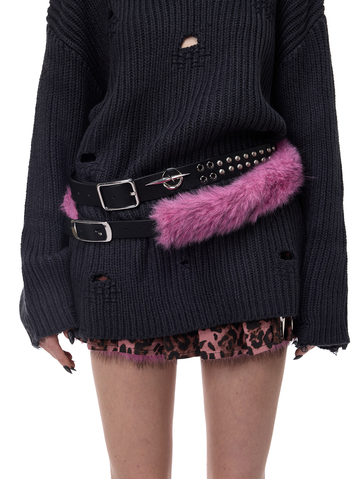 Double-Strap Black Metal Studded Y2K Leather Belt – Rock Punk Style