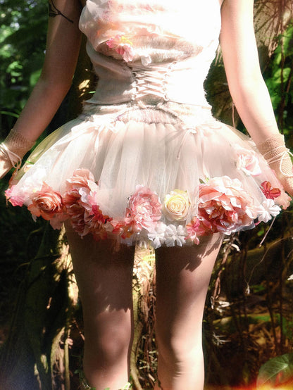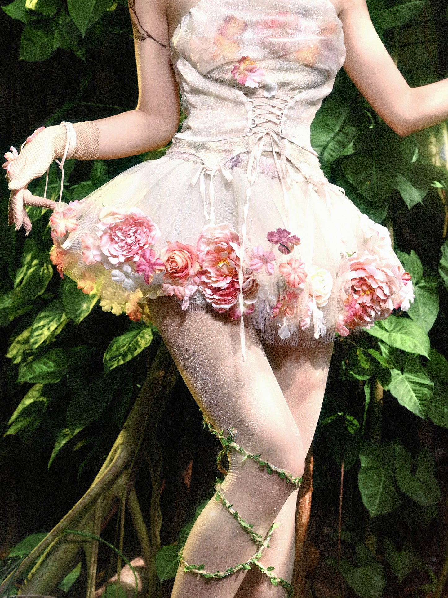 Forest Spirit Flower Elf Puffy Skirt – 3D Floral Fairy Culottes