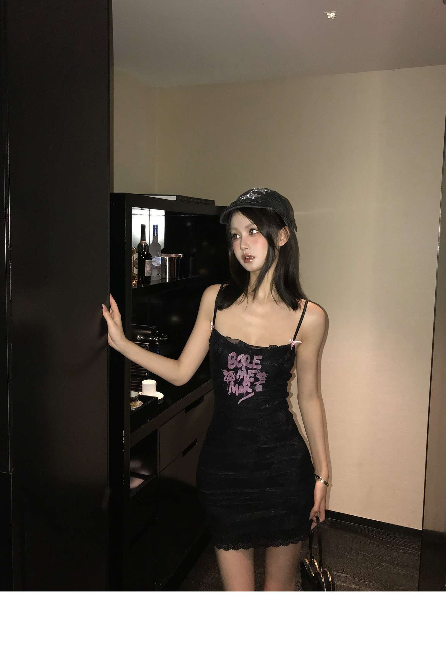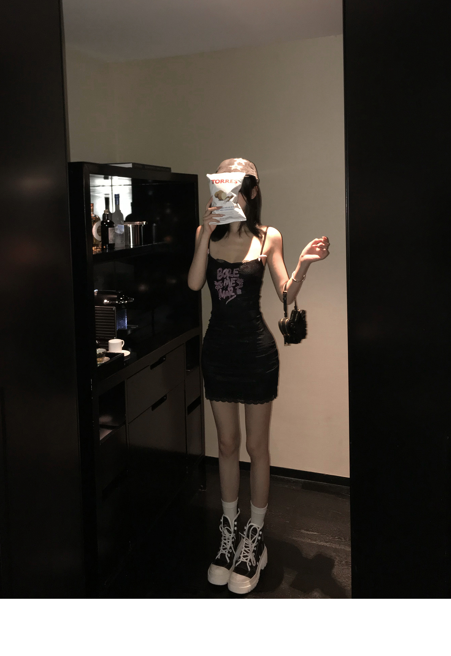[Gothic Seattle] Black Slim Fit Hip-Hugging Spicy Girl Camisole Dress