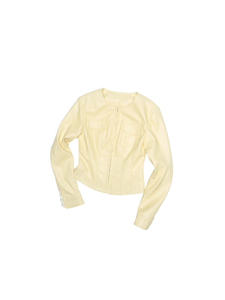 Hook-Neck Cropped Faux Leather Jacket – Slim Fit Hottie Cardigan