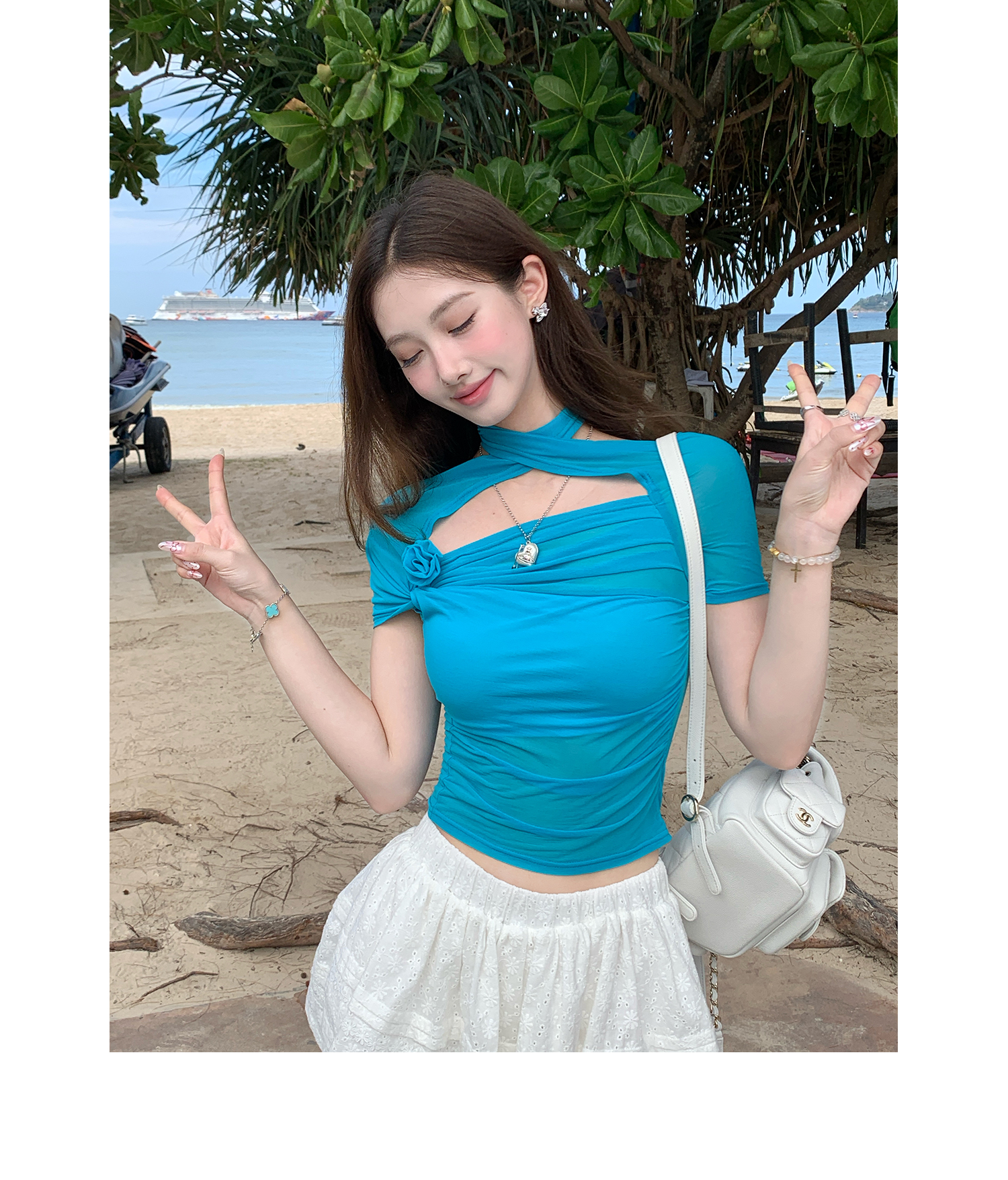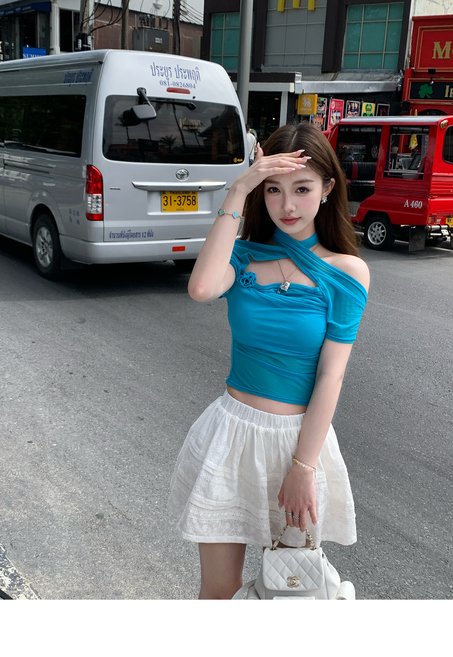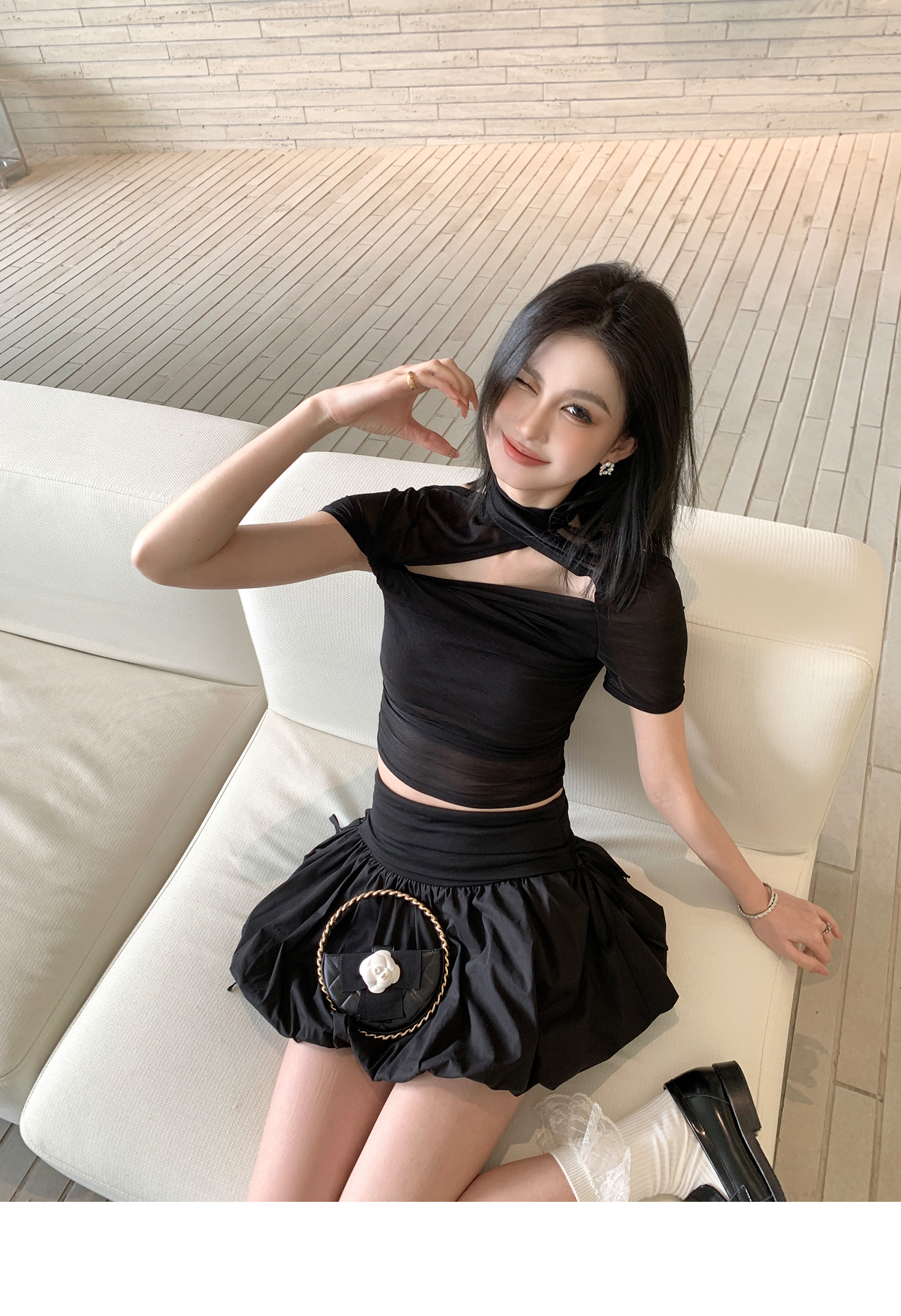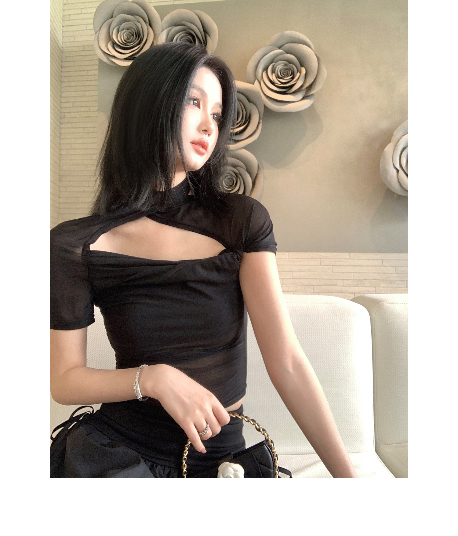 [Hot Girl Signal] Asymmetric Twisted Hollow Long-Sleeve T-Shirt - Summer Hot Girl Style