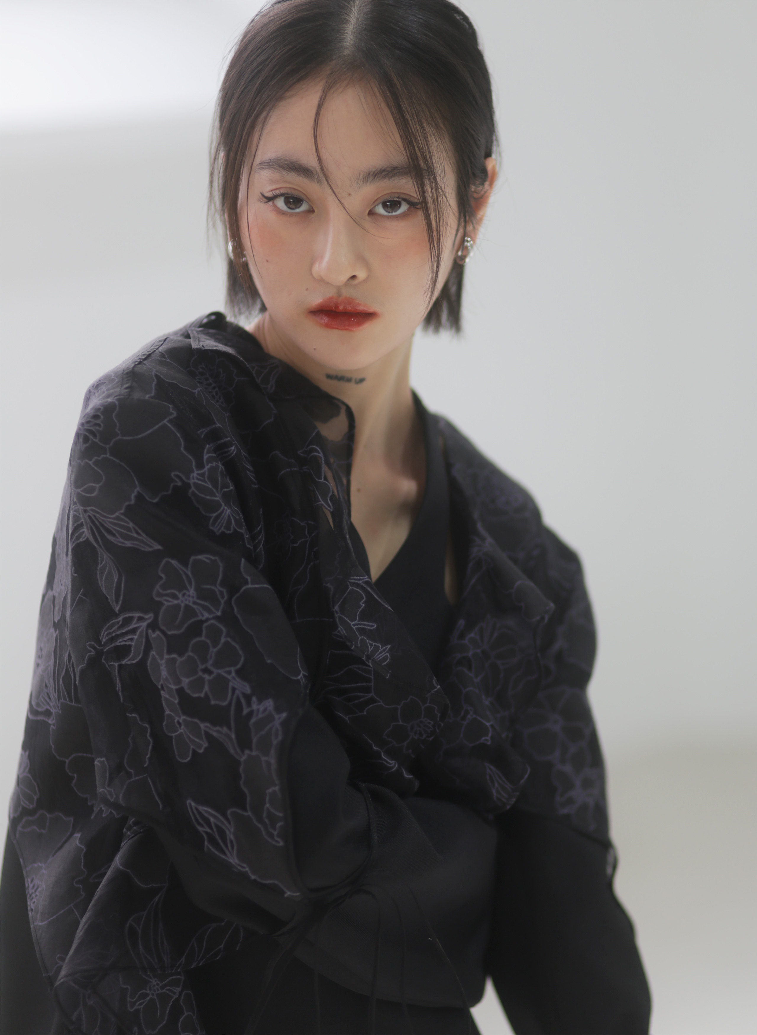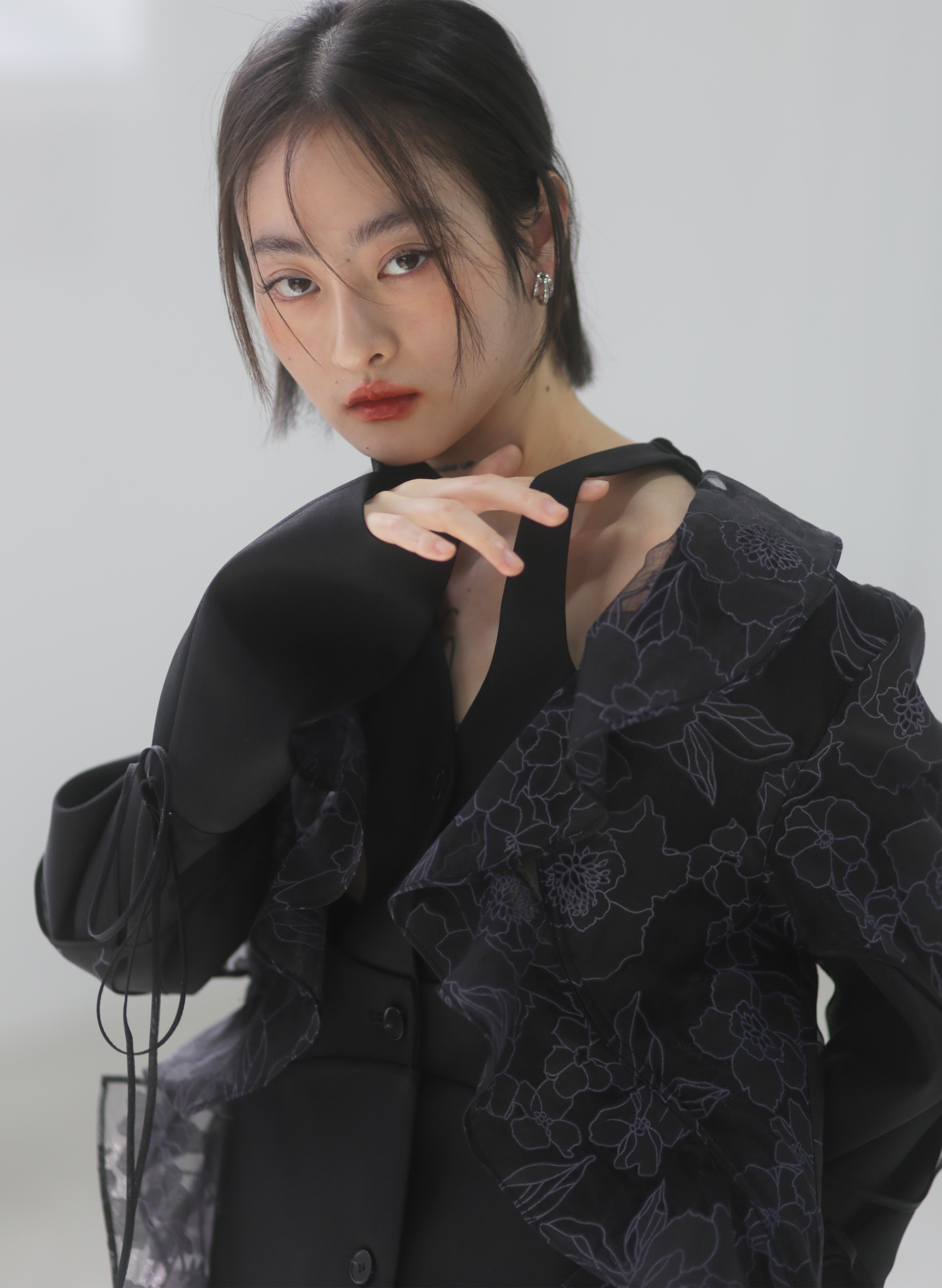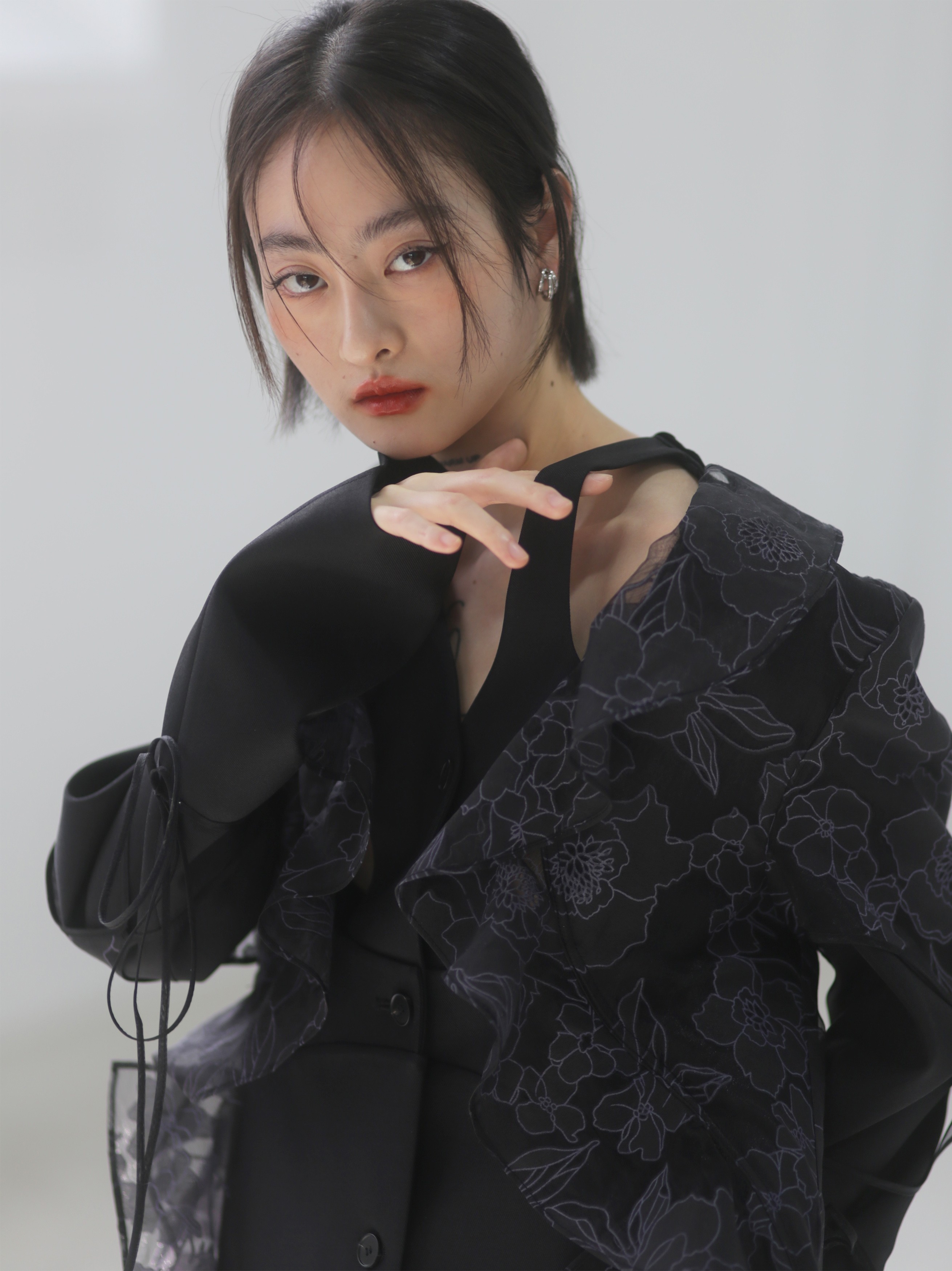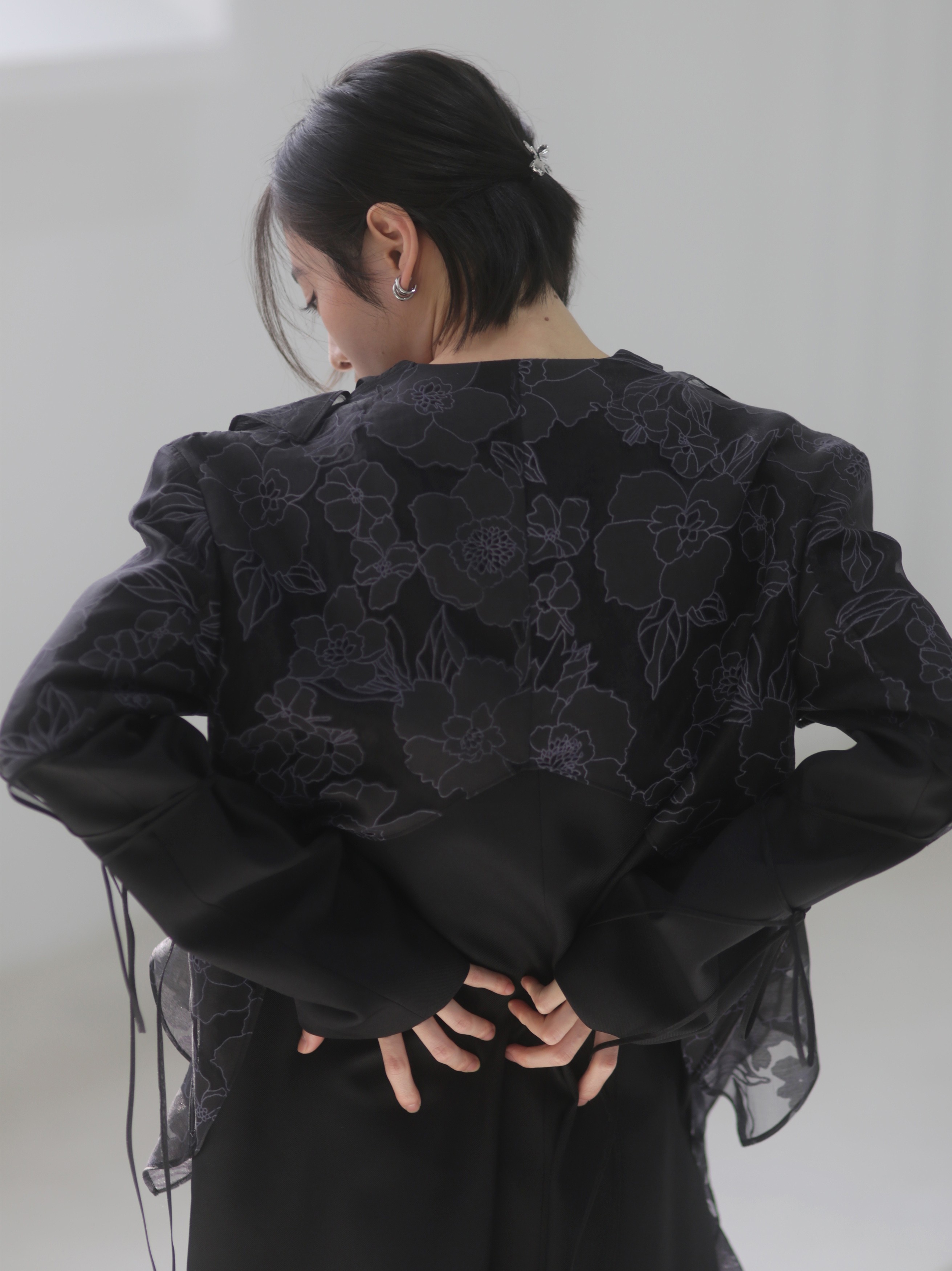 오간자 러플 엣지 패치워크 롱 트렌치코트