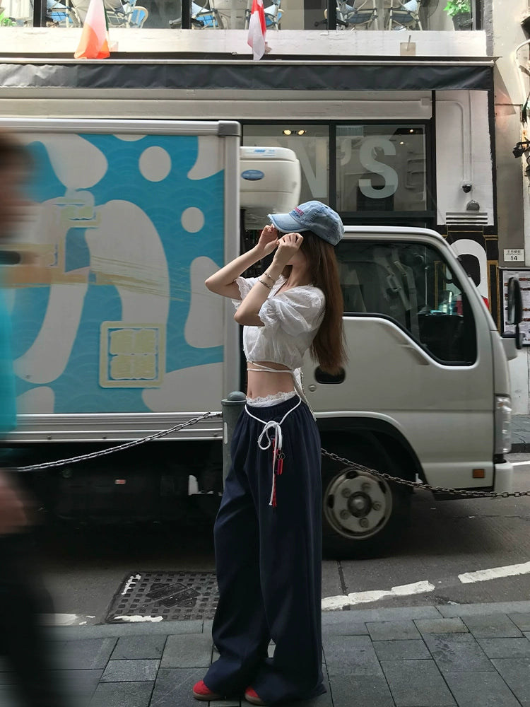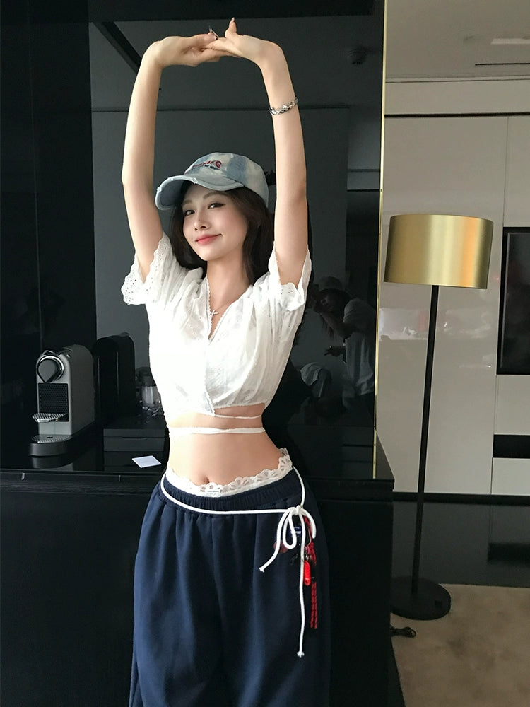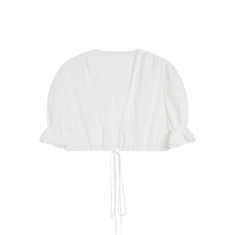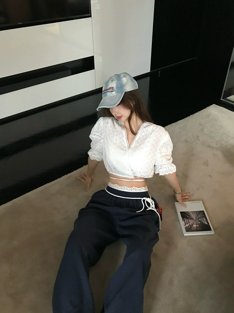 Jennie's French Short-Sleeve Embroidered Blouse Set