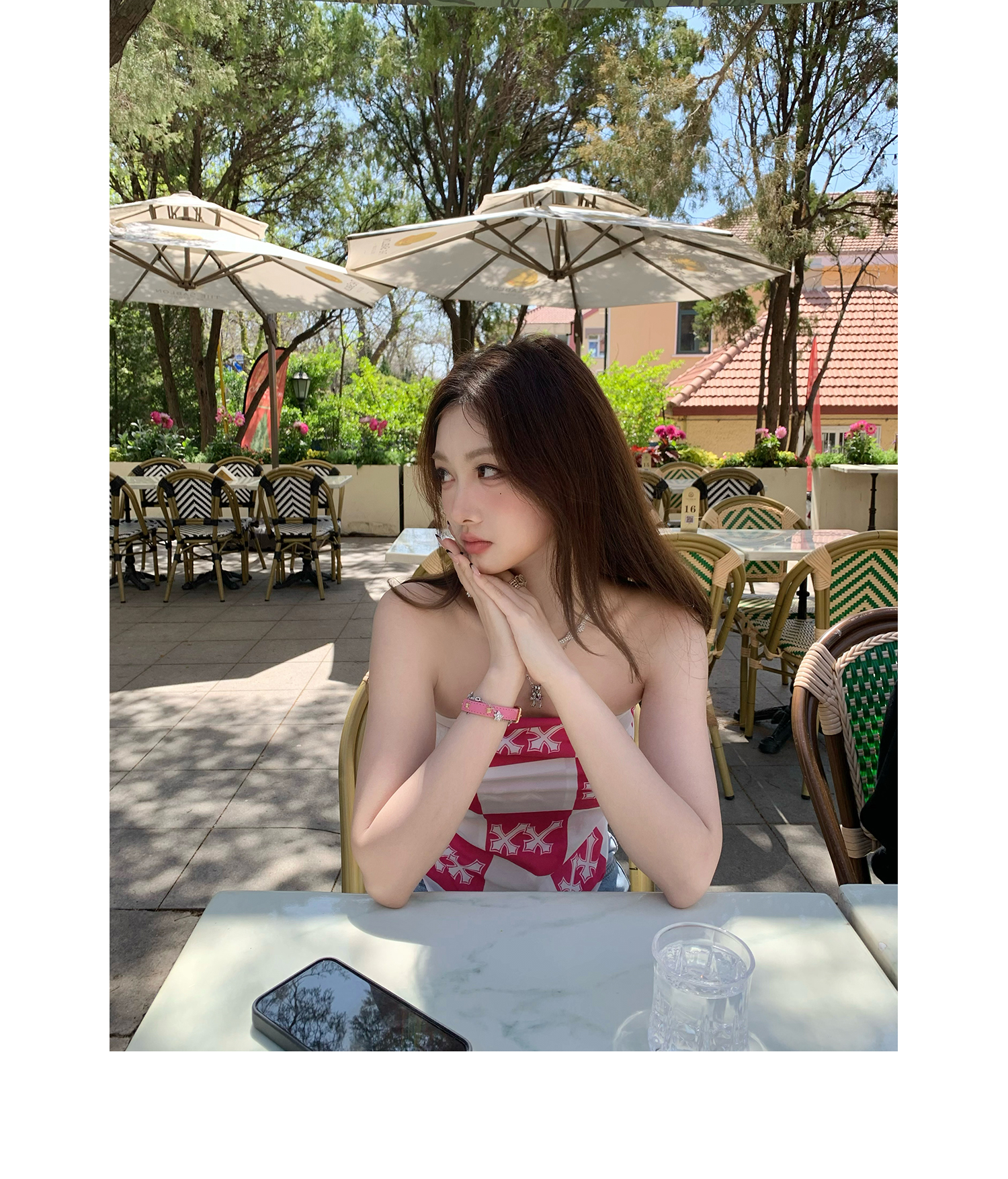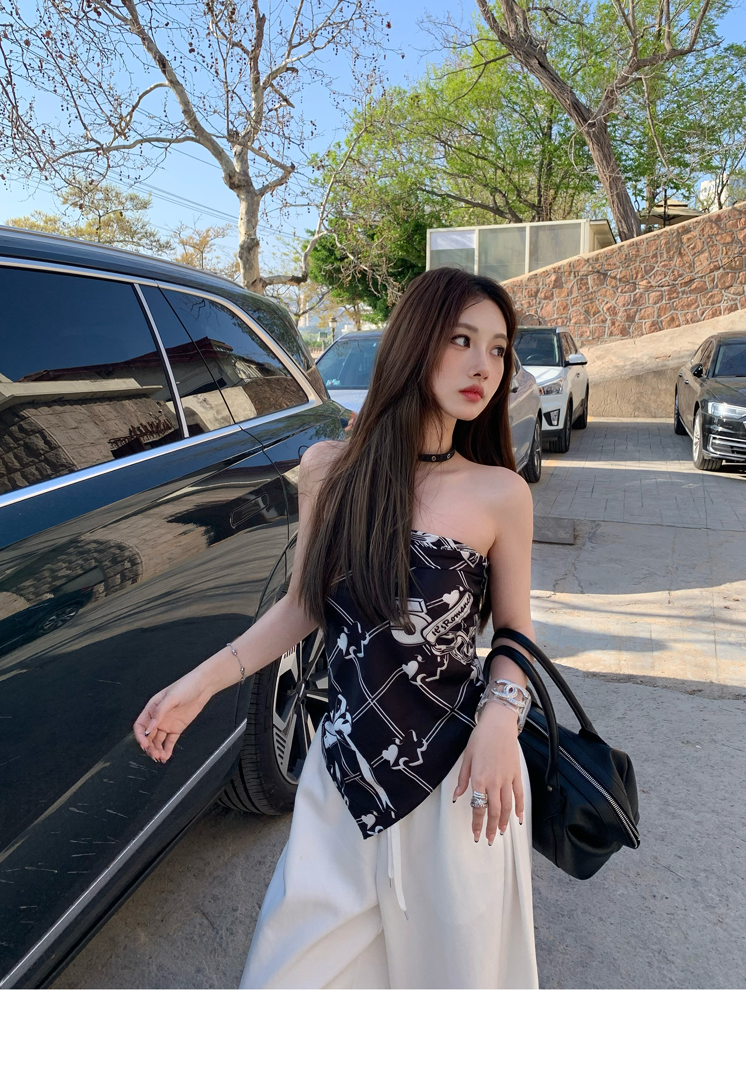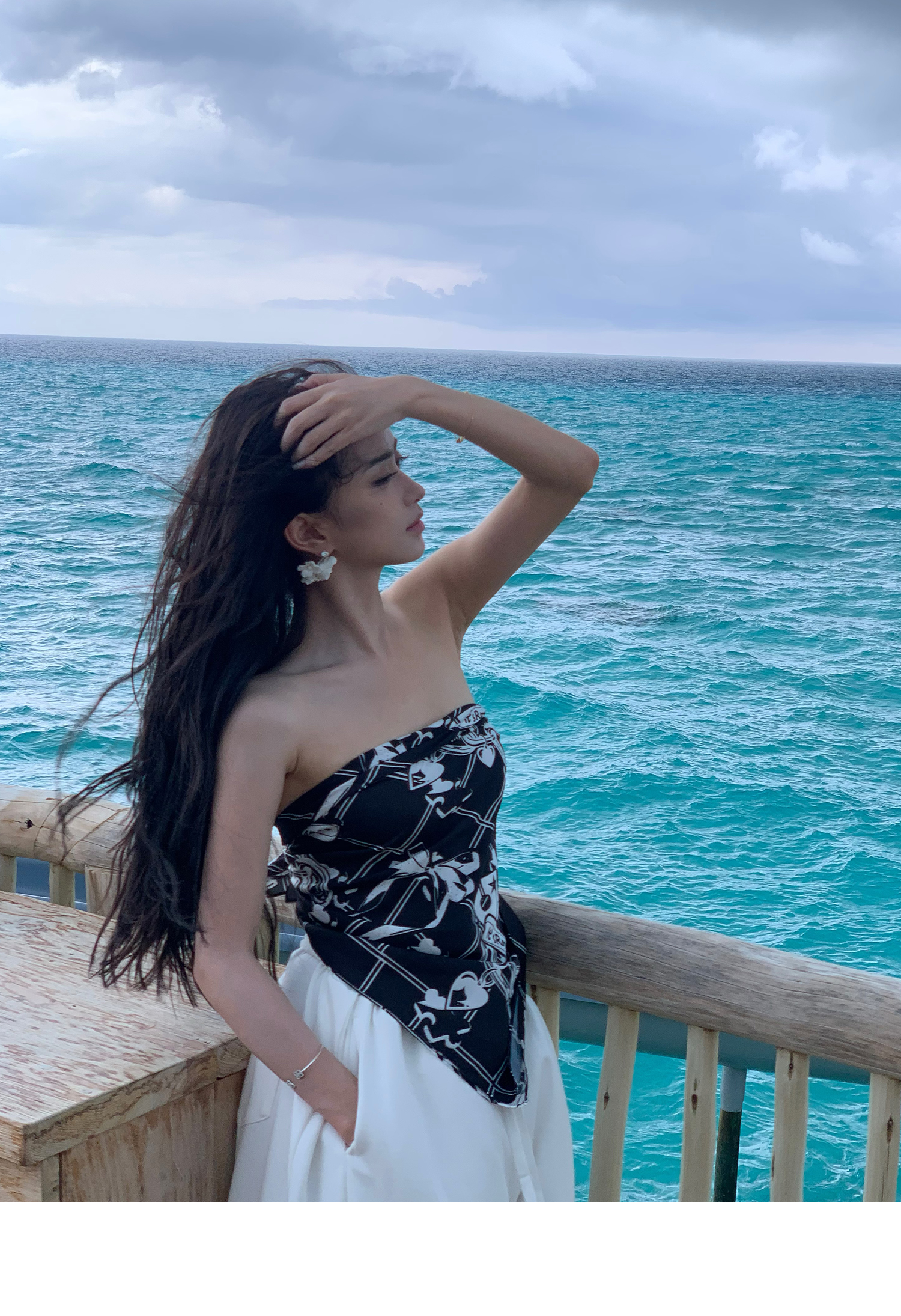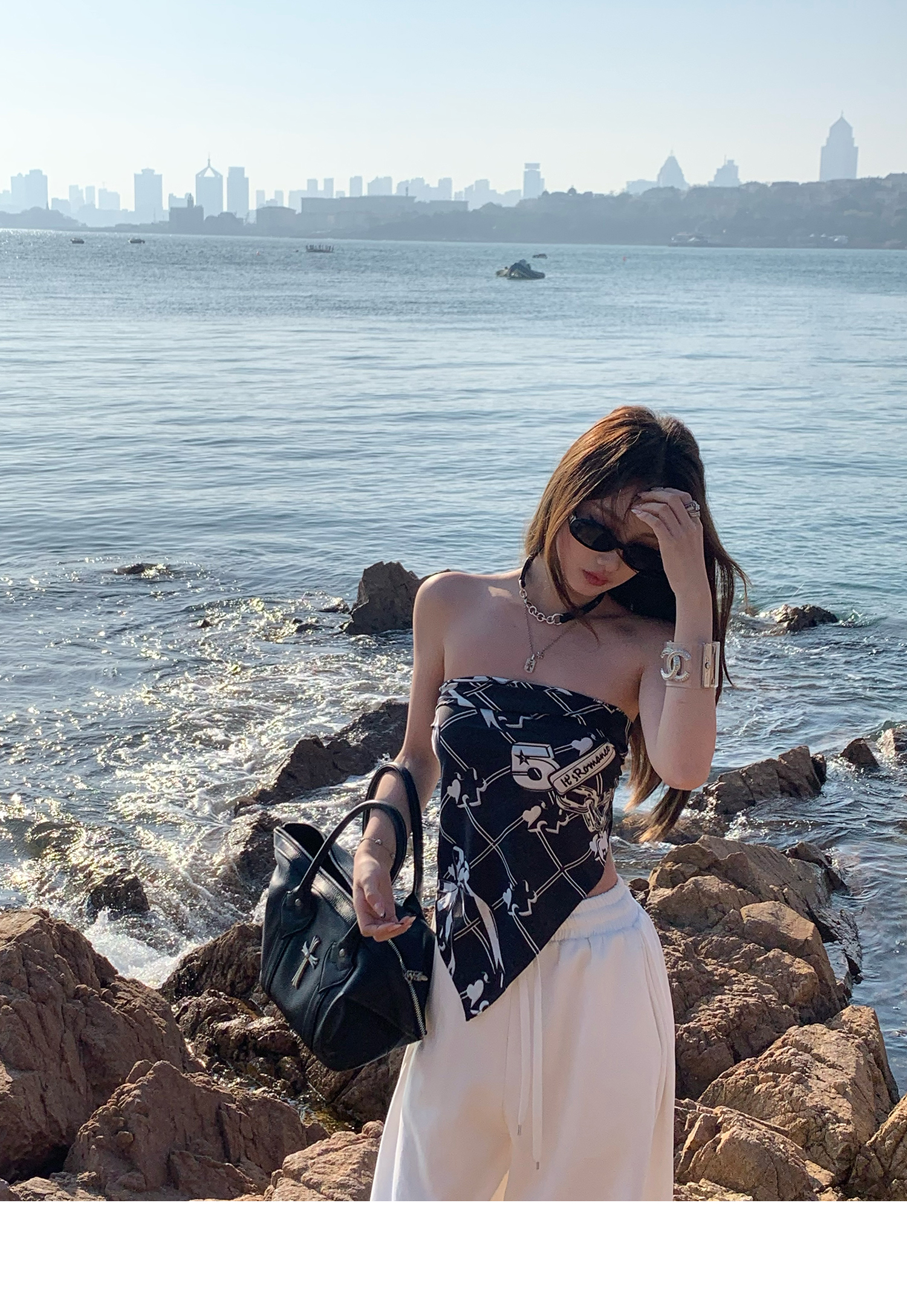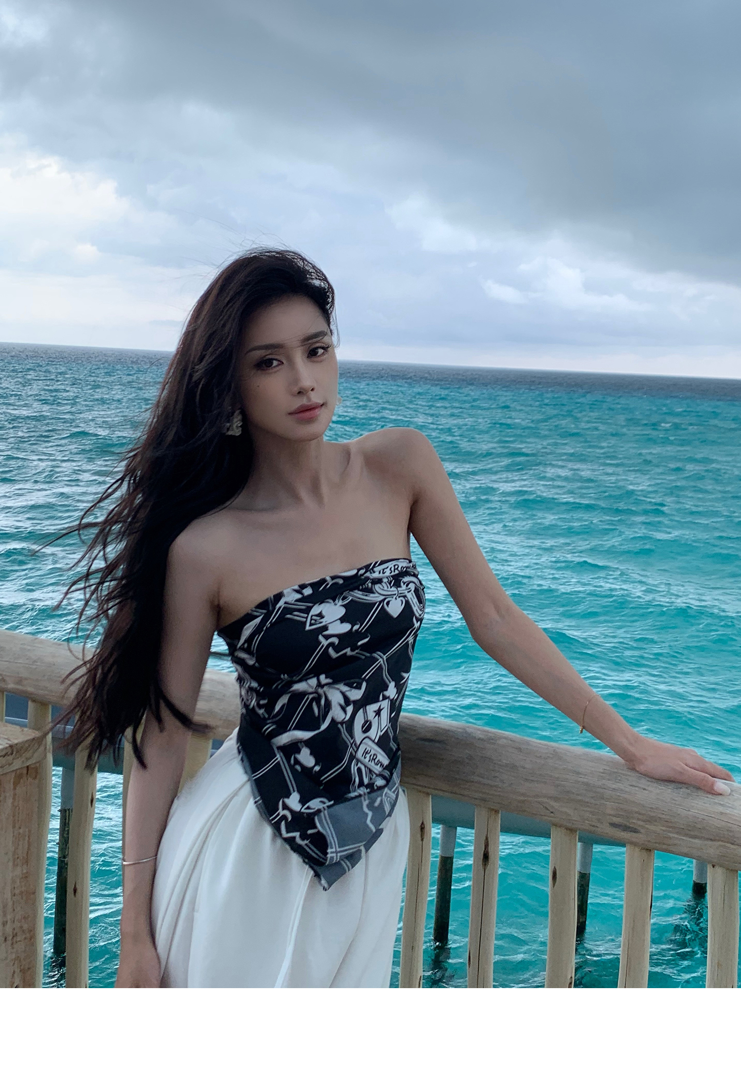 [Lock Love] Printed Ribbon Scarf & High-End Strapless Vest