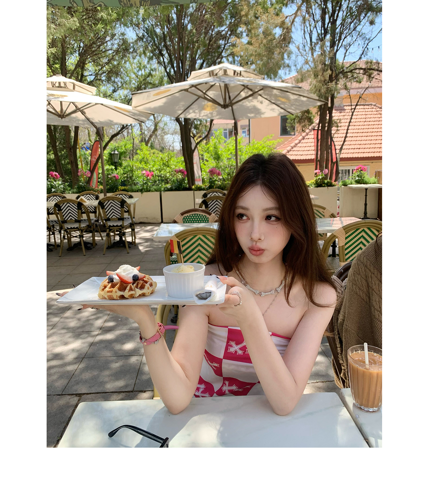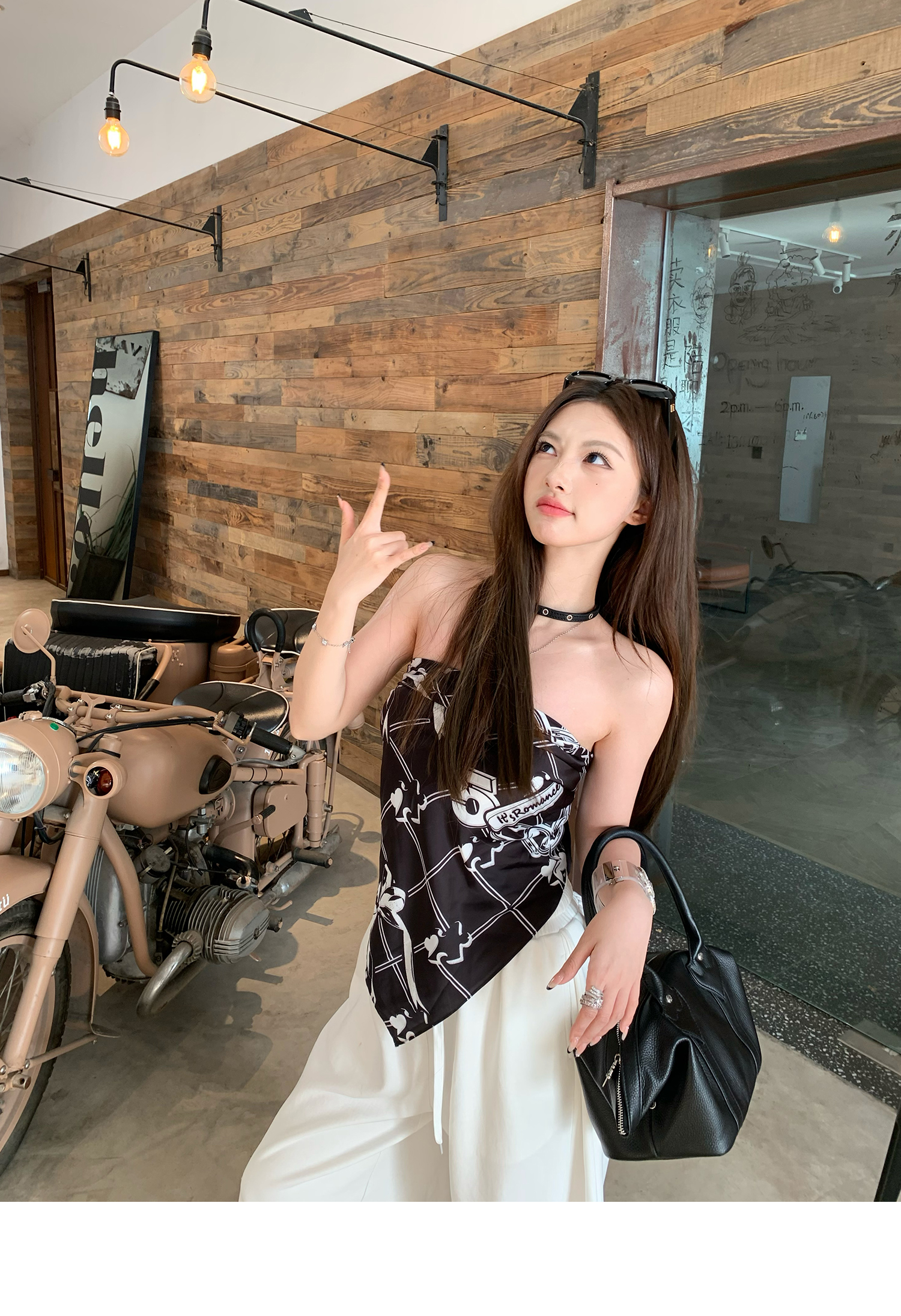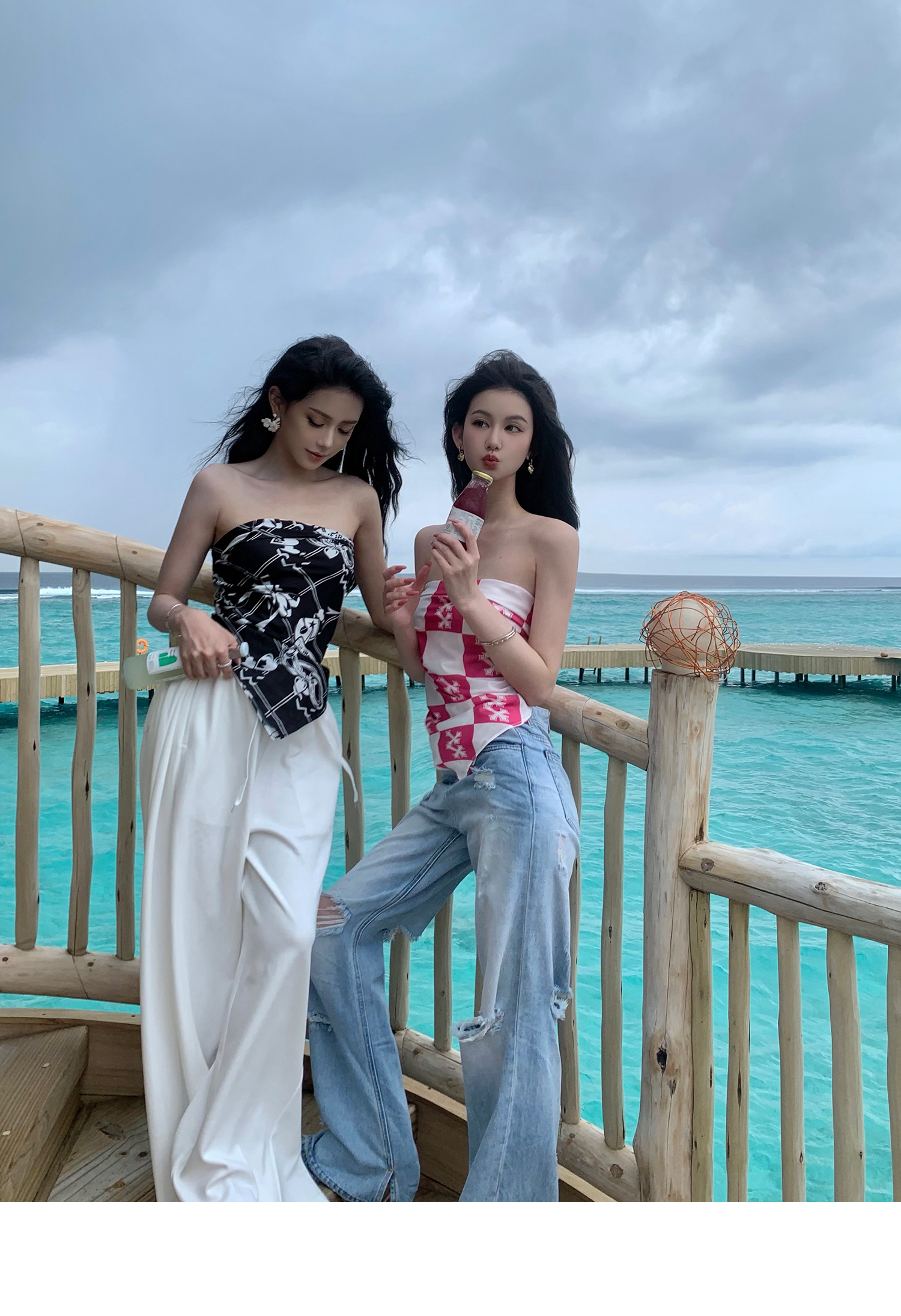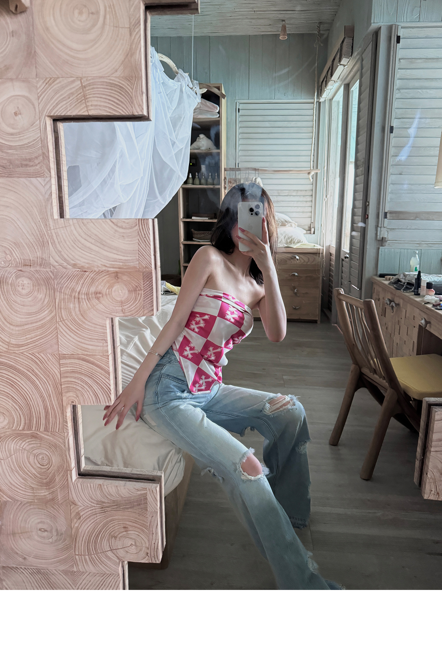 [Lock Love] Printed Ribbon Scarf & High-End Strapless Vest