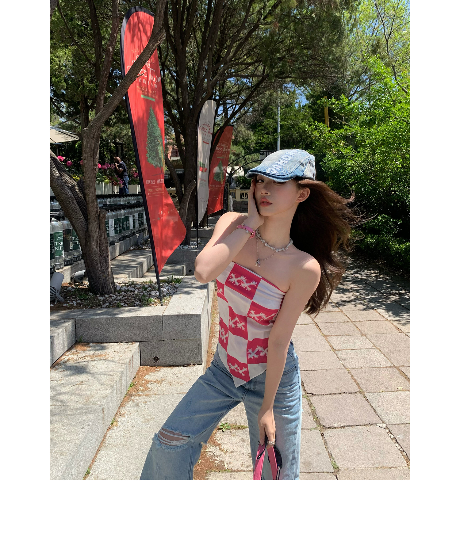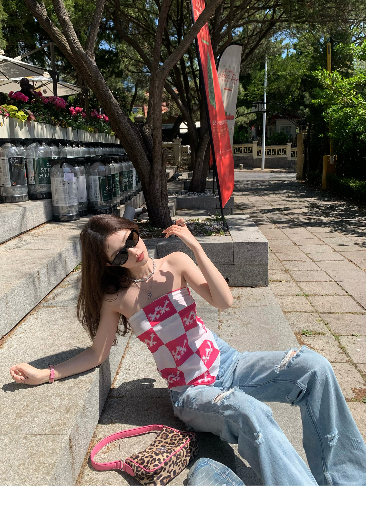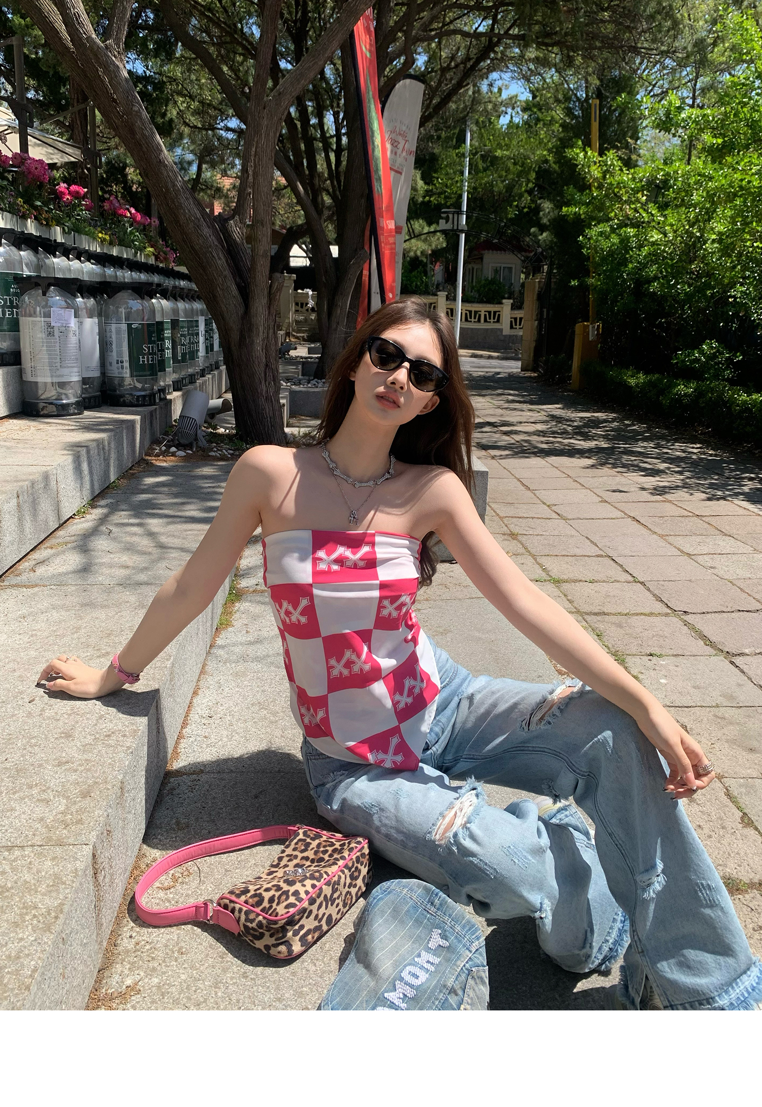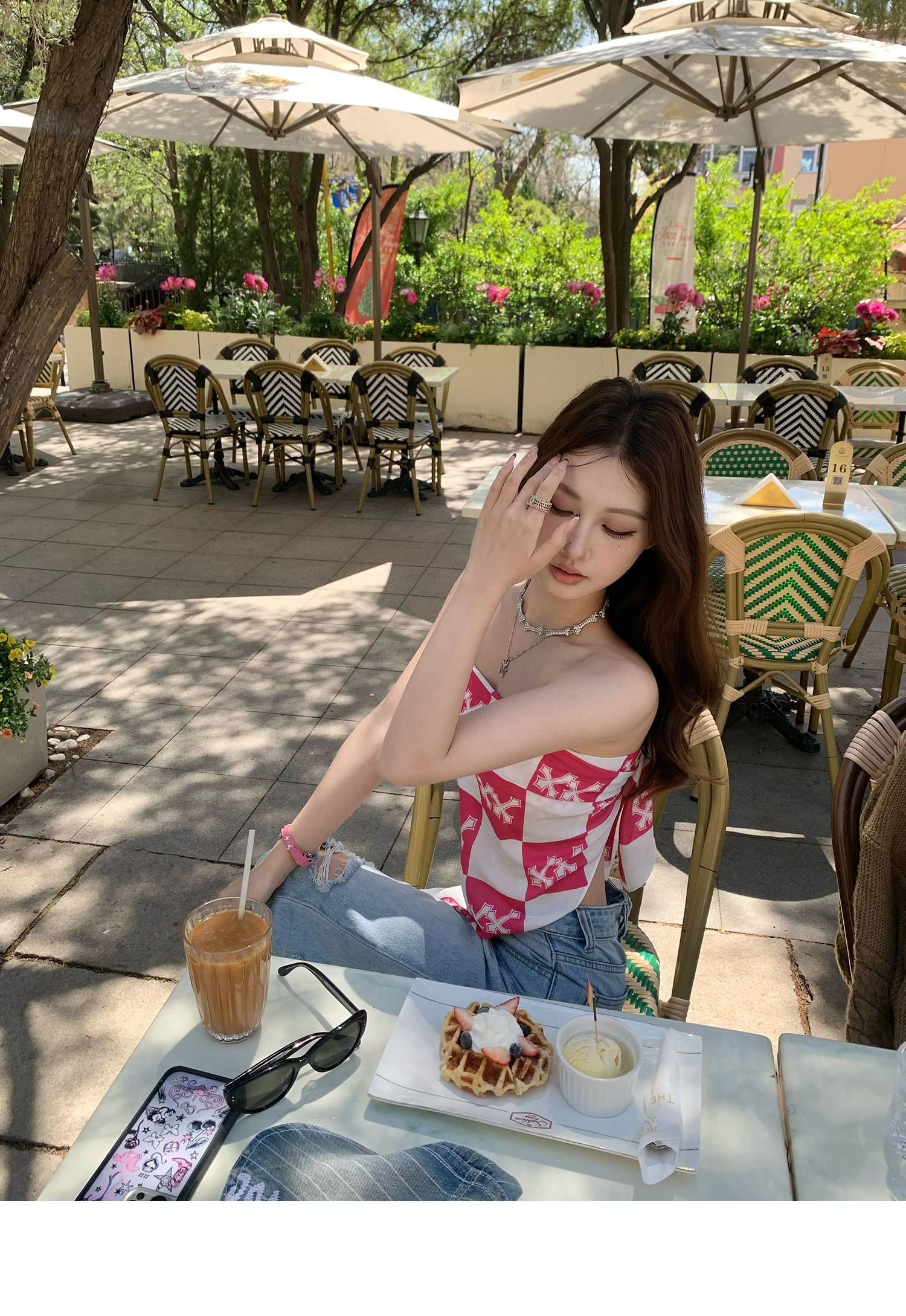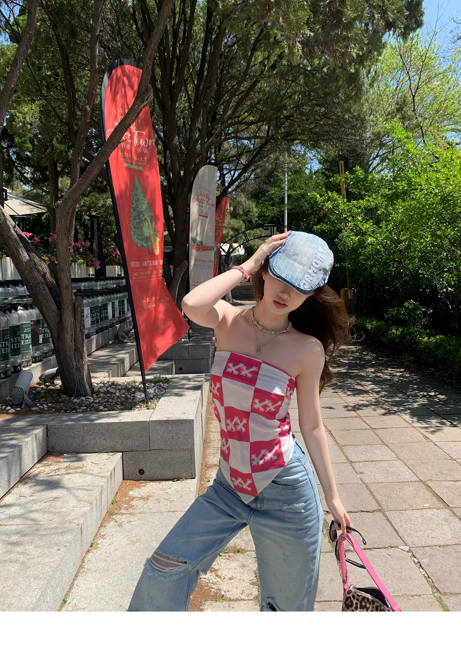 [Lock Love] Printed Ribbon Scarf & High-End Strapless Vest