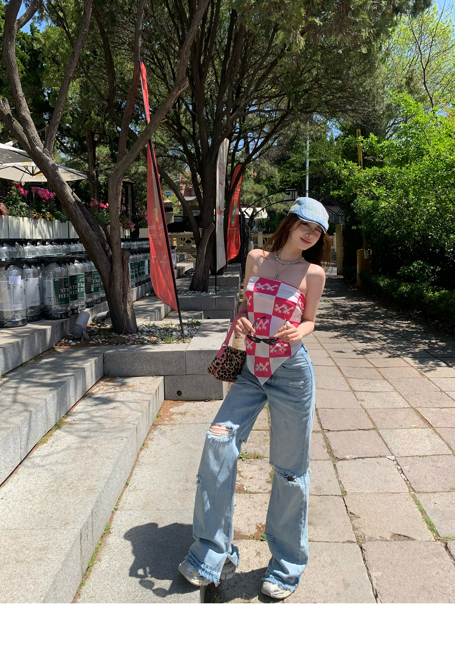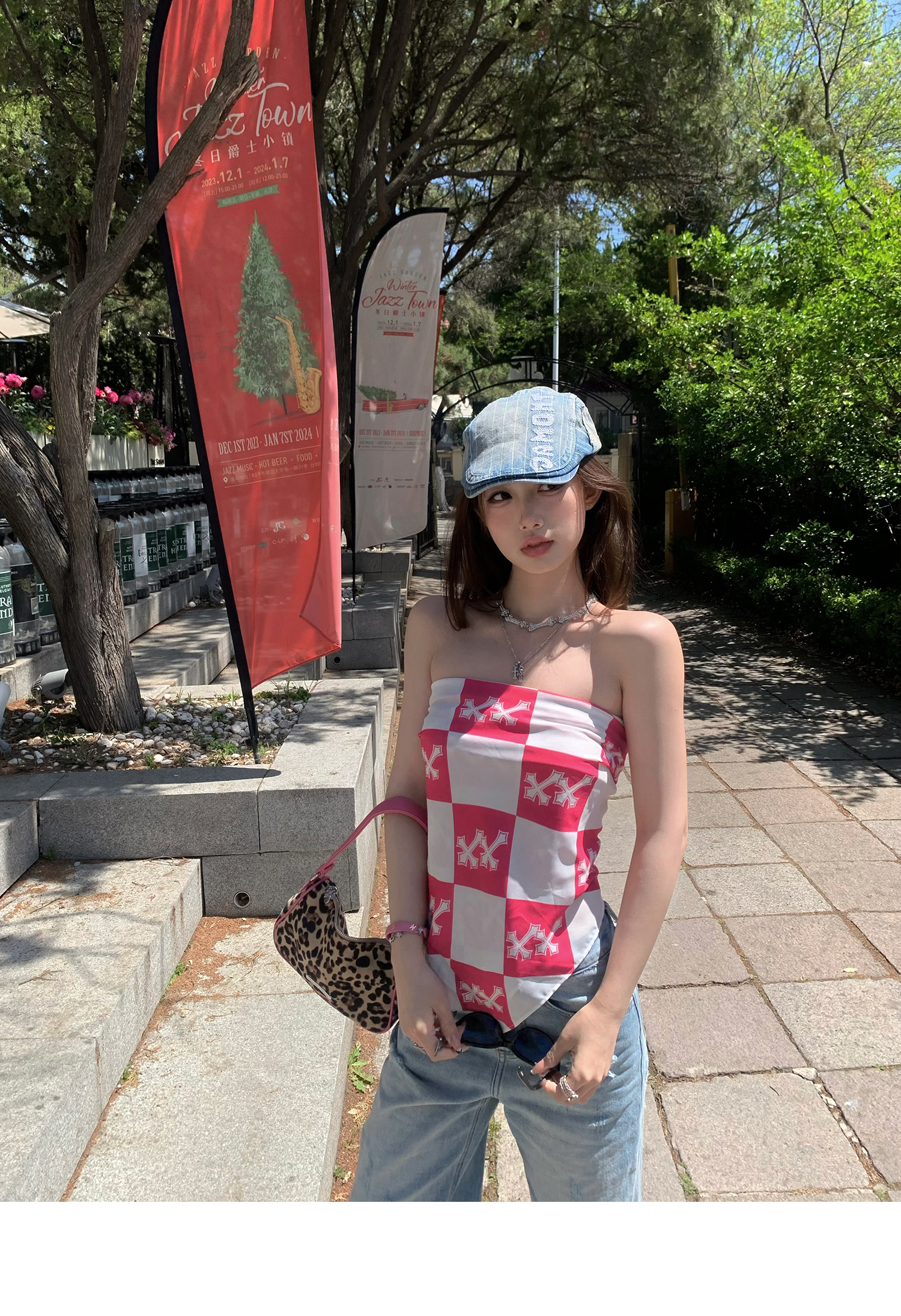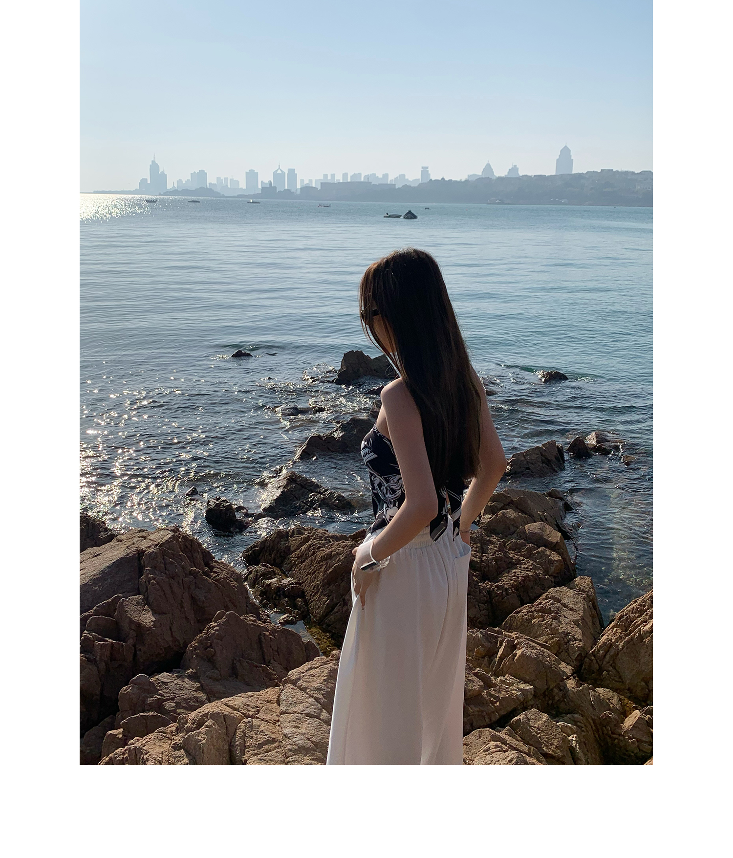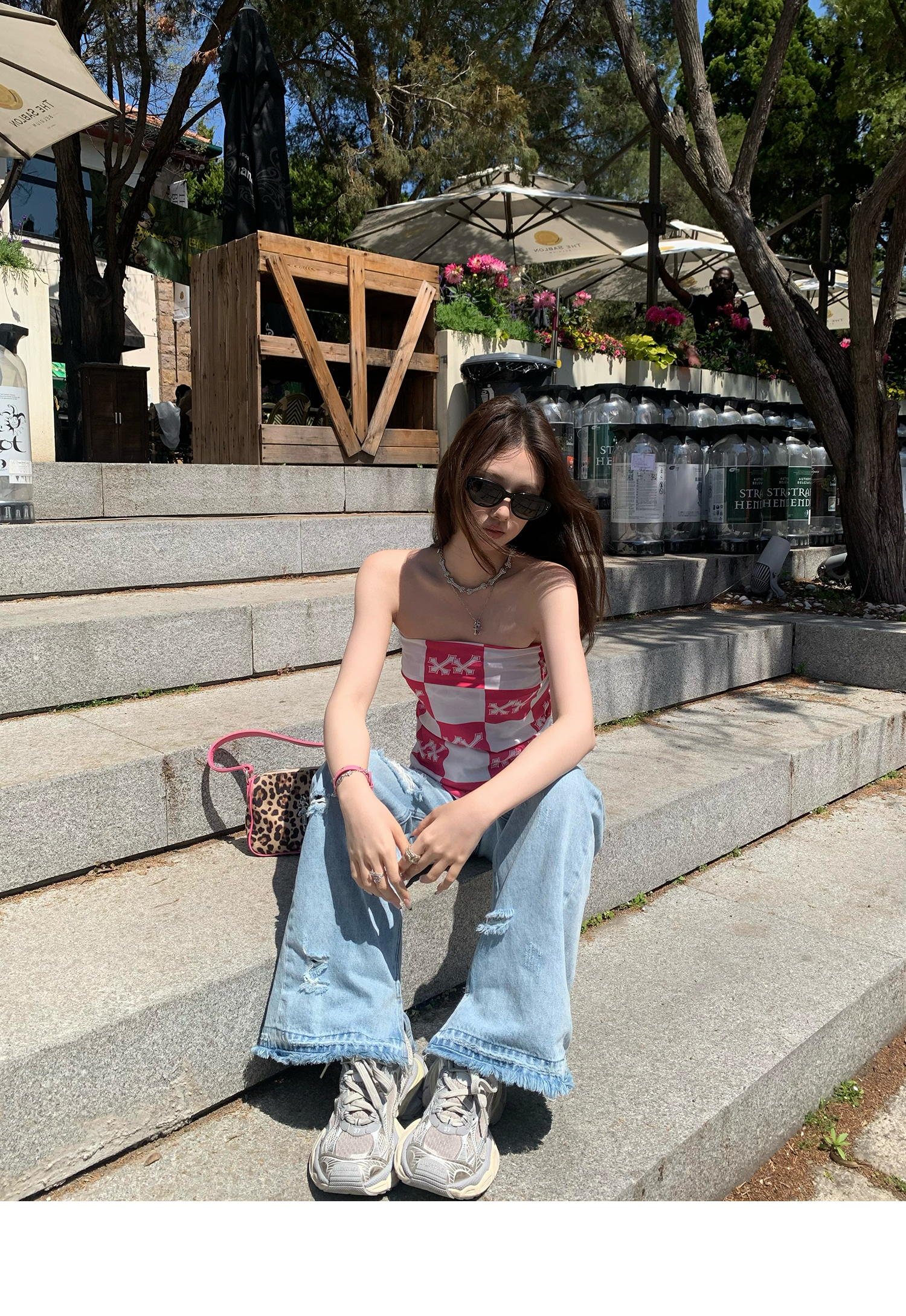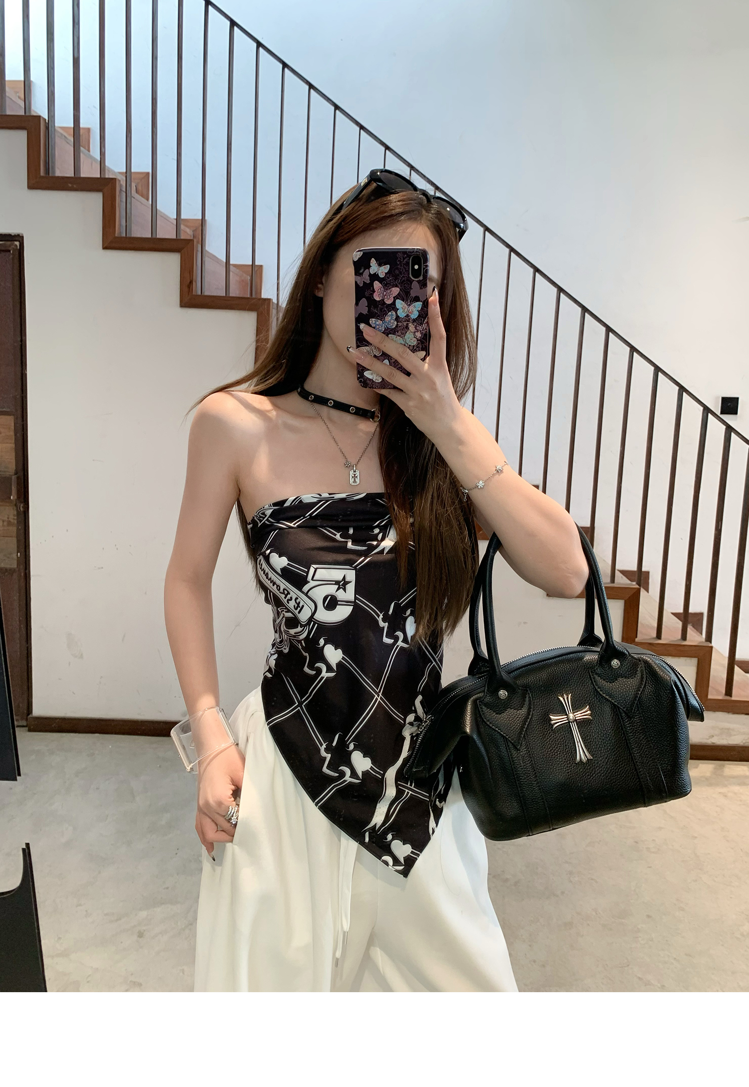 [Lock Love] Printed Ribbon Scarf & High-End Strapless Vest