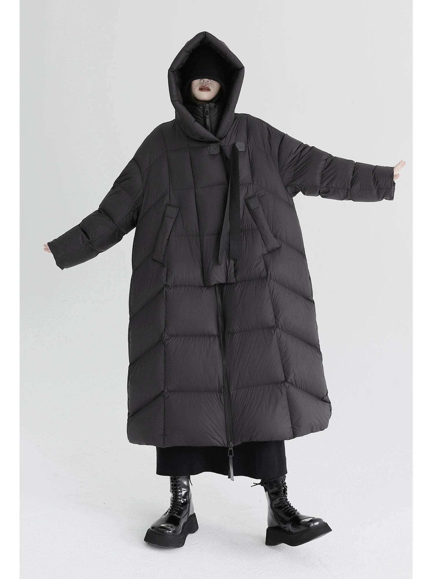 Loose Silhouette 90% White Goose Down Jacket (Mid-Length Style)