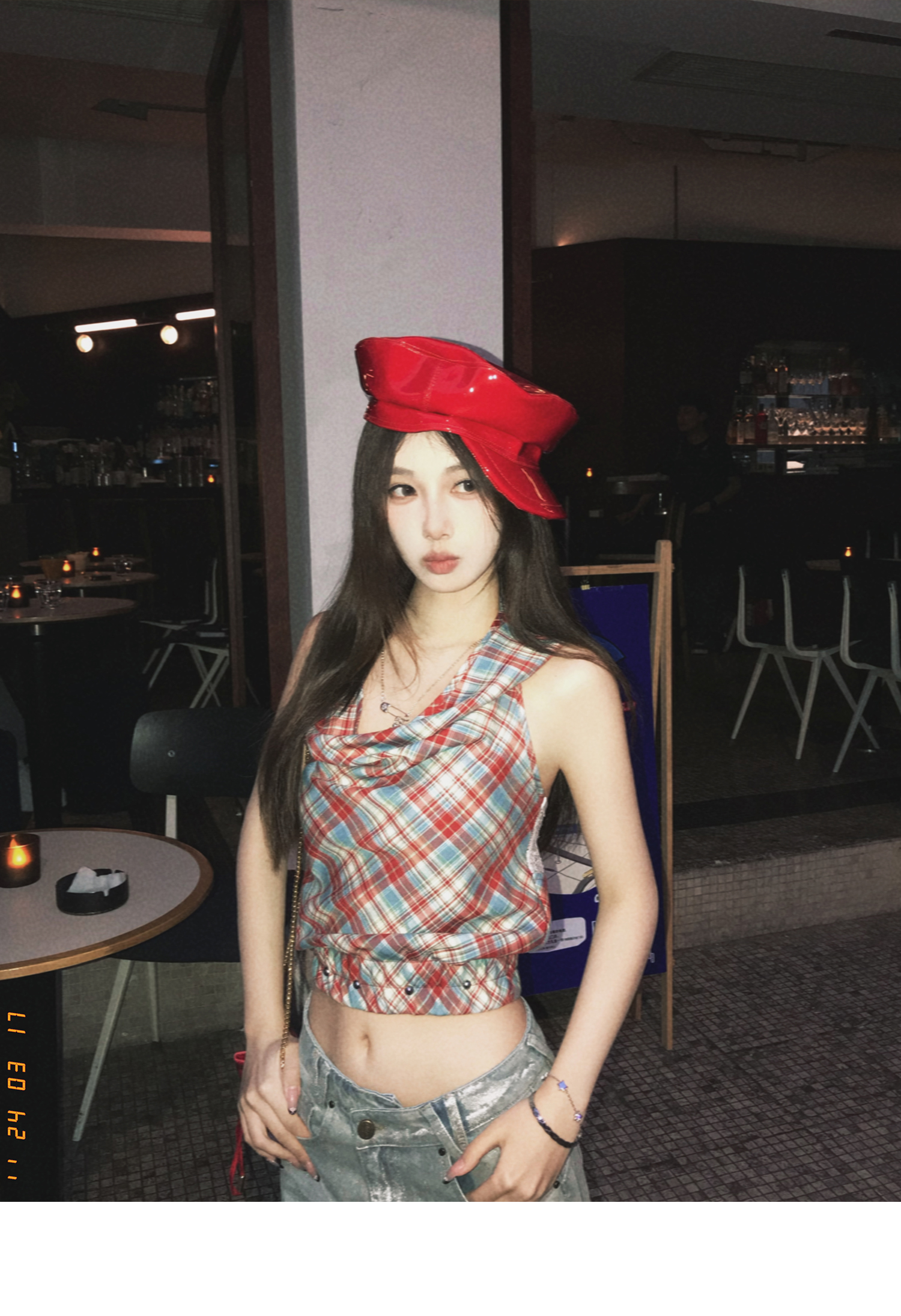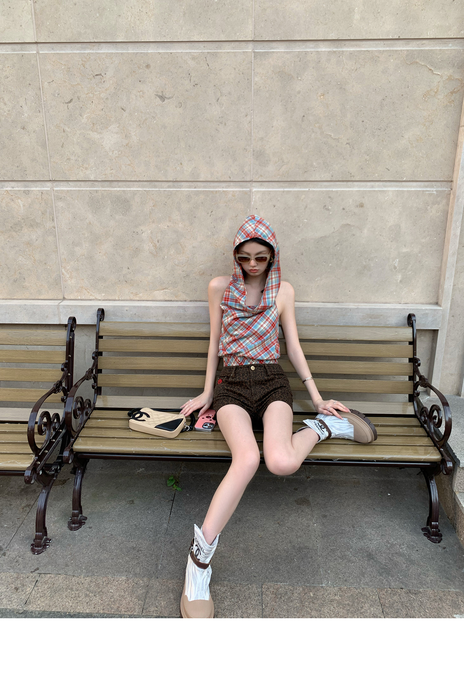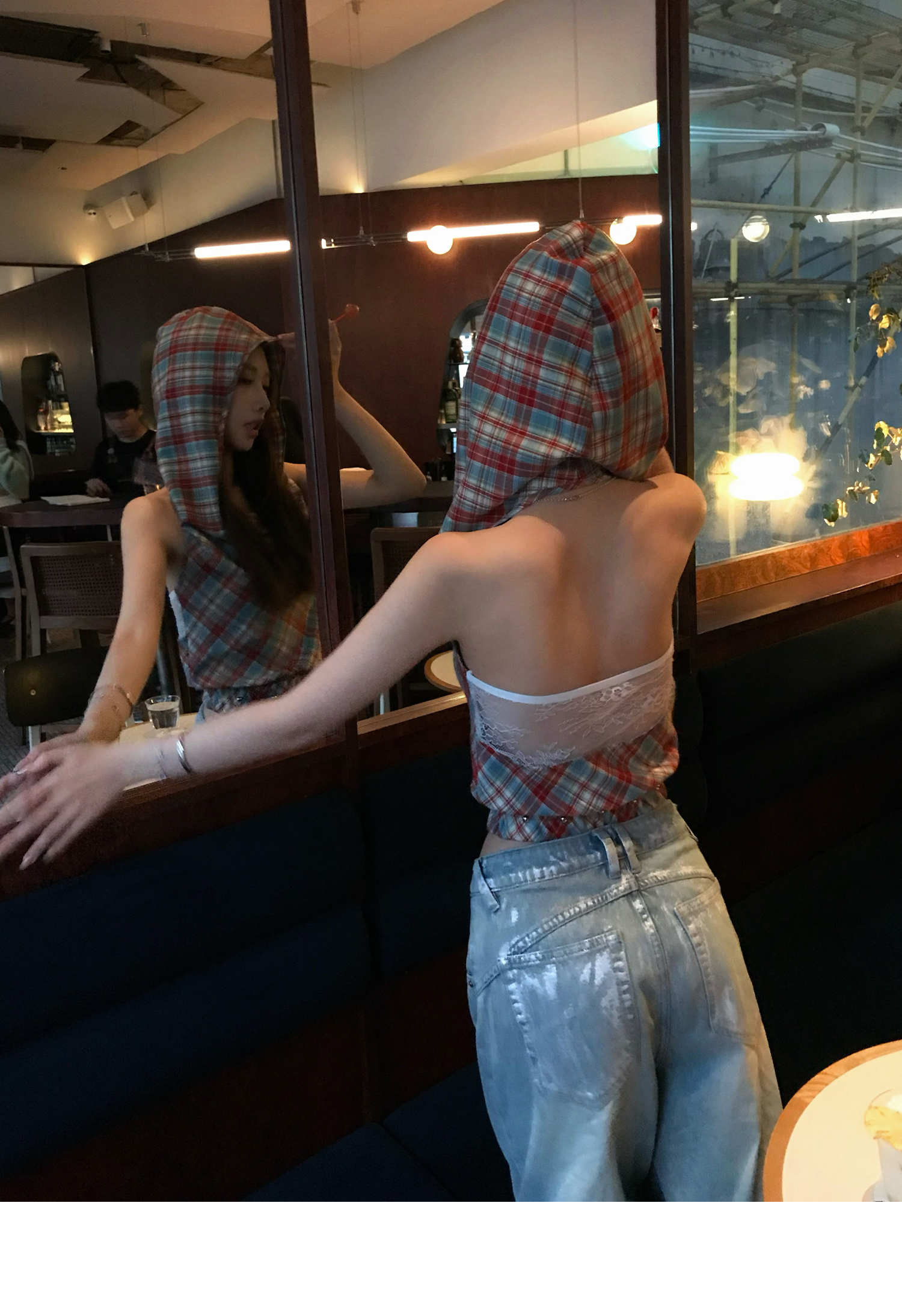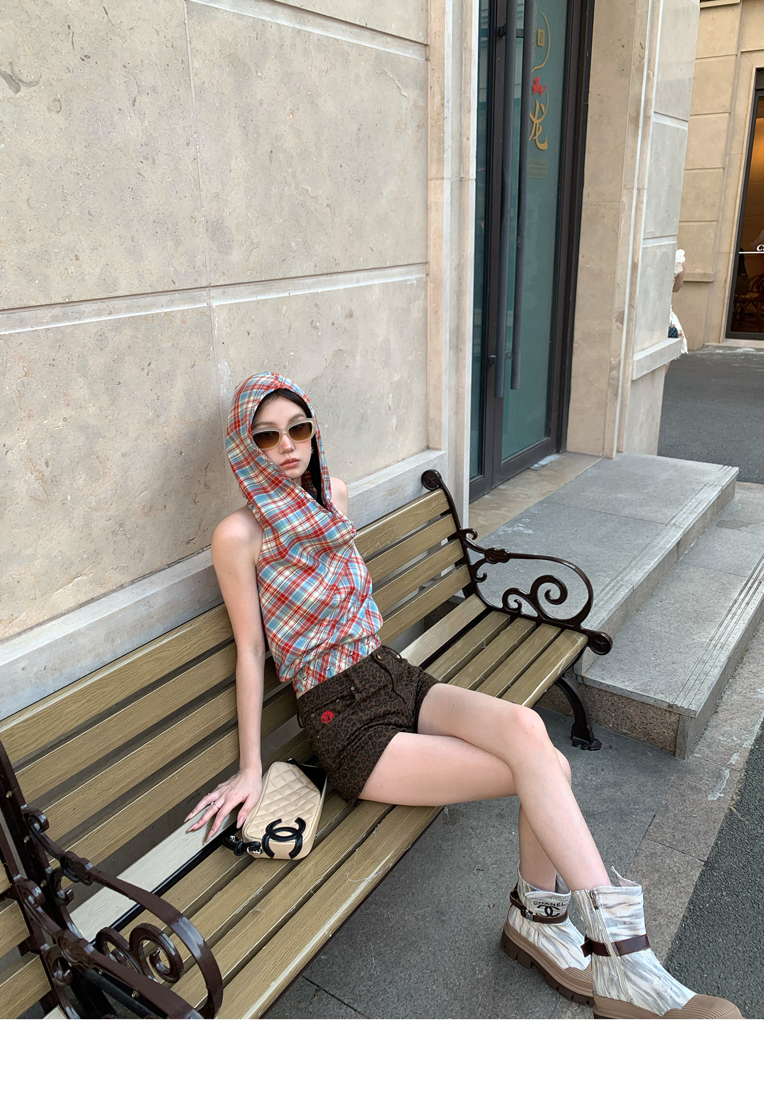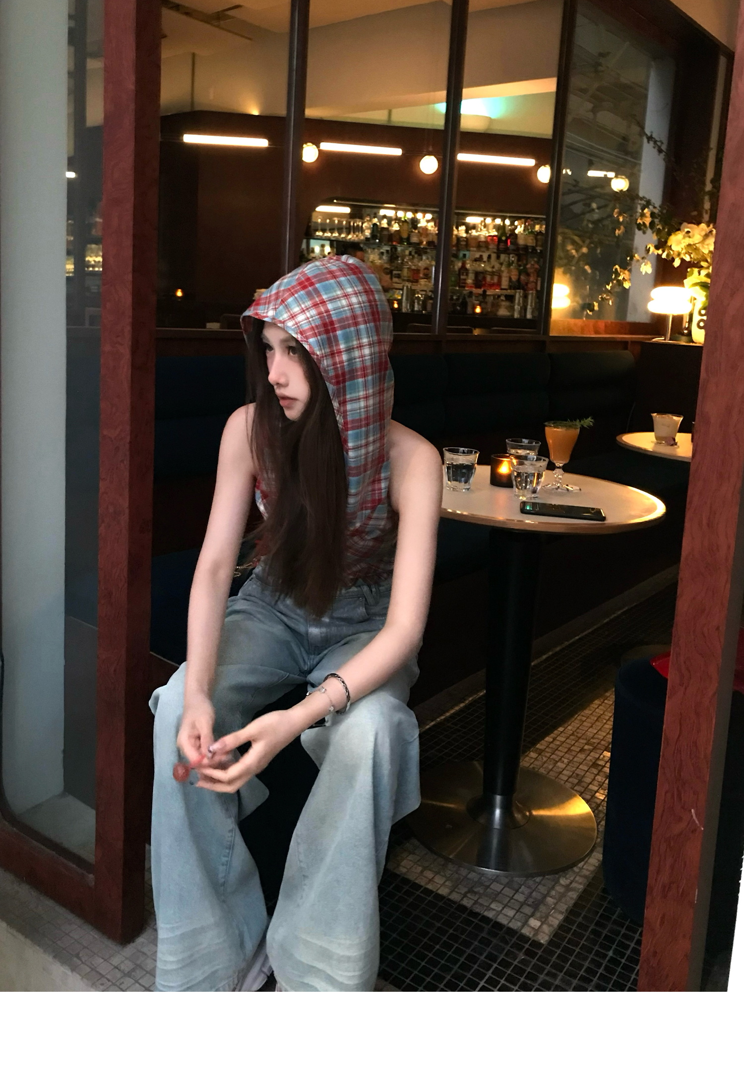 【Lost in Tokyo】 Red Checkered Sleeveless Hoodie Tank Top