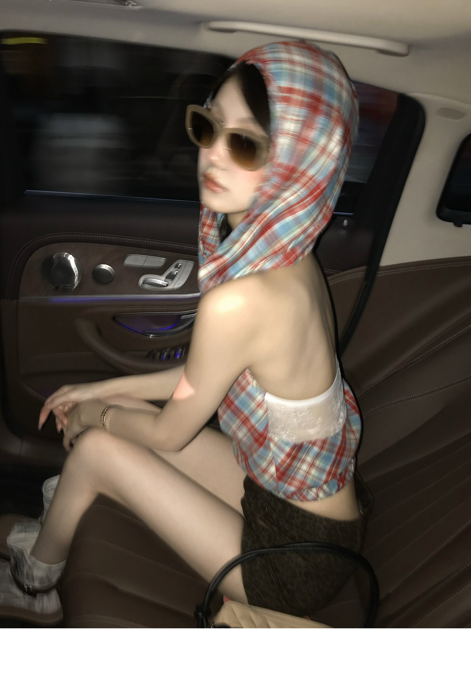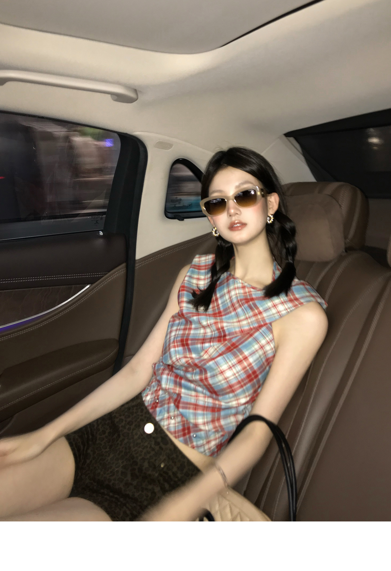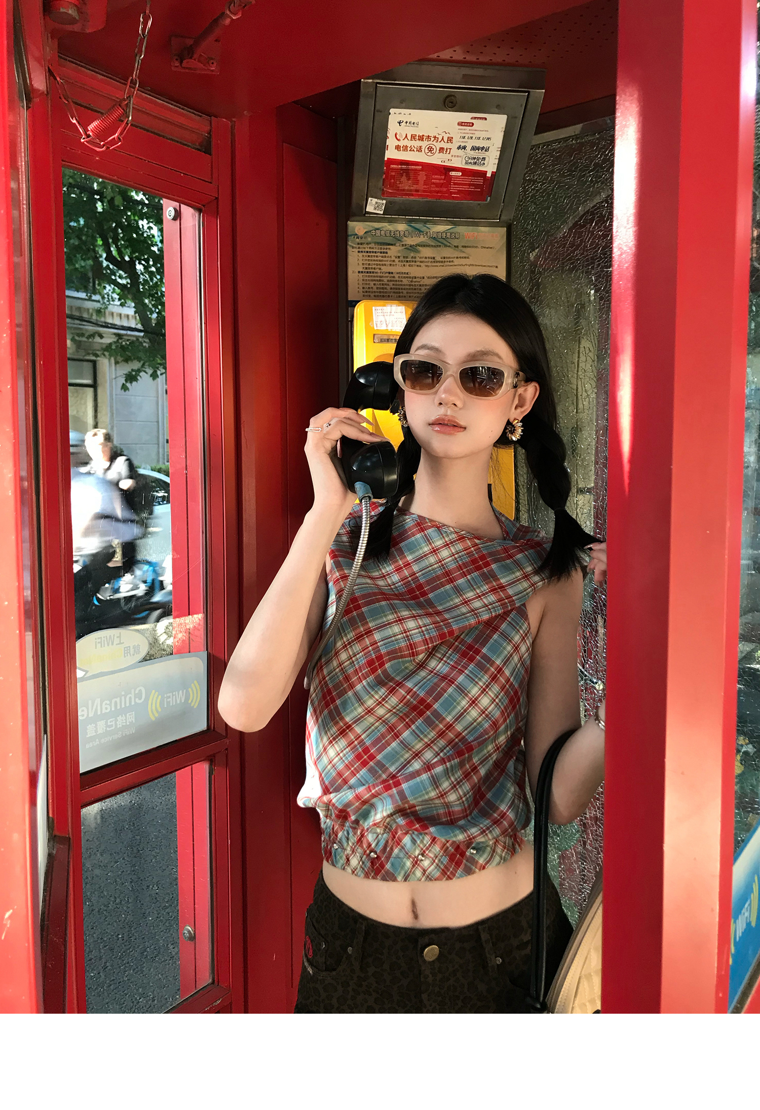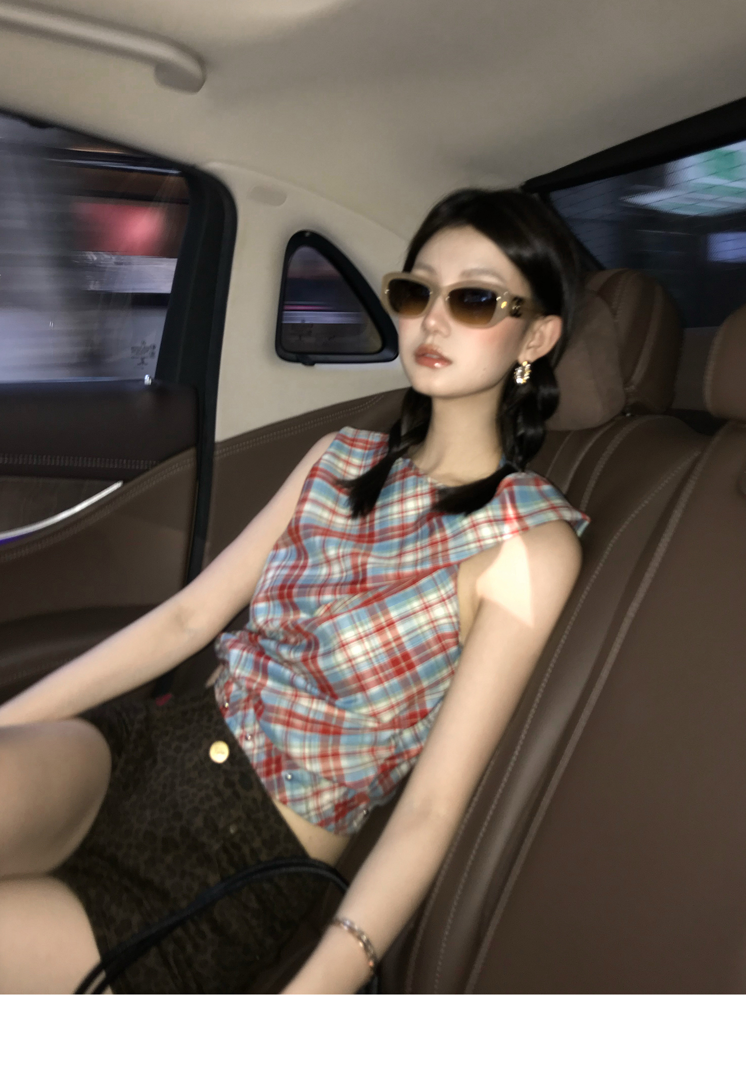 【Lost in Tokyo】 Red Checkered Sleeveless Hoodie Tank Top