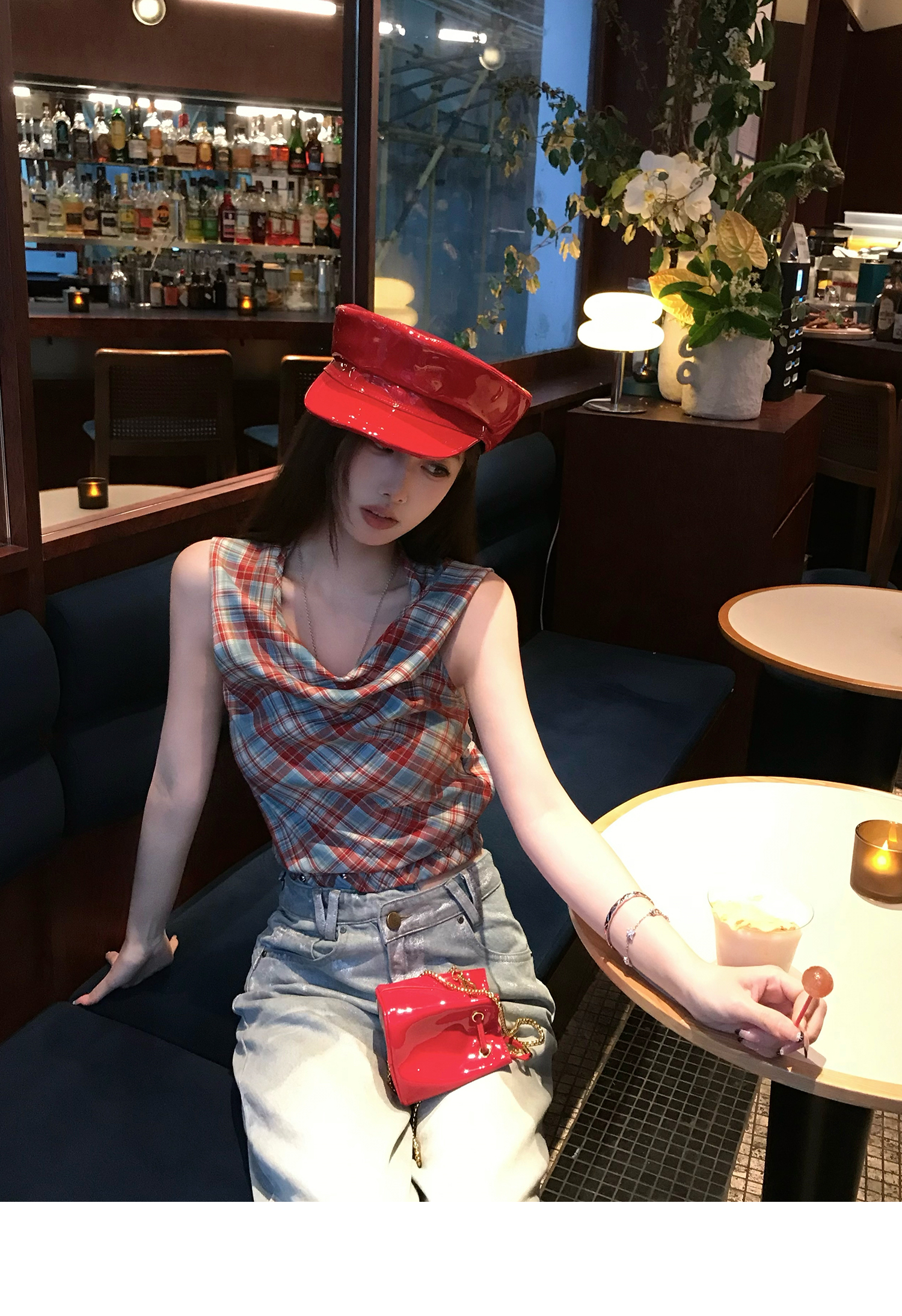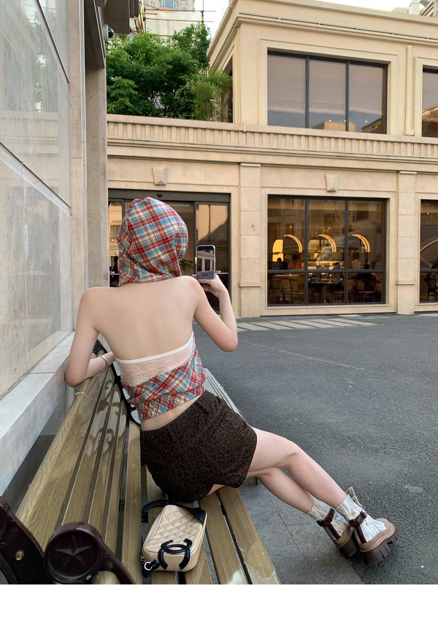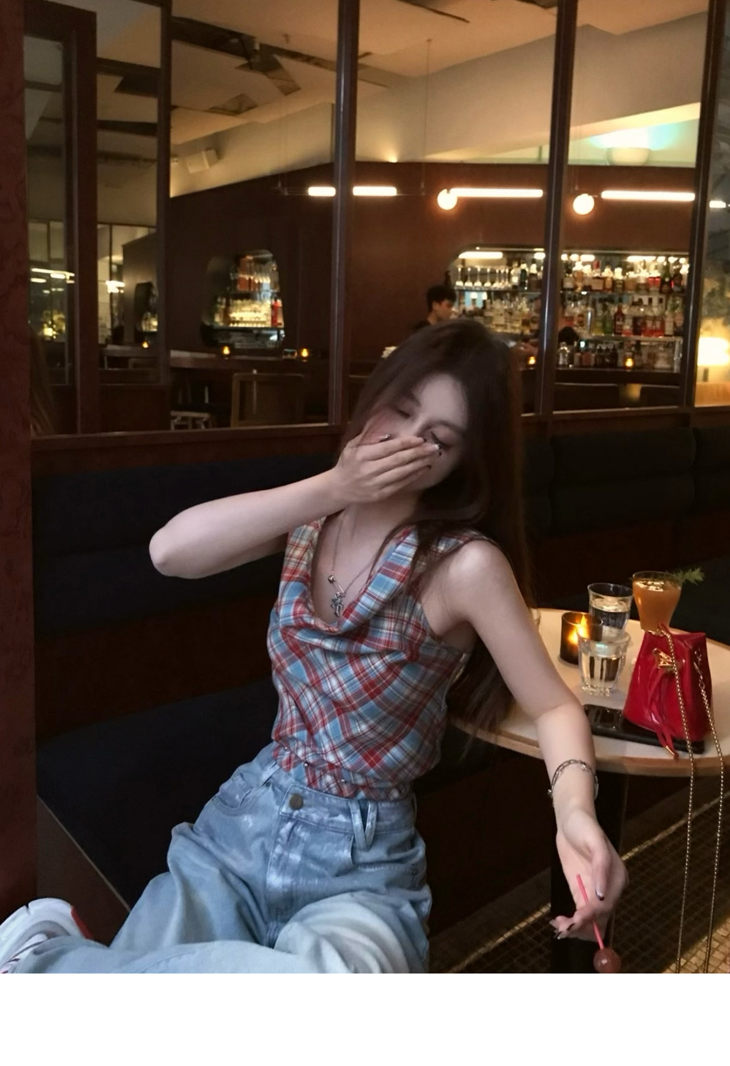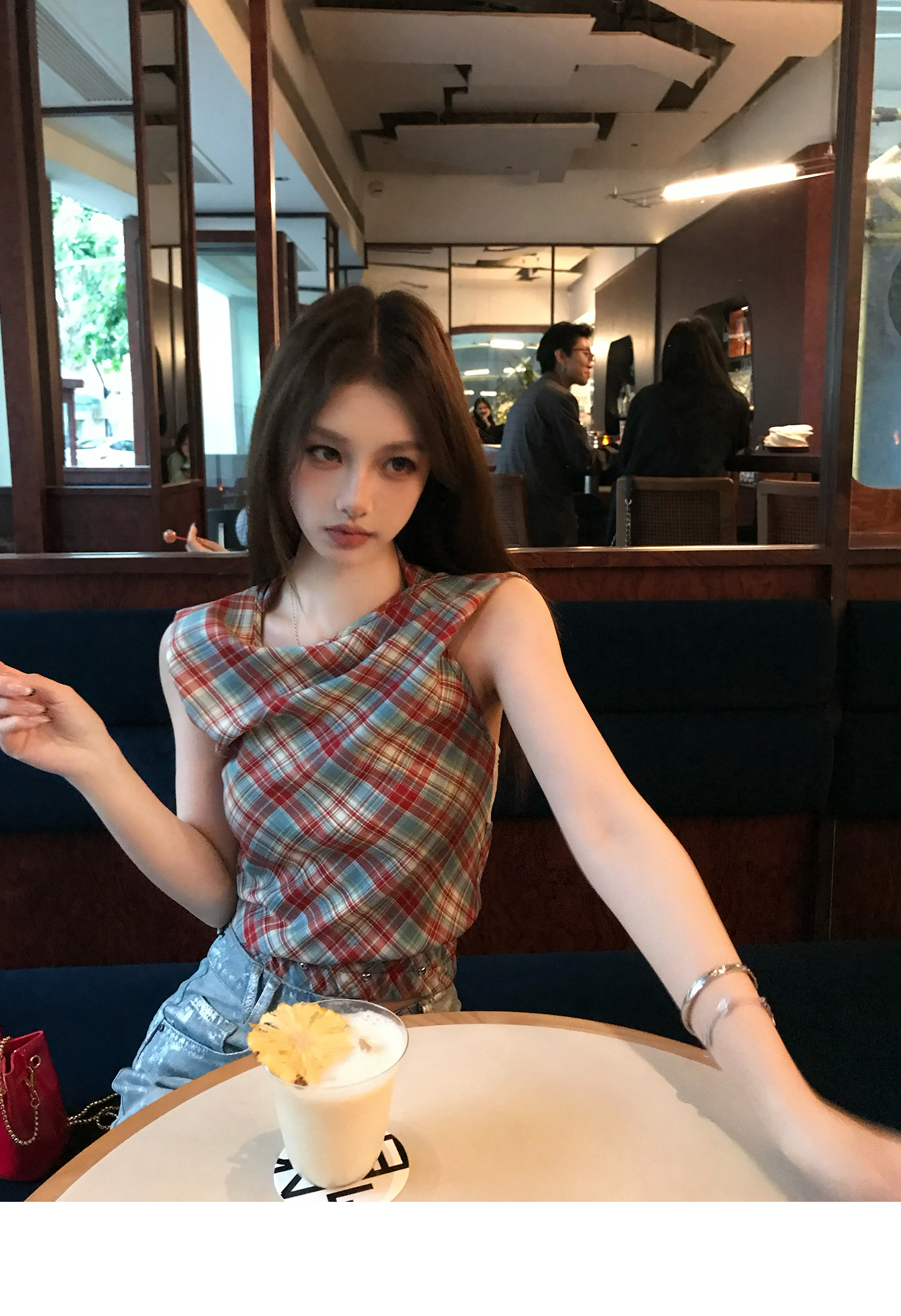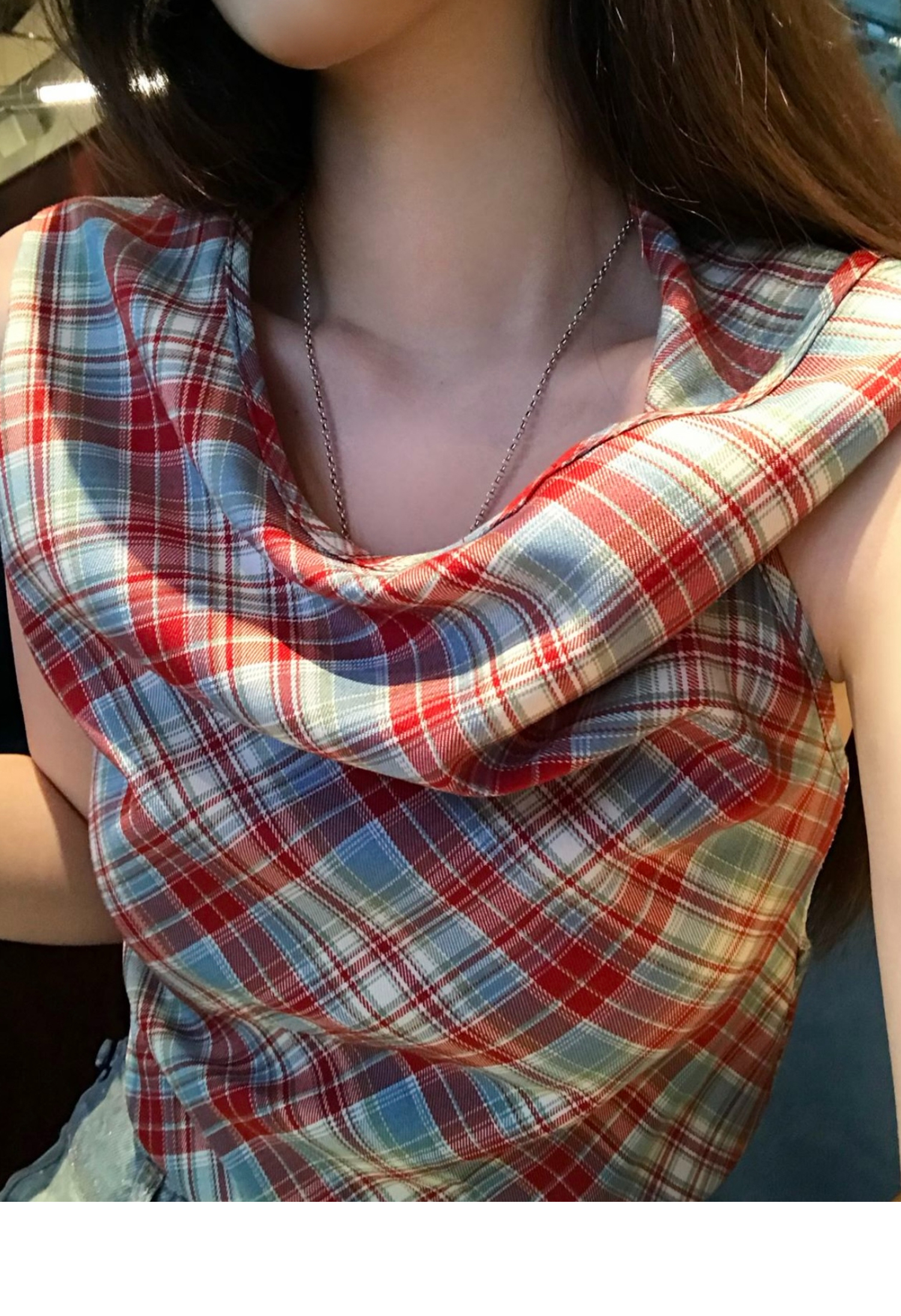 【Lost in Tokyo】 Red Checkered Sleeveless Hoodie Tank Top