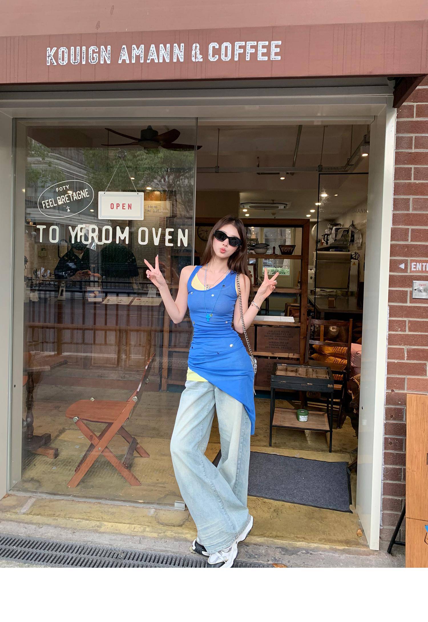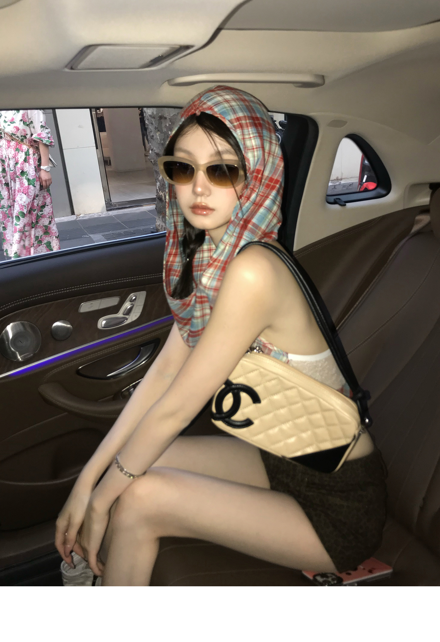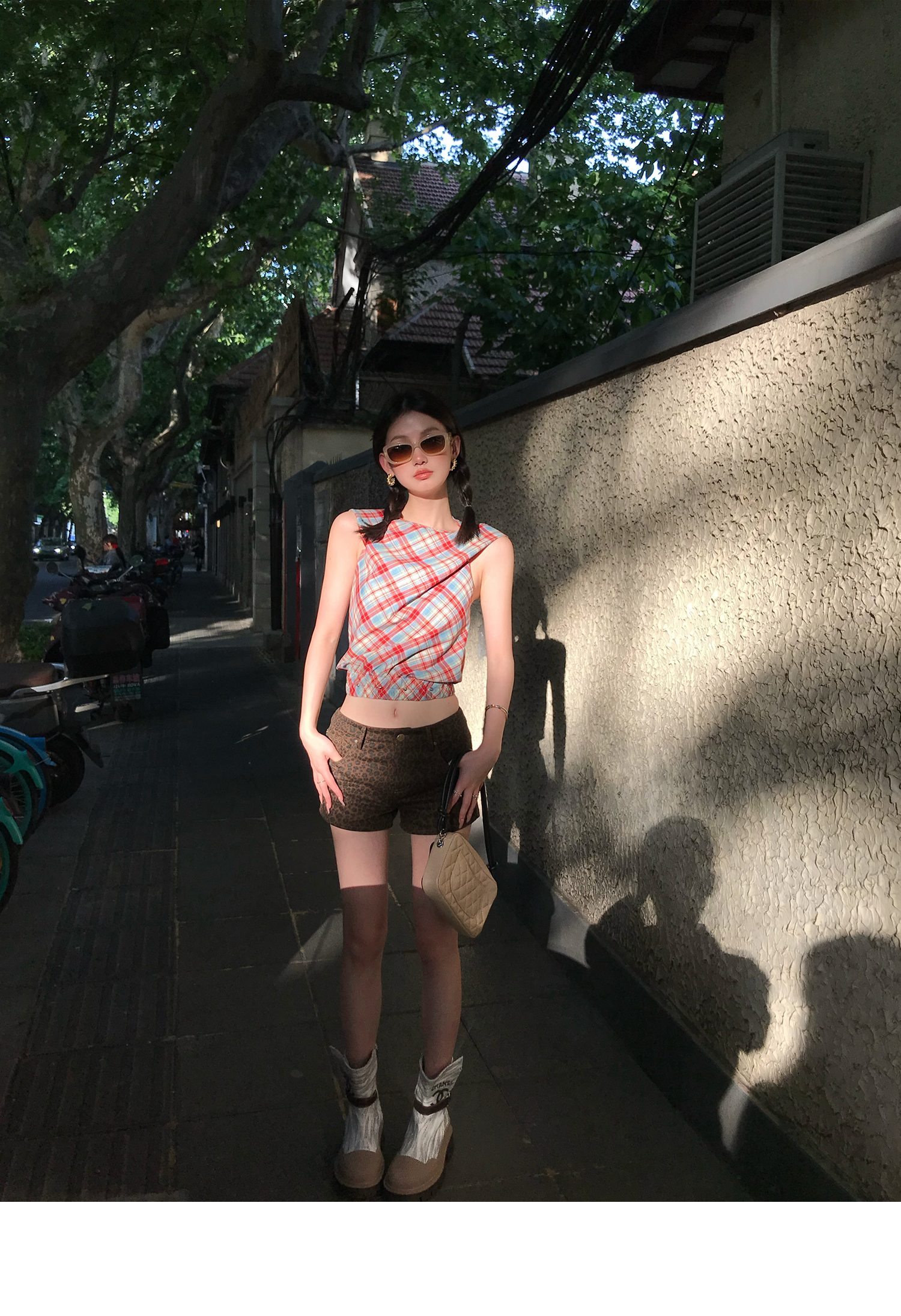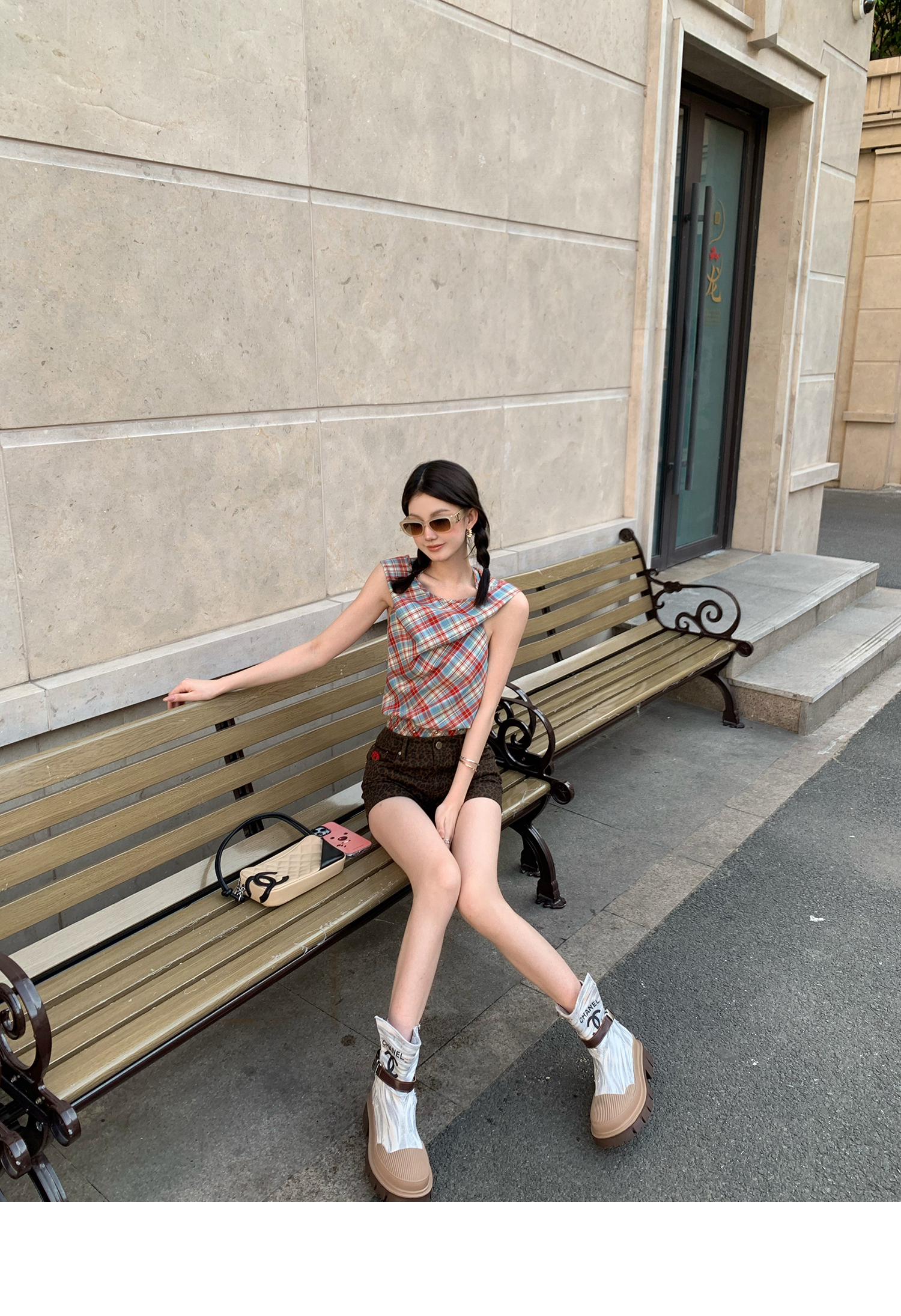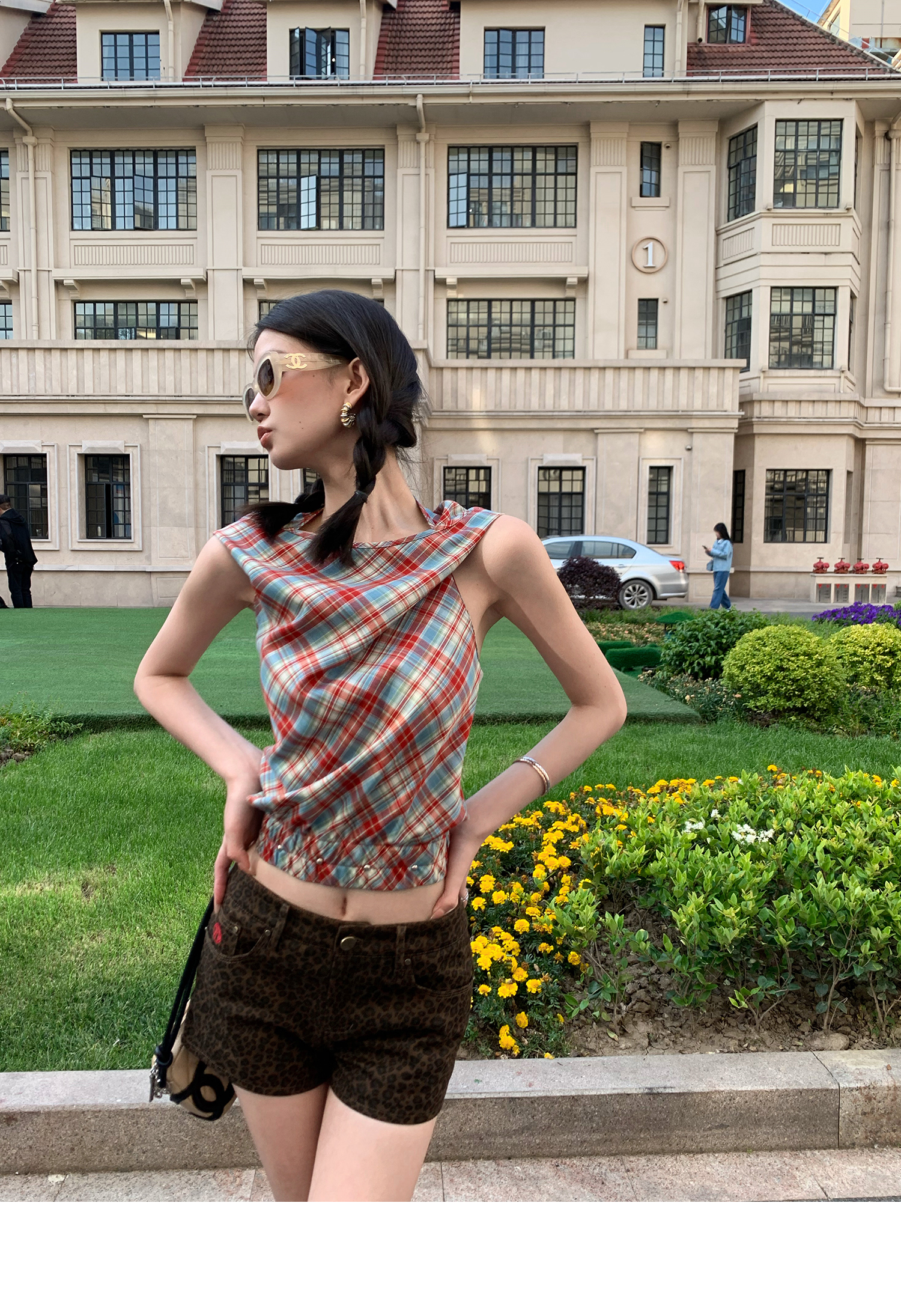 【Lost in Tokyo】 Red Checkered Sleeveless Hoodie Tank Top