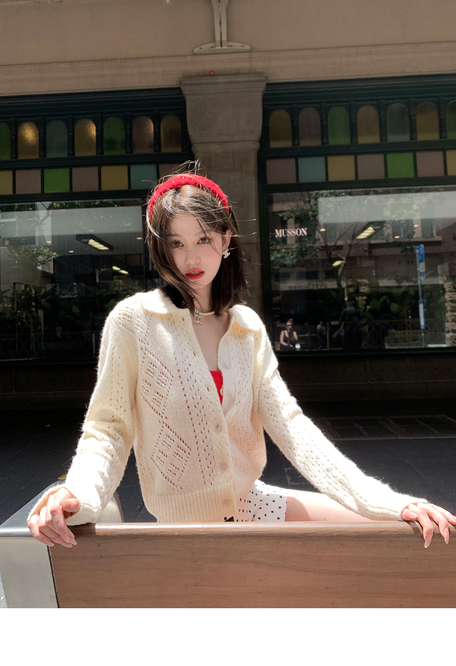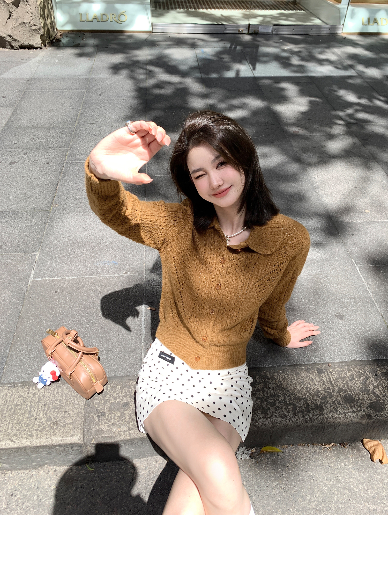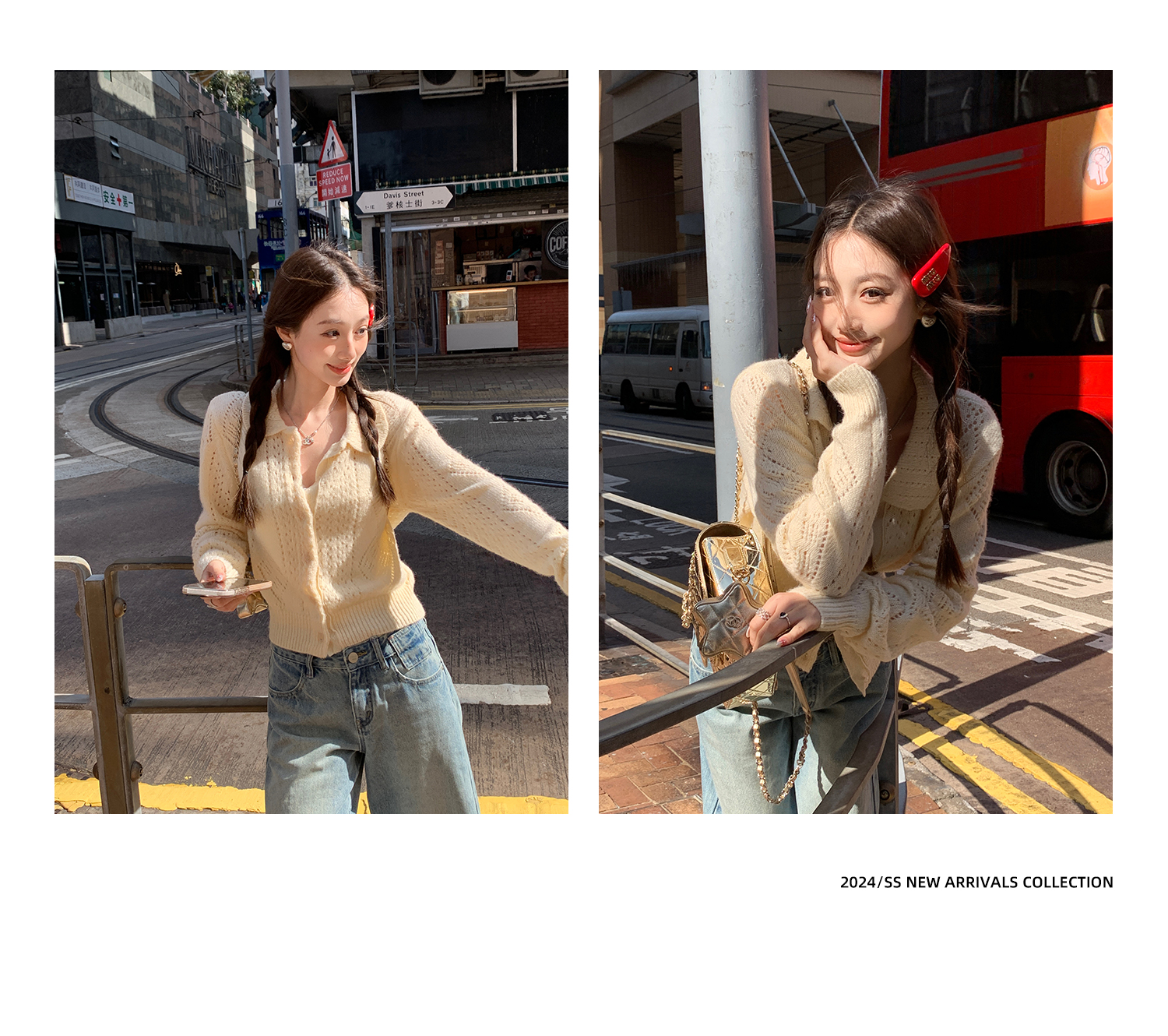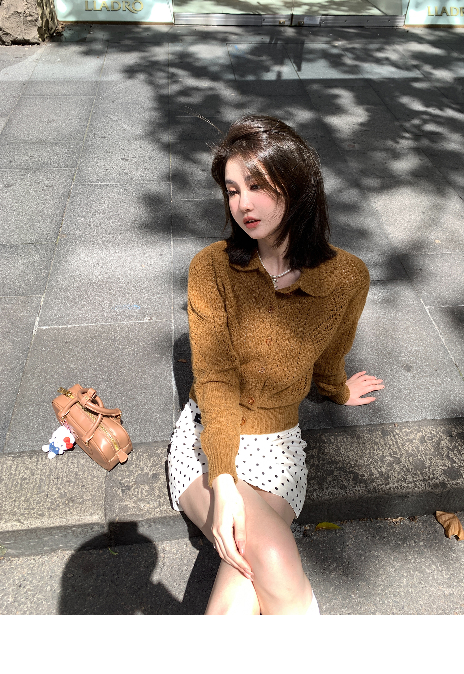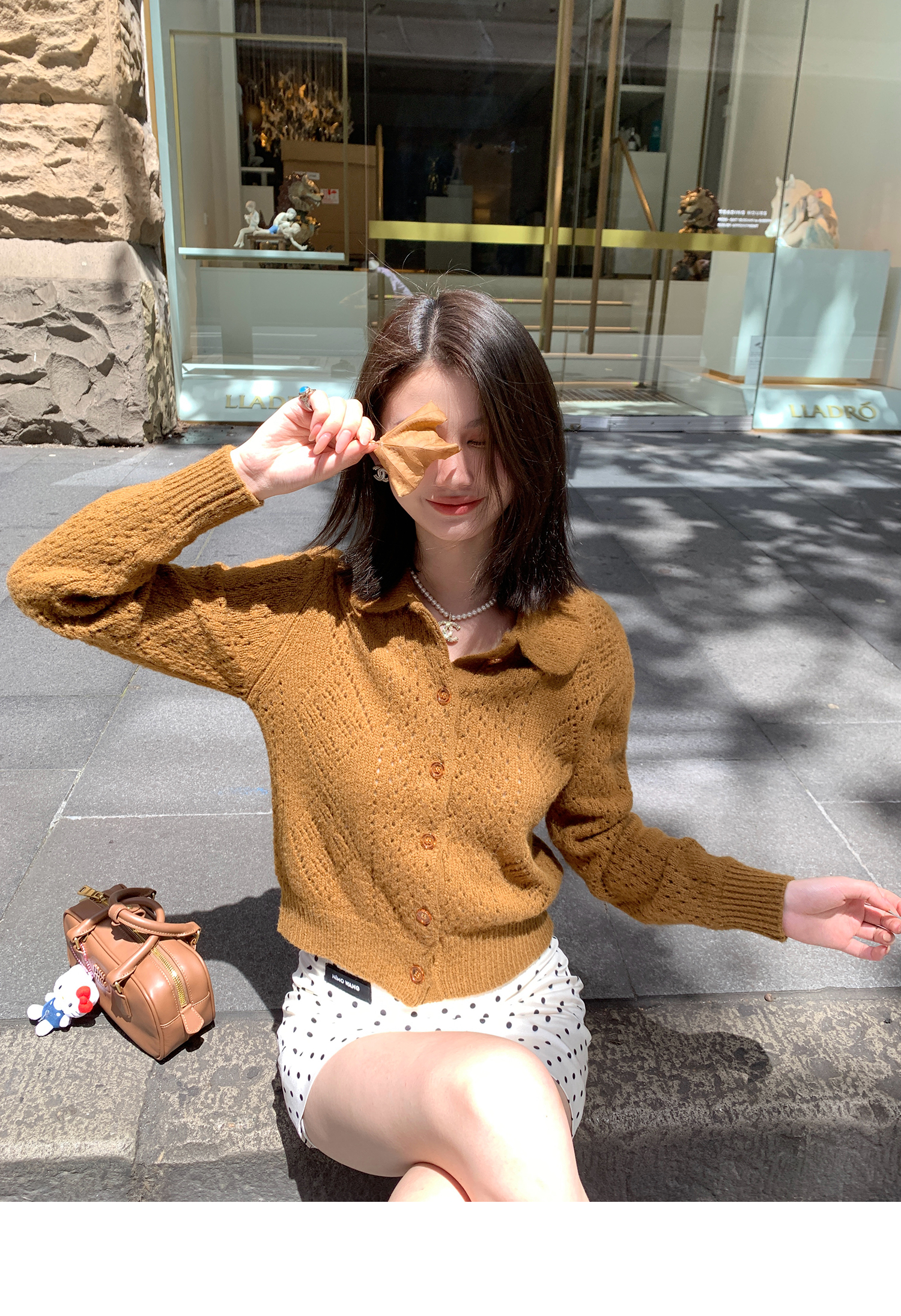 [Manhattan Girl] Loose Doll Collar Knitted Cardigan - Cute Summer Top