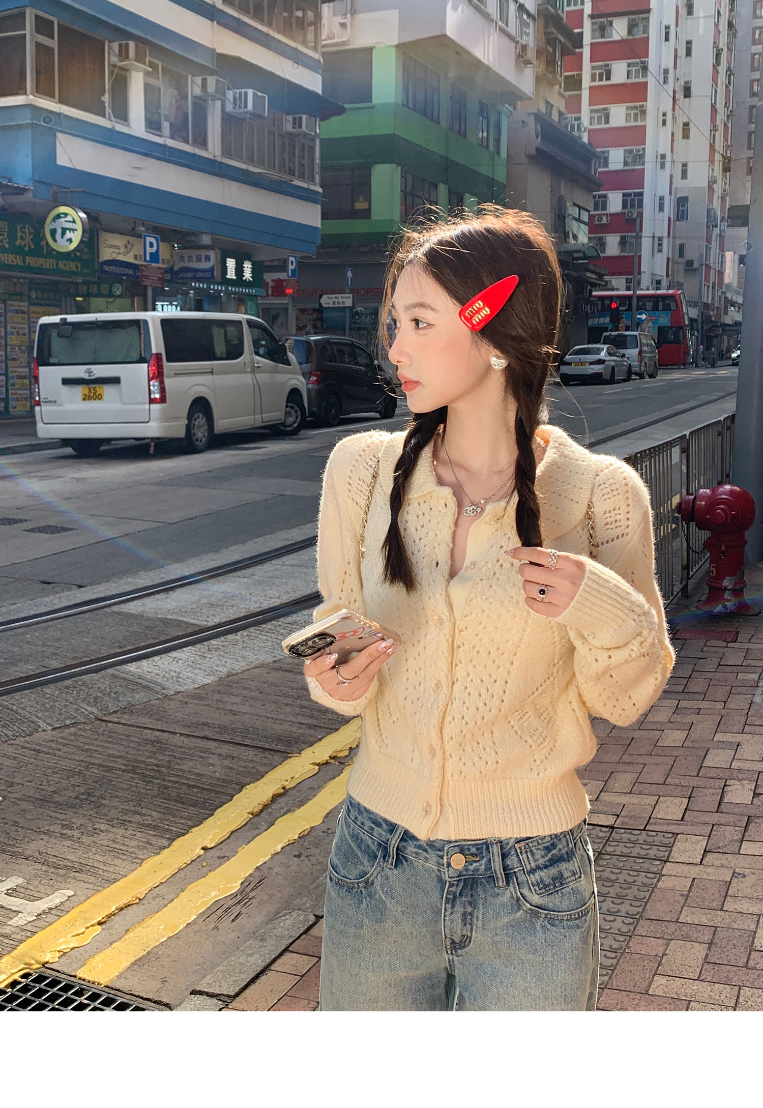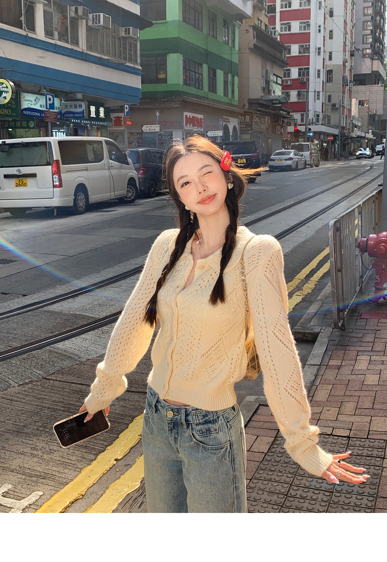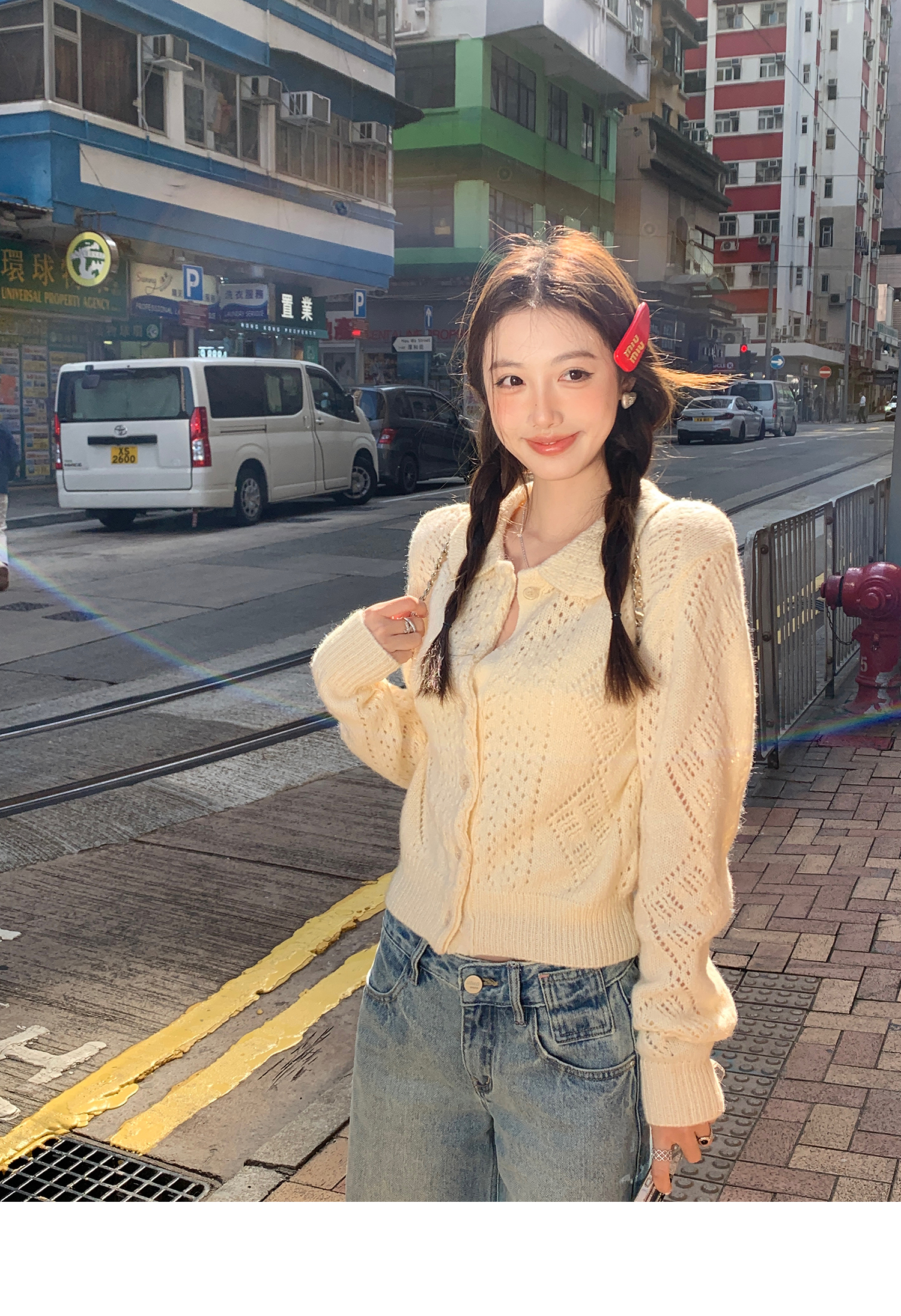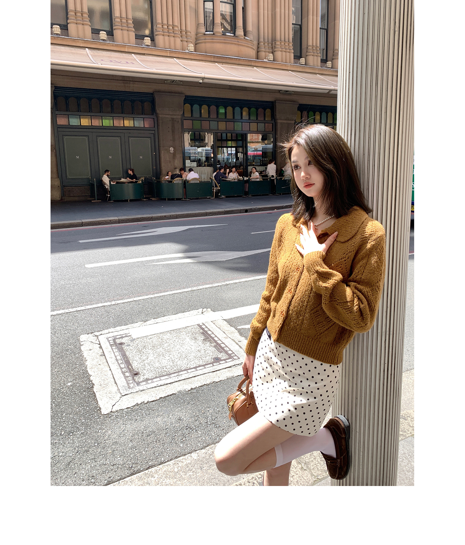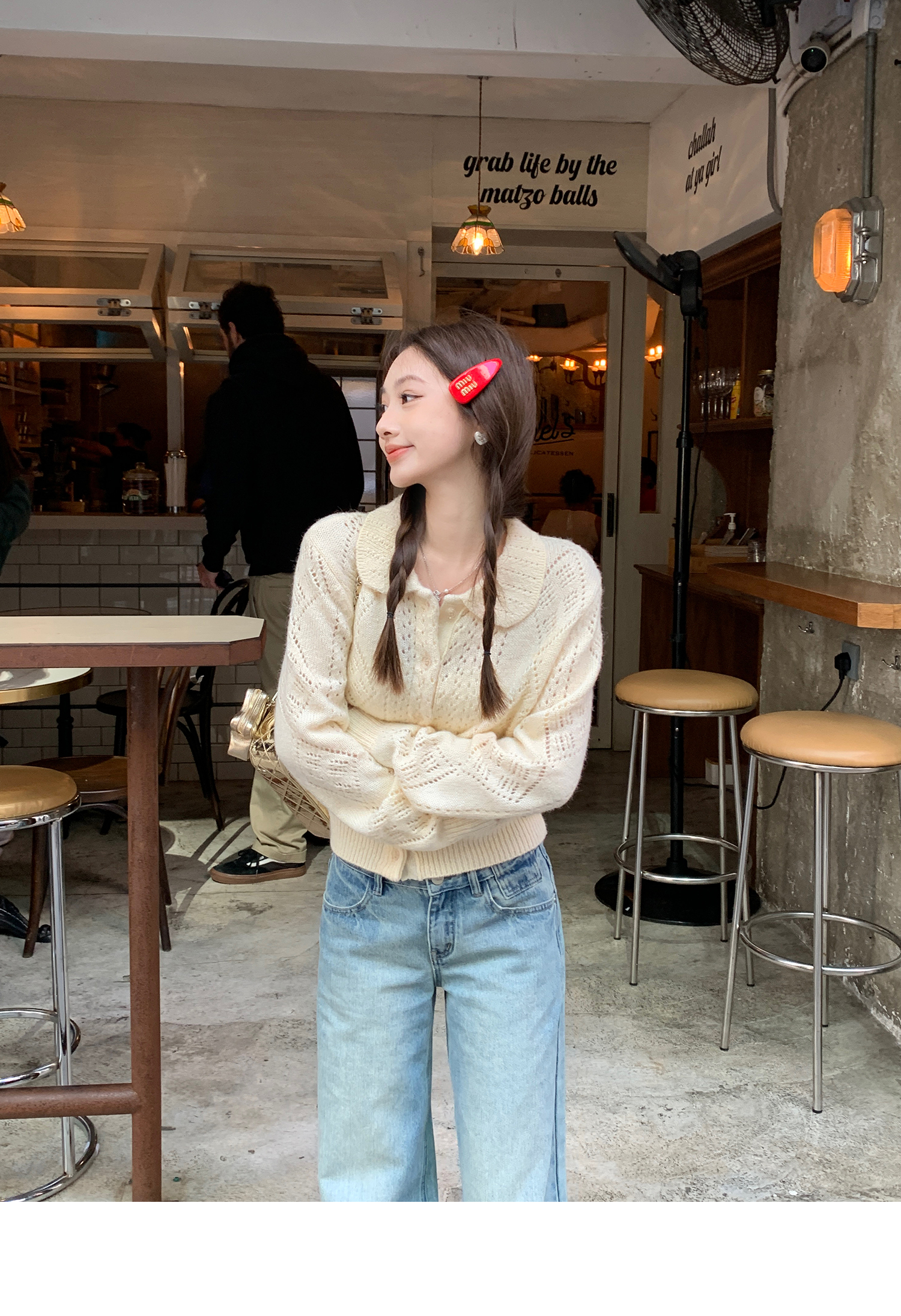 [Manhattan Girl] Loose Doll Collar Knitted Cardigan - Cute Summer Top
